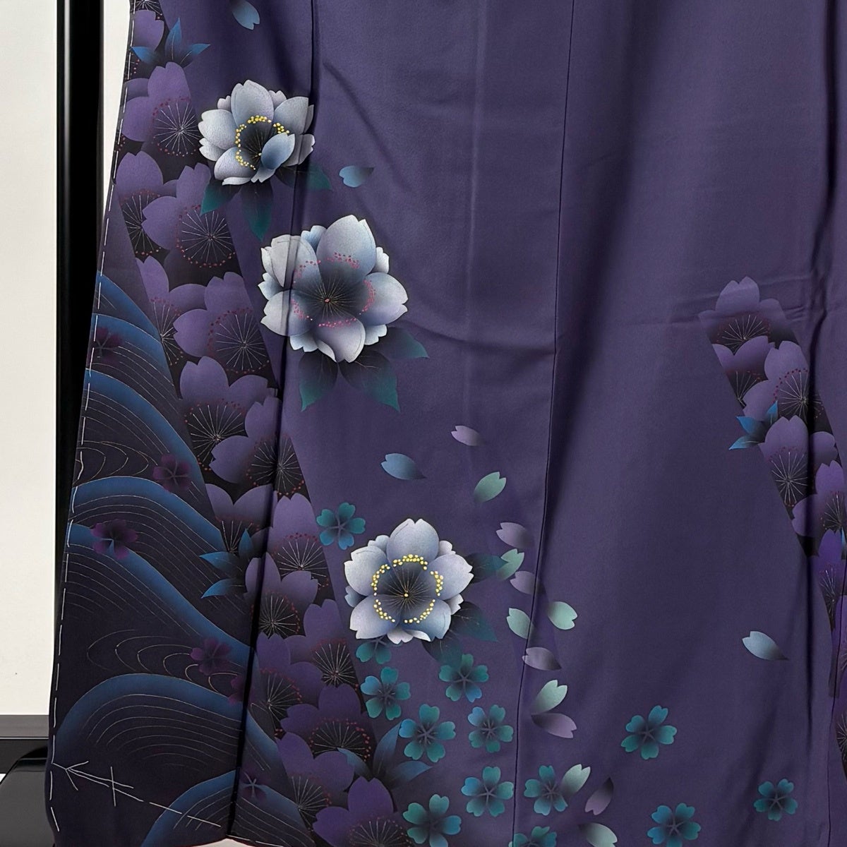 振袖 身丈169cm 裄丈67cm M 袷 桜 桜の花びら 金銀彩 灰紫 正絹 秀品