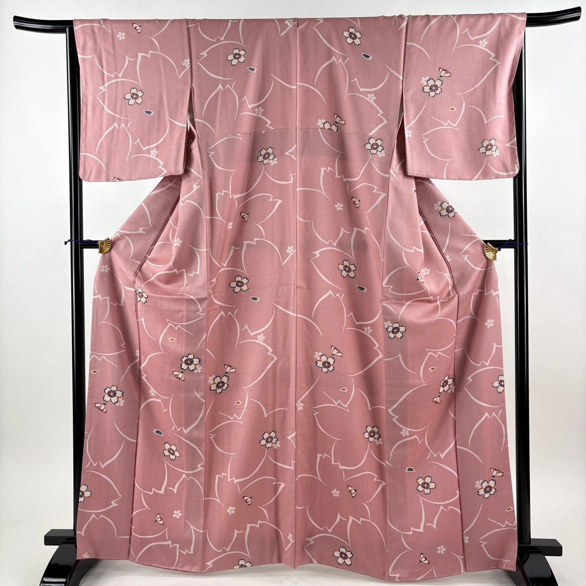 【美品】 小紋 身丈166cm 裄丈66cm M 袷 桜 桜の花びら ピンク 正絹 秀品
