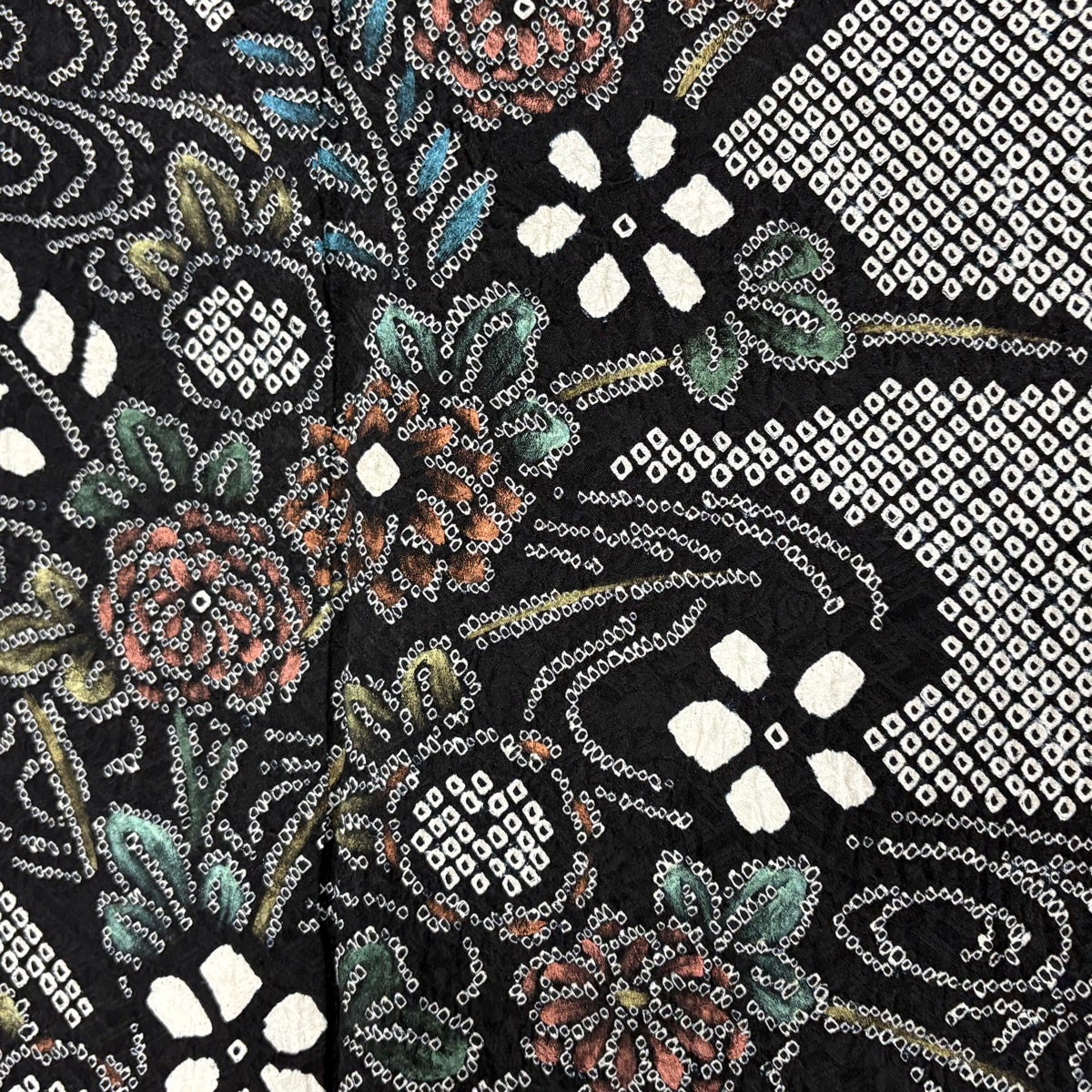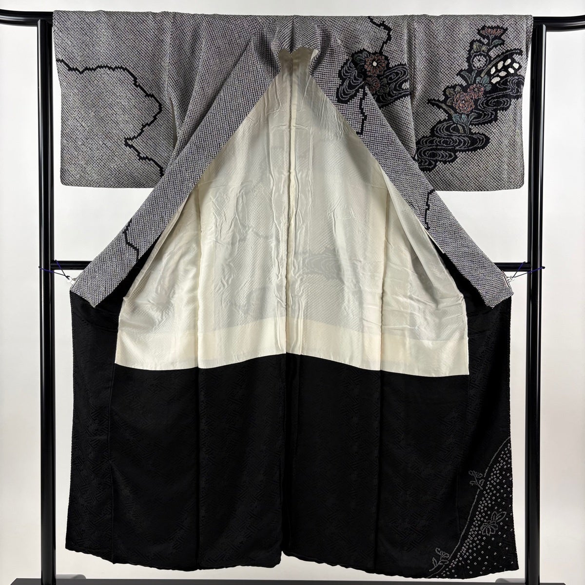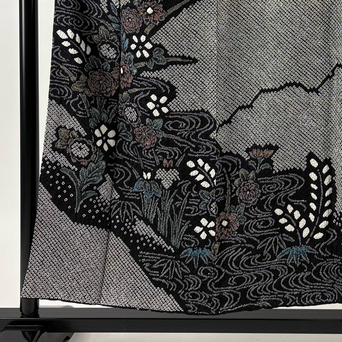 訪問着 身丈153cm 裄丈63.5cm S 袷 菊 流水 絞り 金彩 黒 正絹 秀品