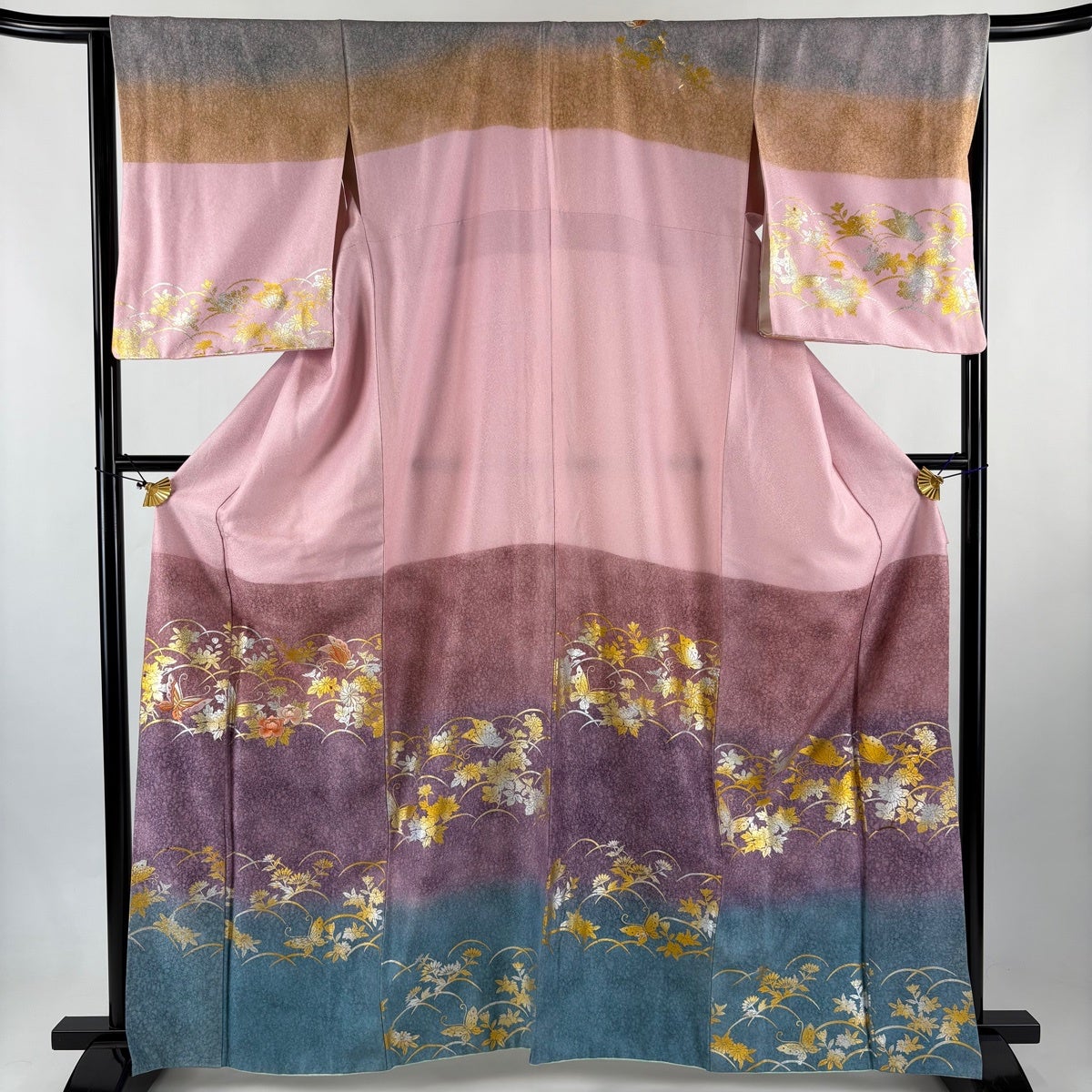 訪問着 身丈162cm 裄丈65cm M 袷 蝶 草花 刺繍 銀通し ピンク 正絹 秀品