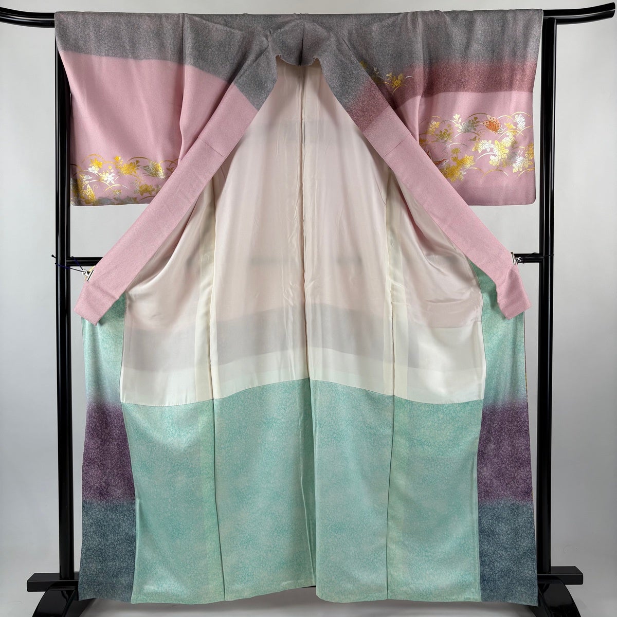 訪問着 身丈154cm 裄丈66cm M 袷 鈴乃屋 菊 紅葉 金糸 金彩 ピンク 正絹 秀品