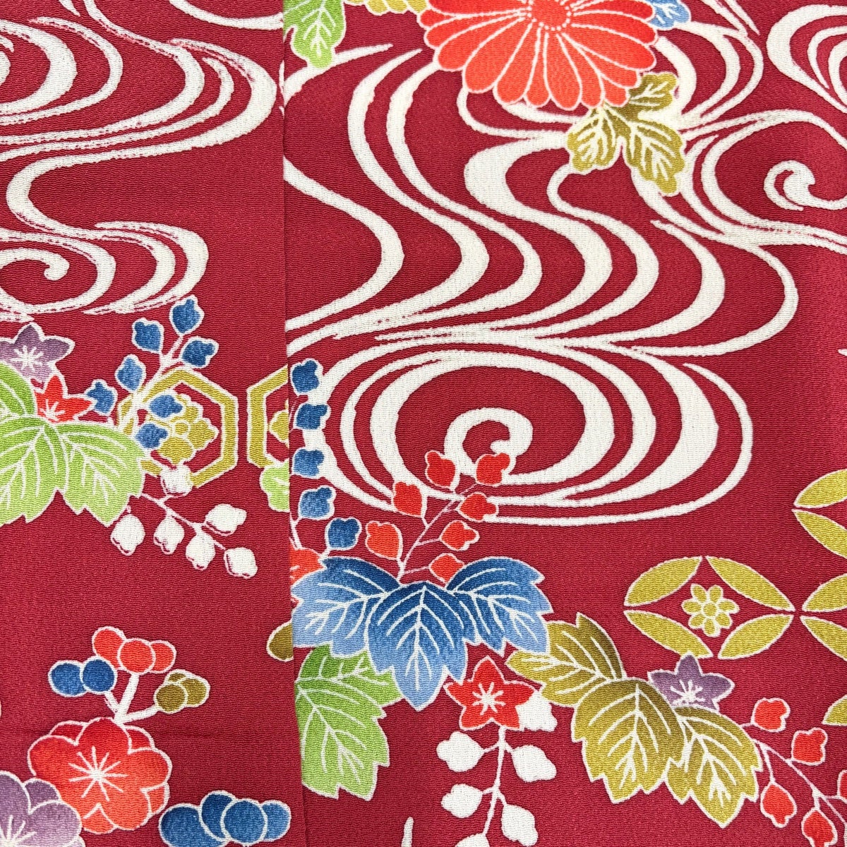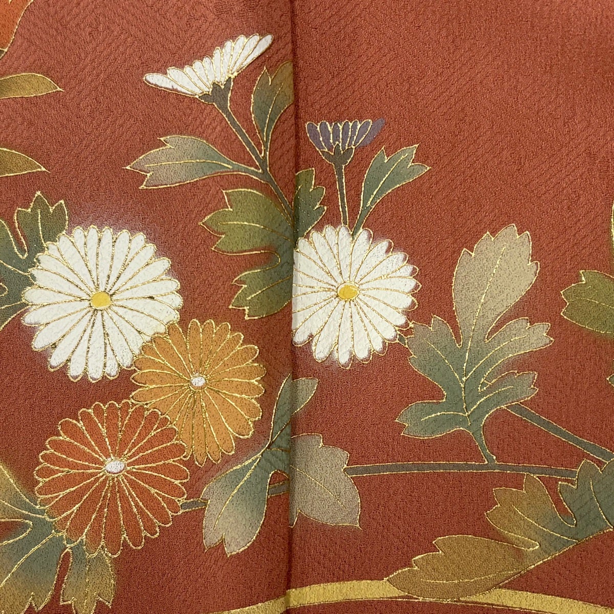 振袖 身丈160cm 裄丈66cm M 袷 菊 流水 縮緬 赤 正絹 秀品