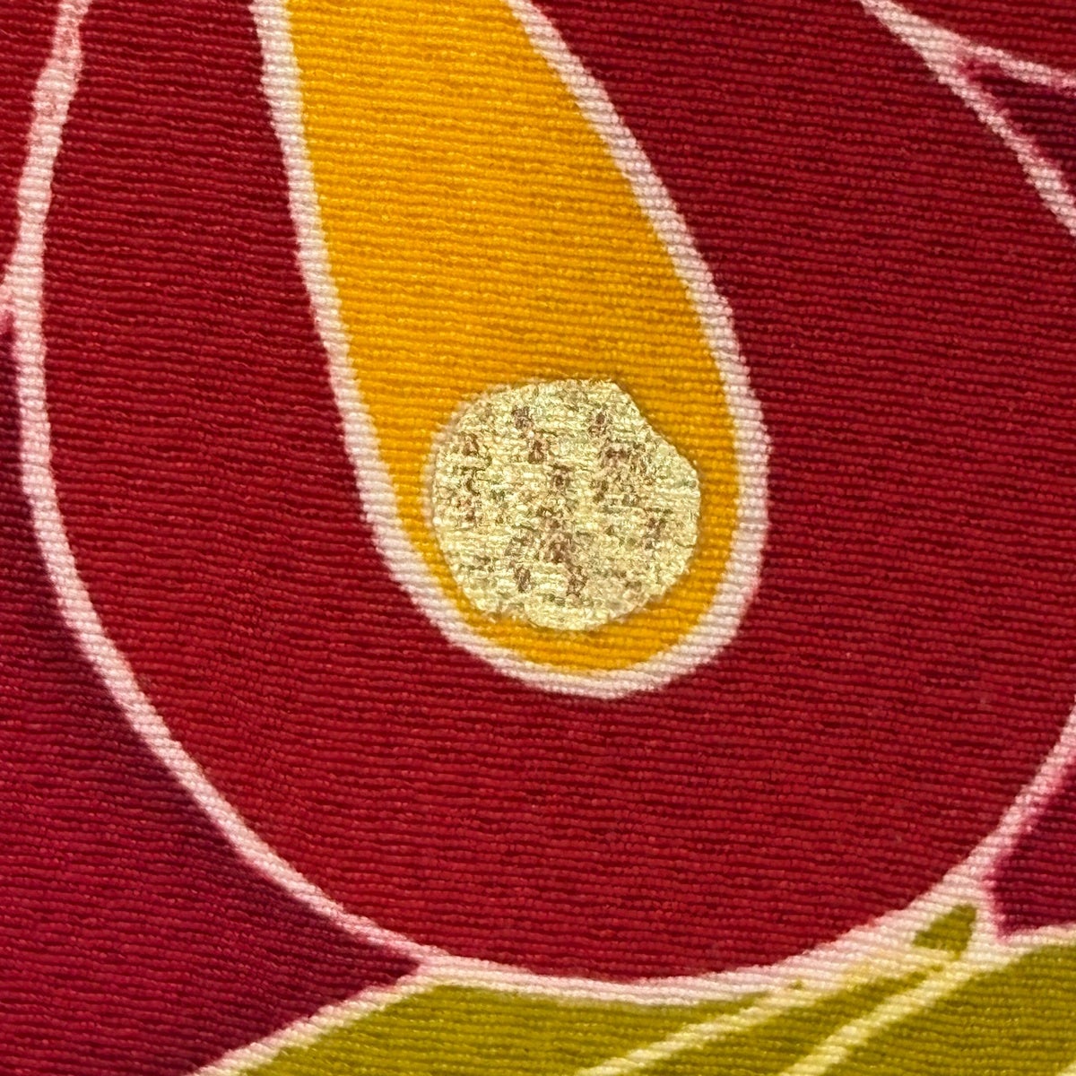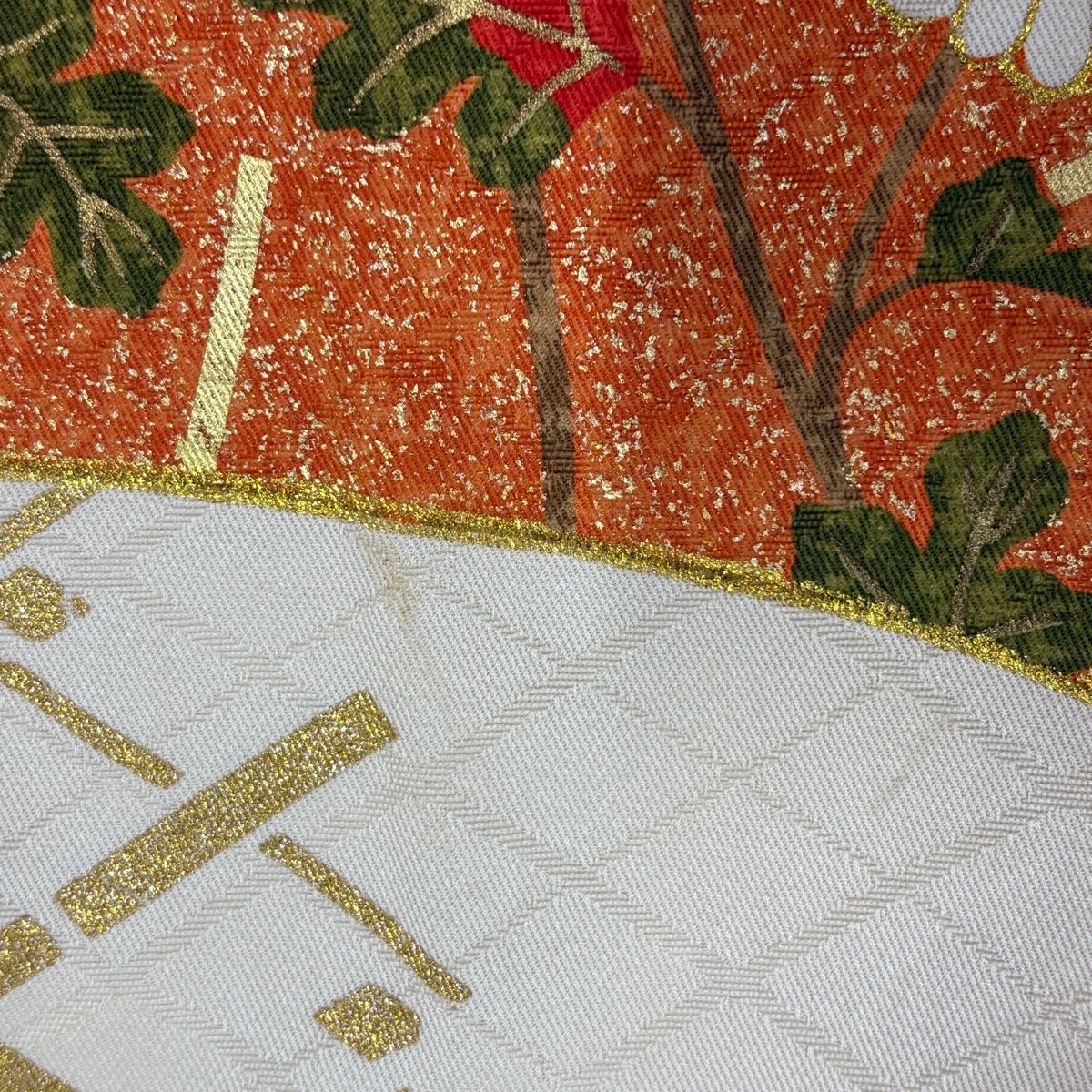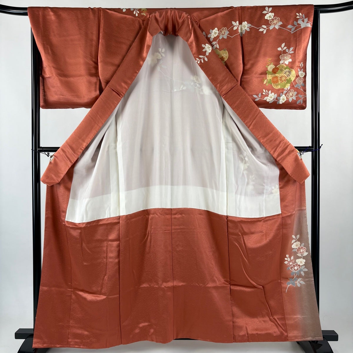 振袖 身丈160cm 裄丈65cm M 袷 御所車 草花 金糸 金彩 朱色 正絹 秀品