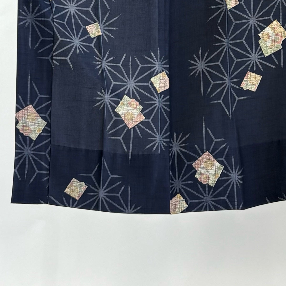【美品】 長襦袢 身丈124cm 裄丈68cm L 麻の葉 色紙 紺色 正絹 秀品
