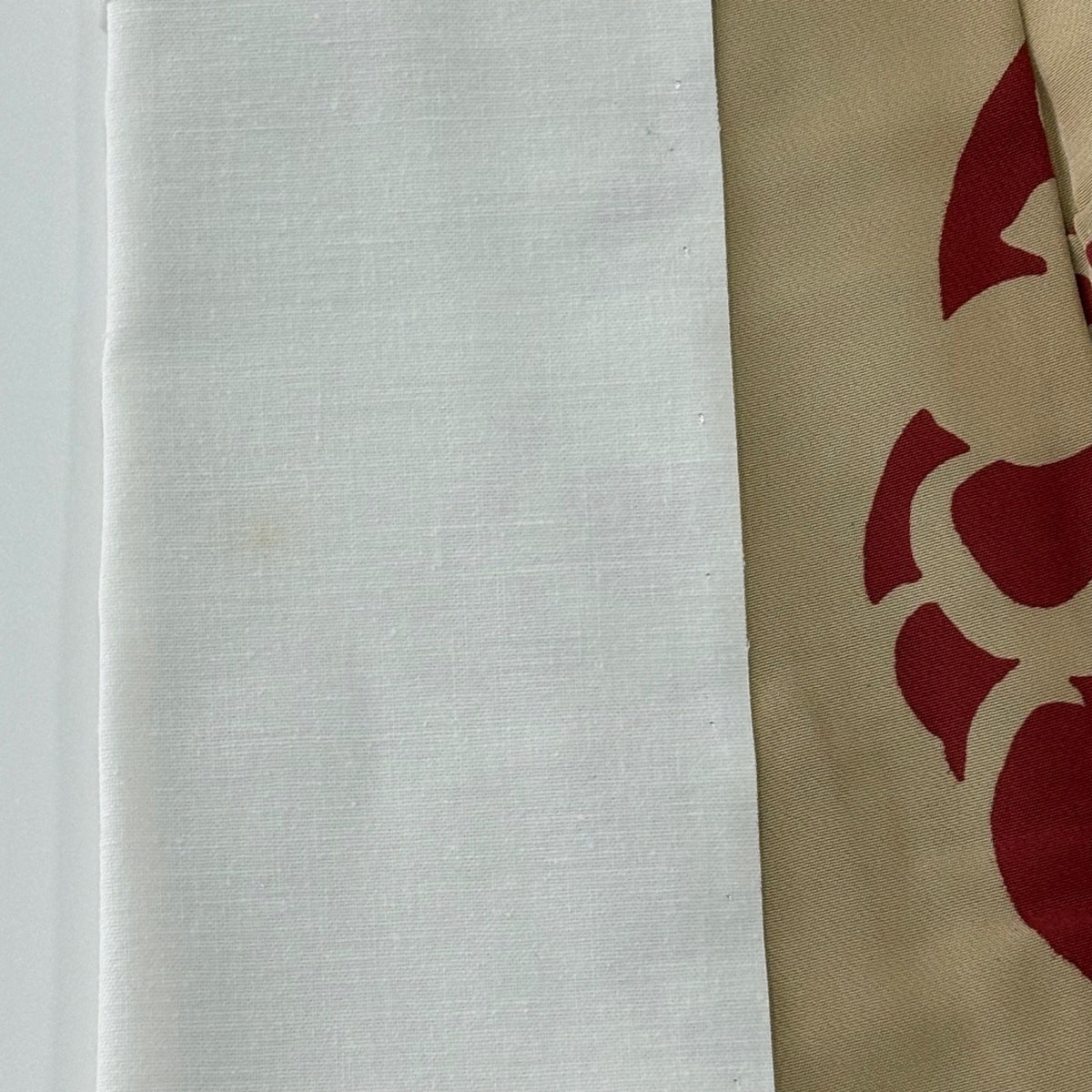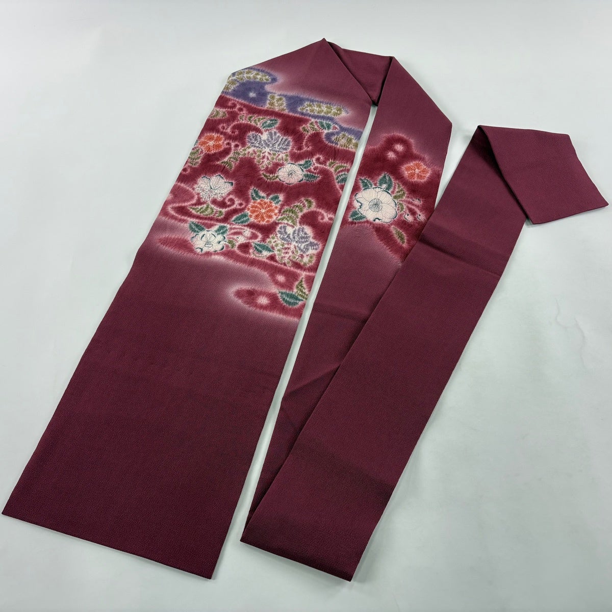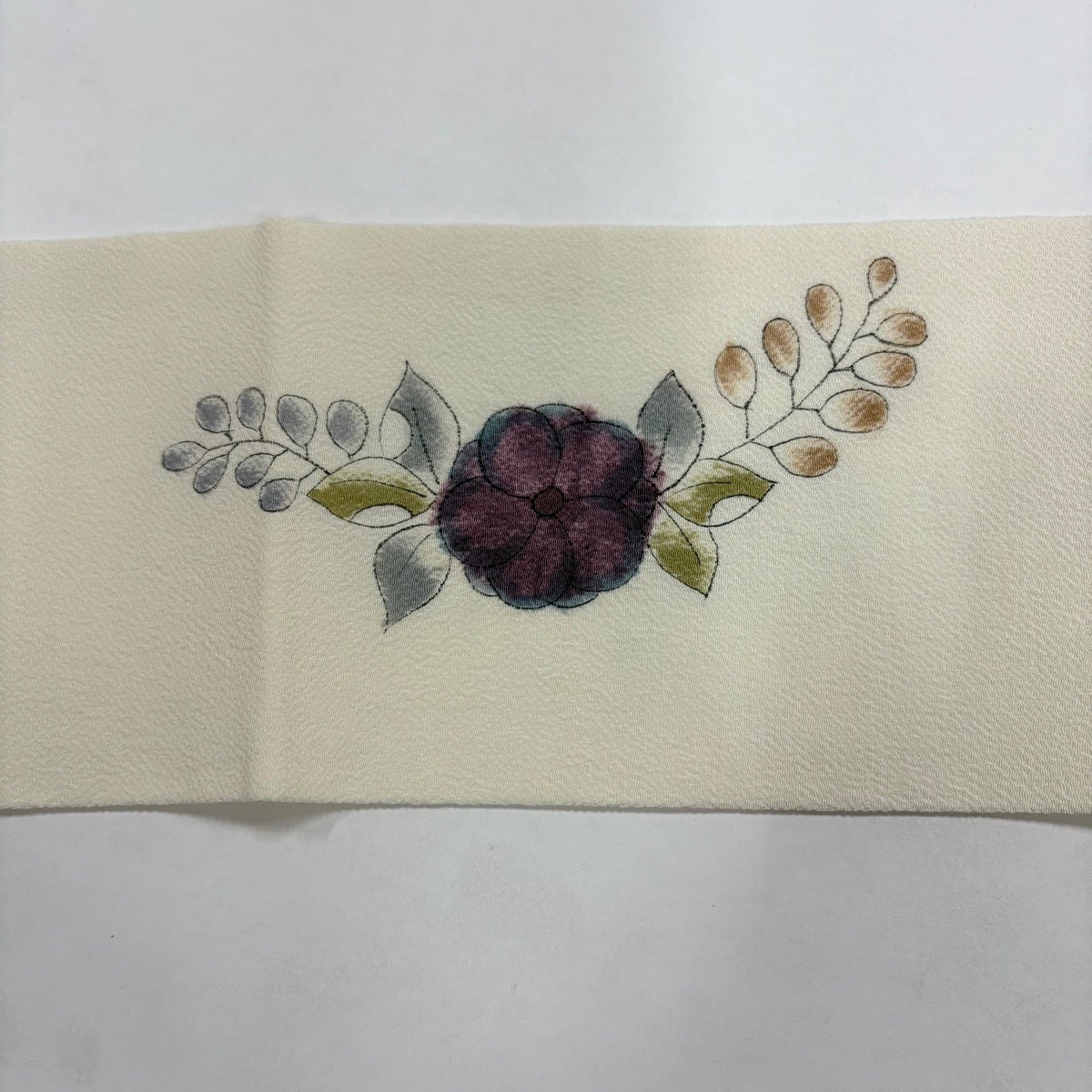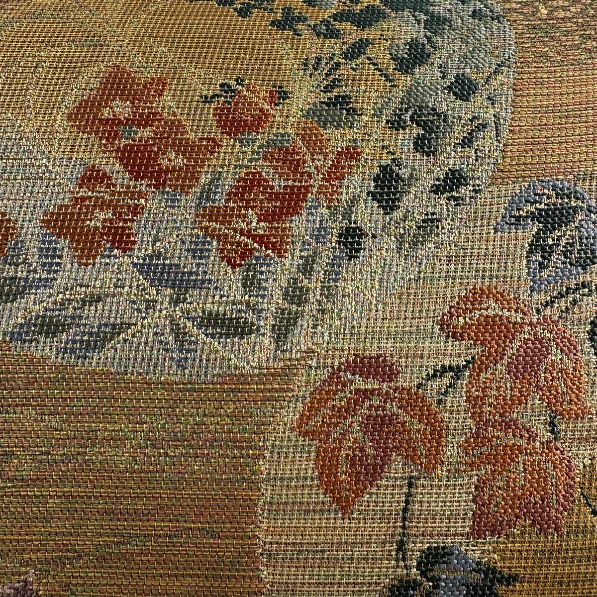 名古屋帯 秀品 紬地 草花 刺繍 切りばめあ えんじ色 正絹
