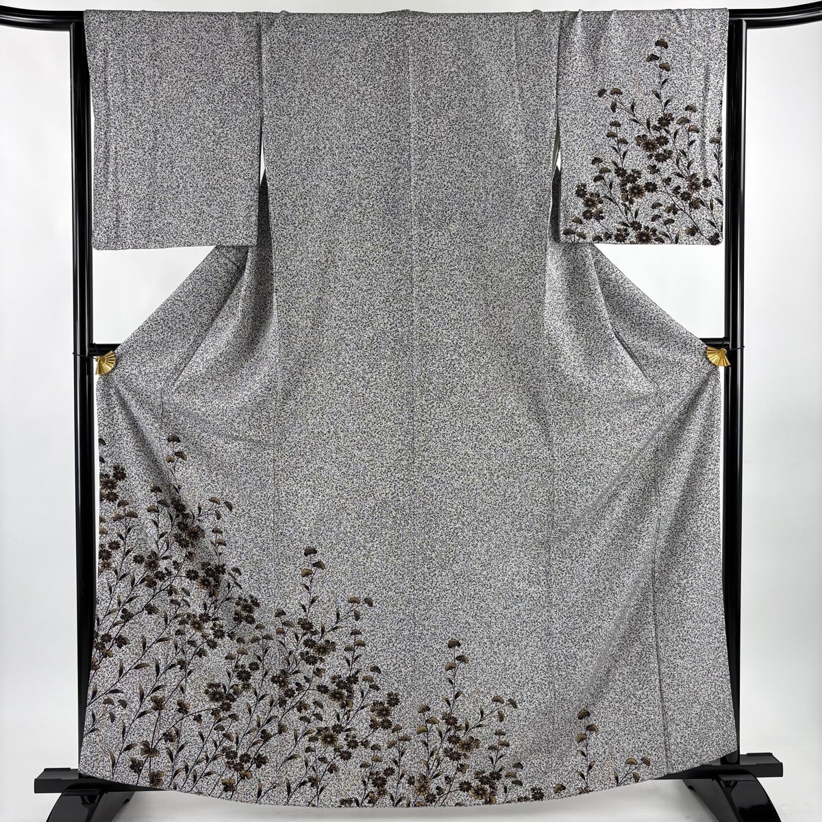 【美品】 付下げ 身丈161.5cm 裄丈64.5cm M 袷 菊 女郎花 金彩 灰色 正絹 秀品