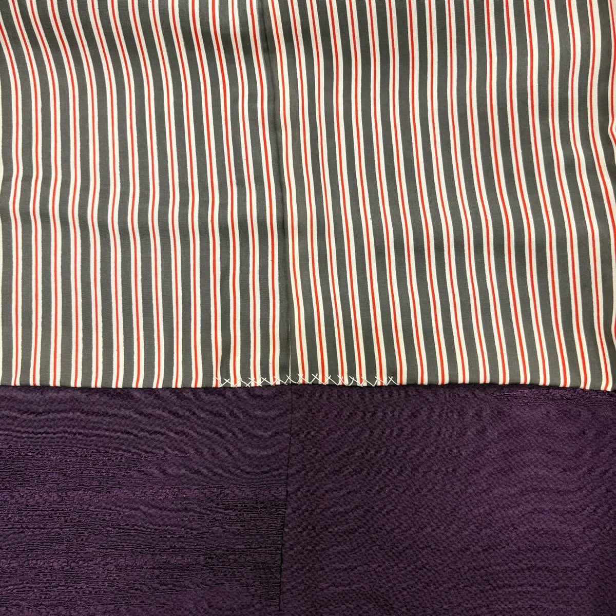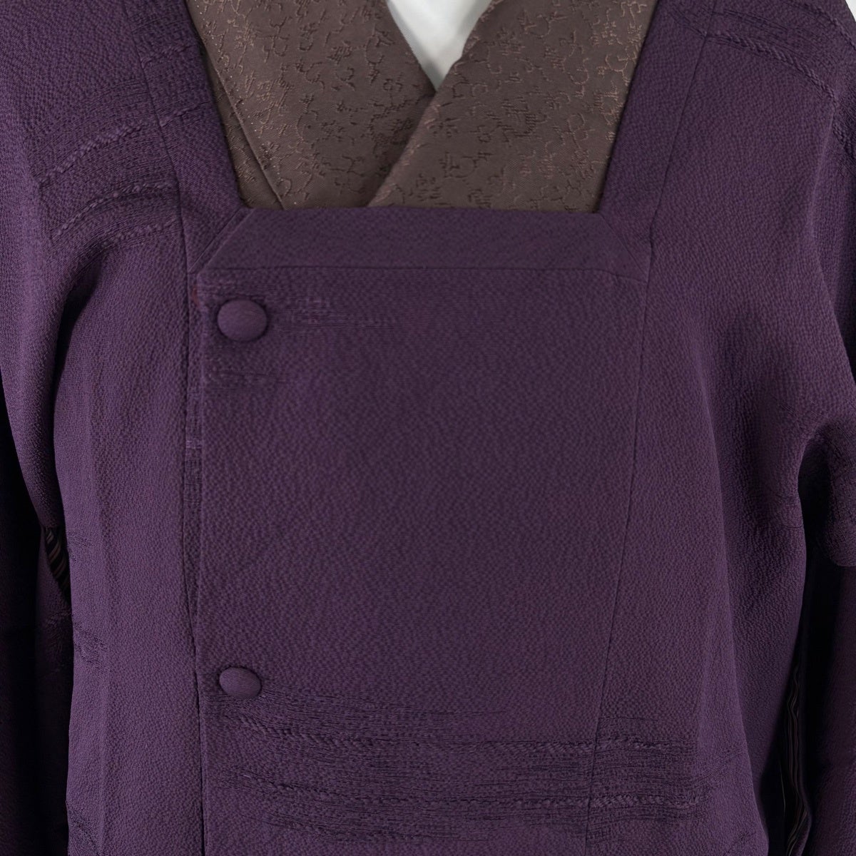道行 身丈90cm 裄丈65cm M 和装コート 角衿 地紋 紫 正絹 秀品