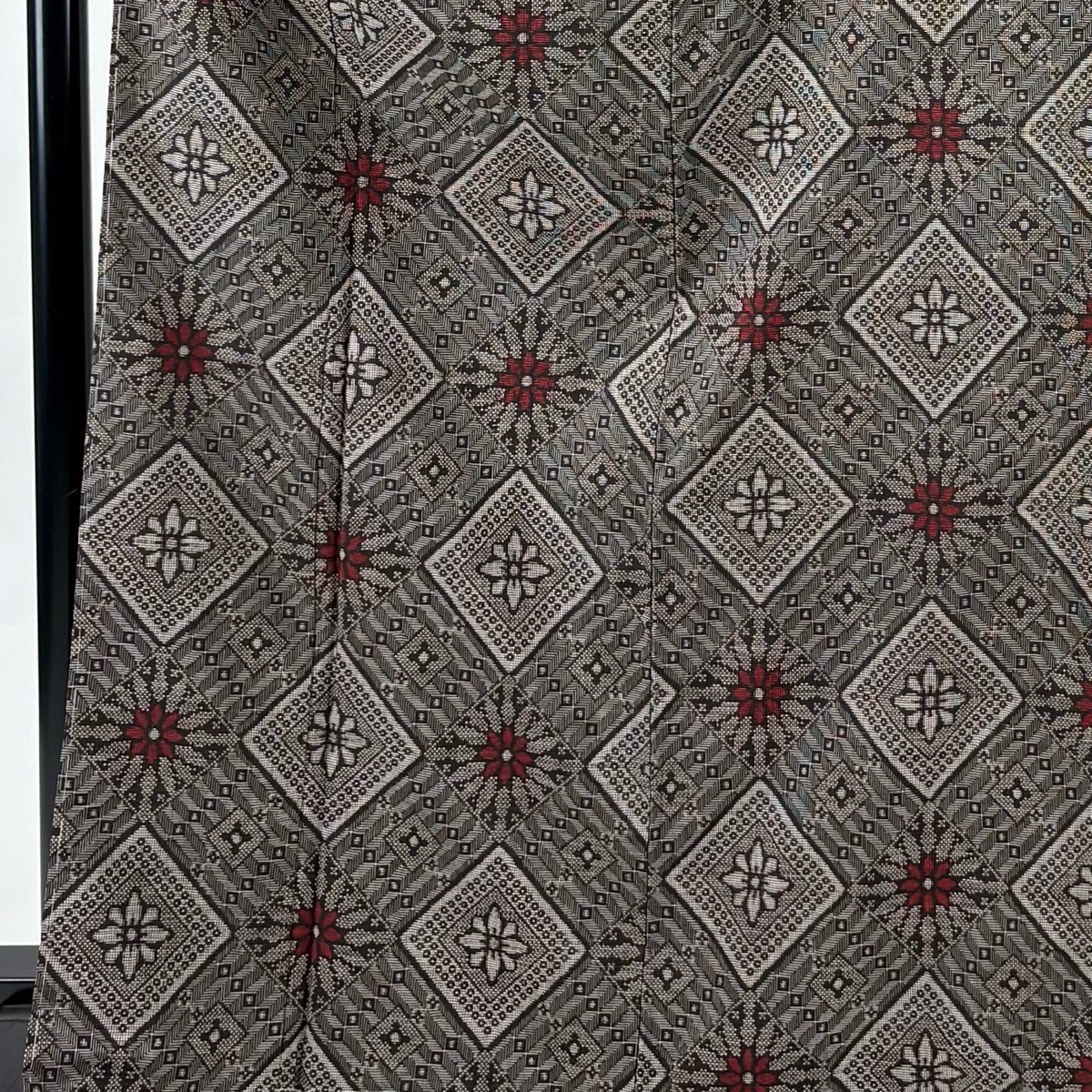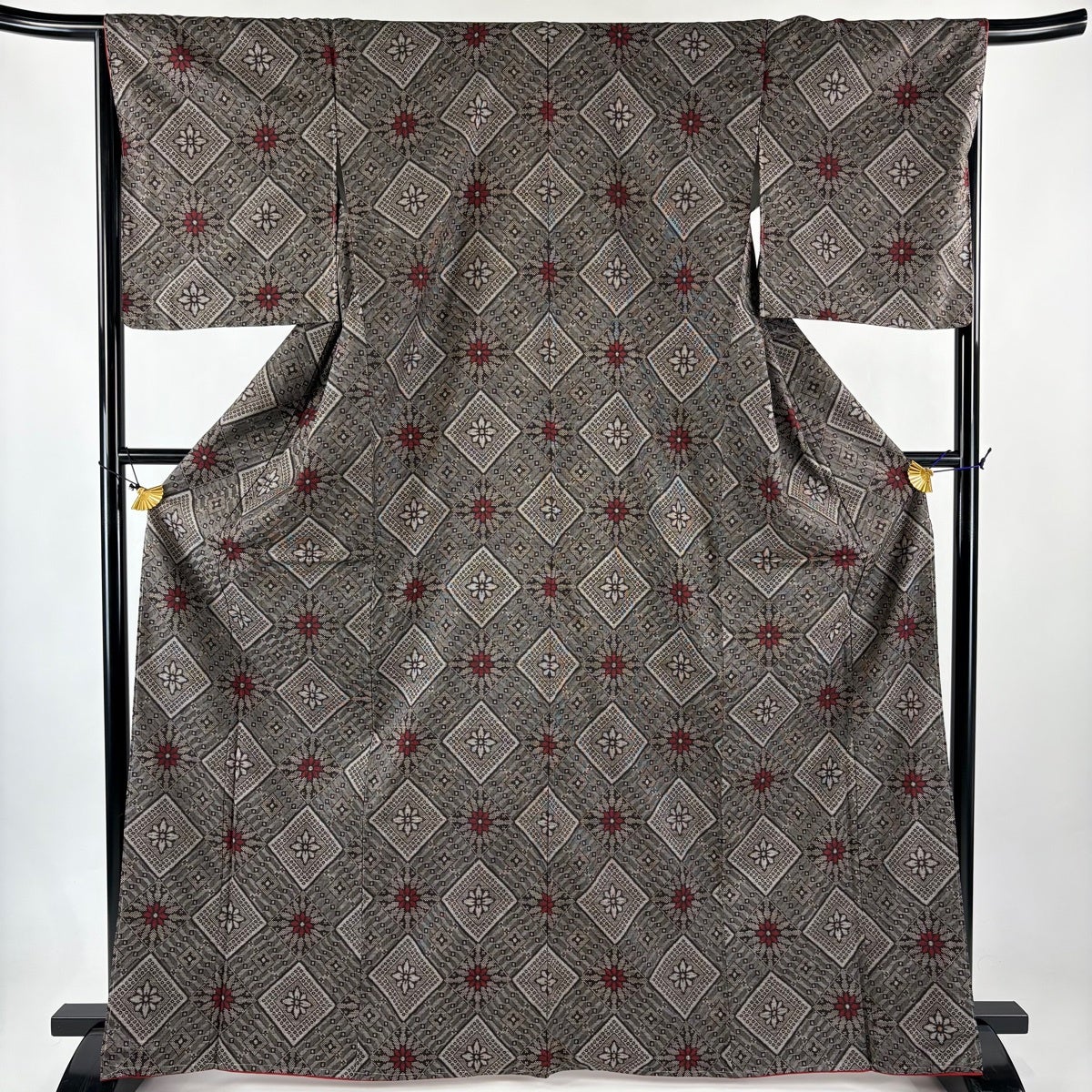 【美品】 紬 身丈167cm 裄丈66.5cm M 袷 花 菱 焦茶色 正絹 秀品