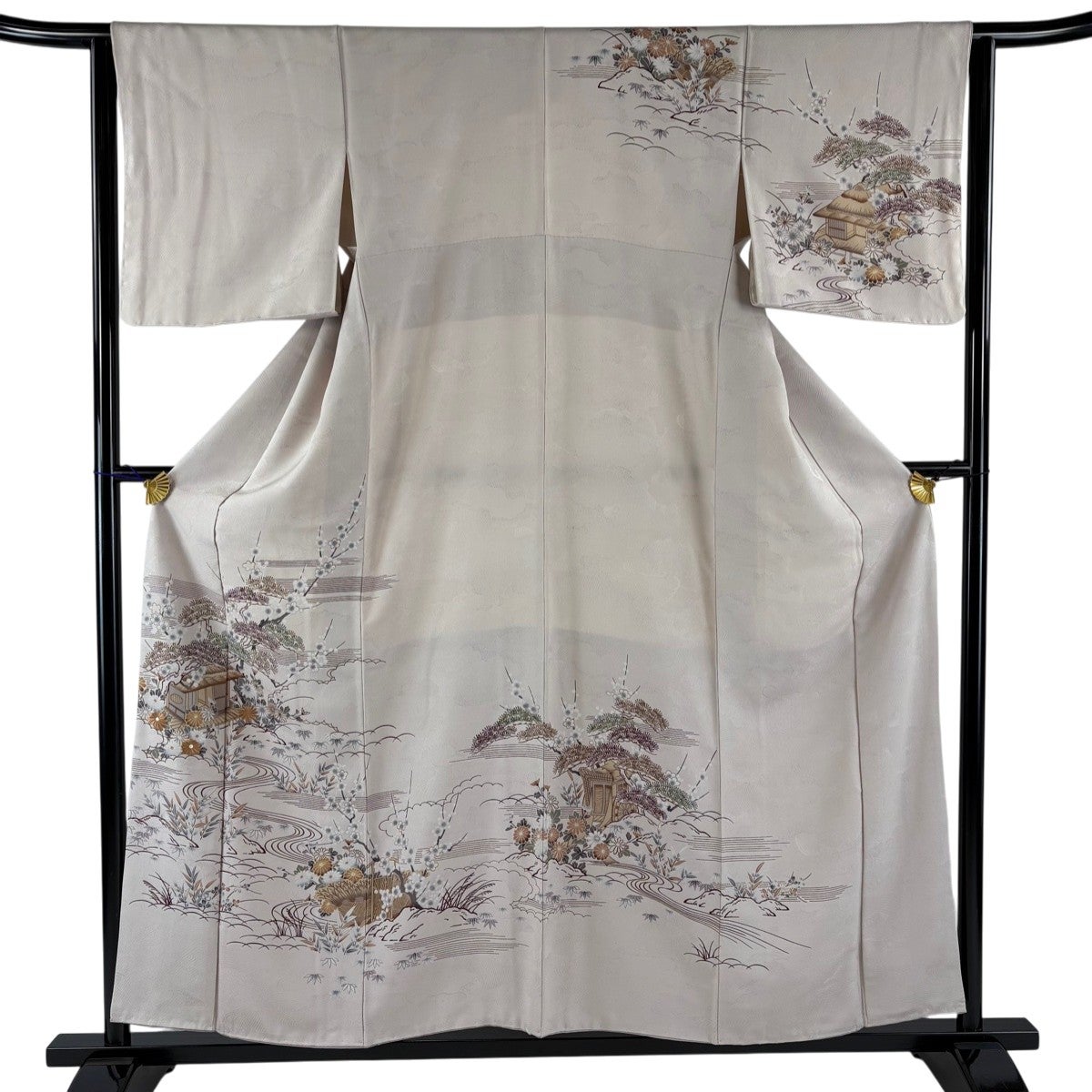 訪問着 身丈157cm 裄丈63.5cm S 袷 松竹梅 建物 金彩 刺繍 薄小豆 正絹 秀品