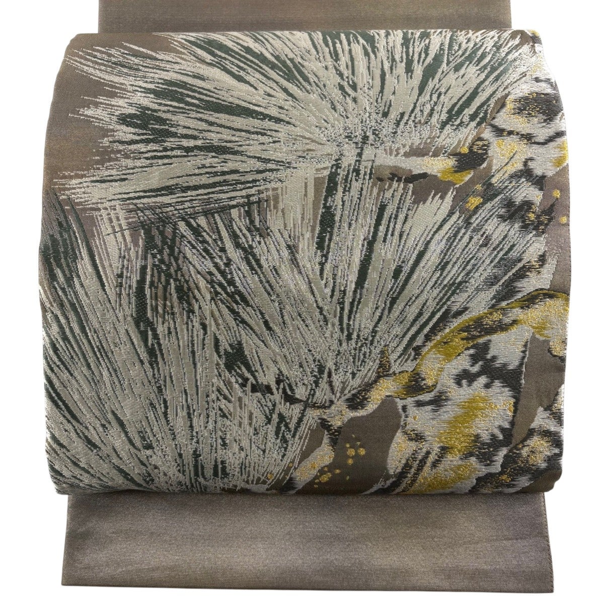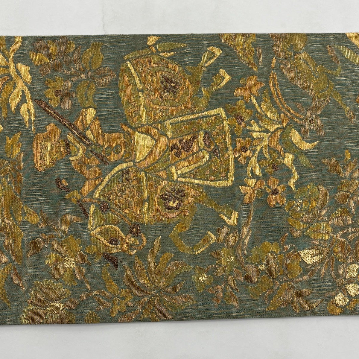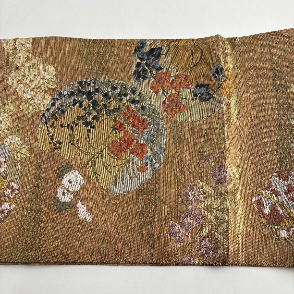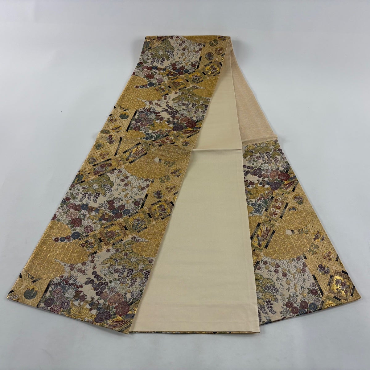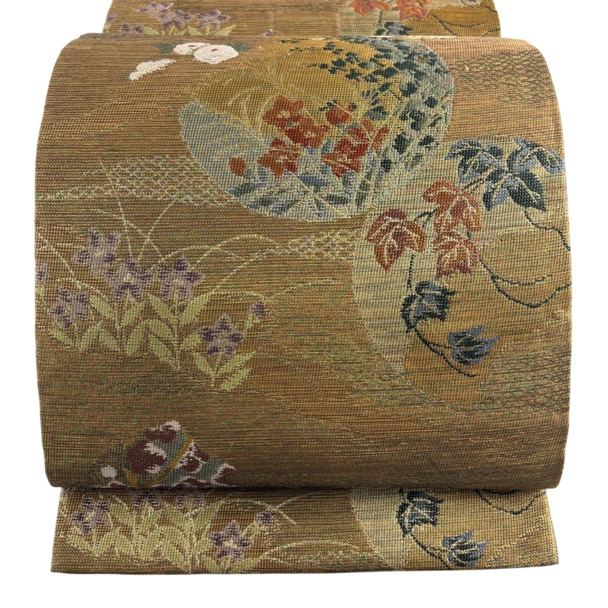【美品】 袋帯 秀品 琳派三十六華扇 金糸 箔 青灰色 六通 正絹