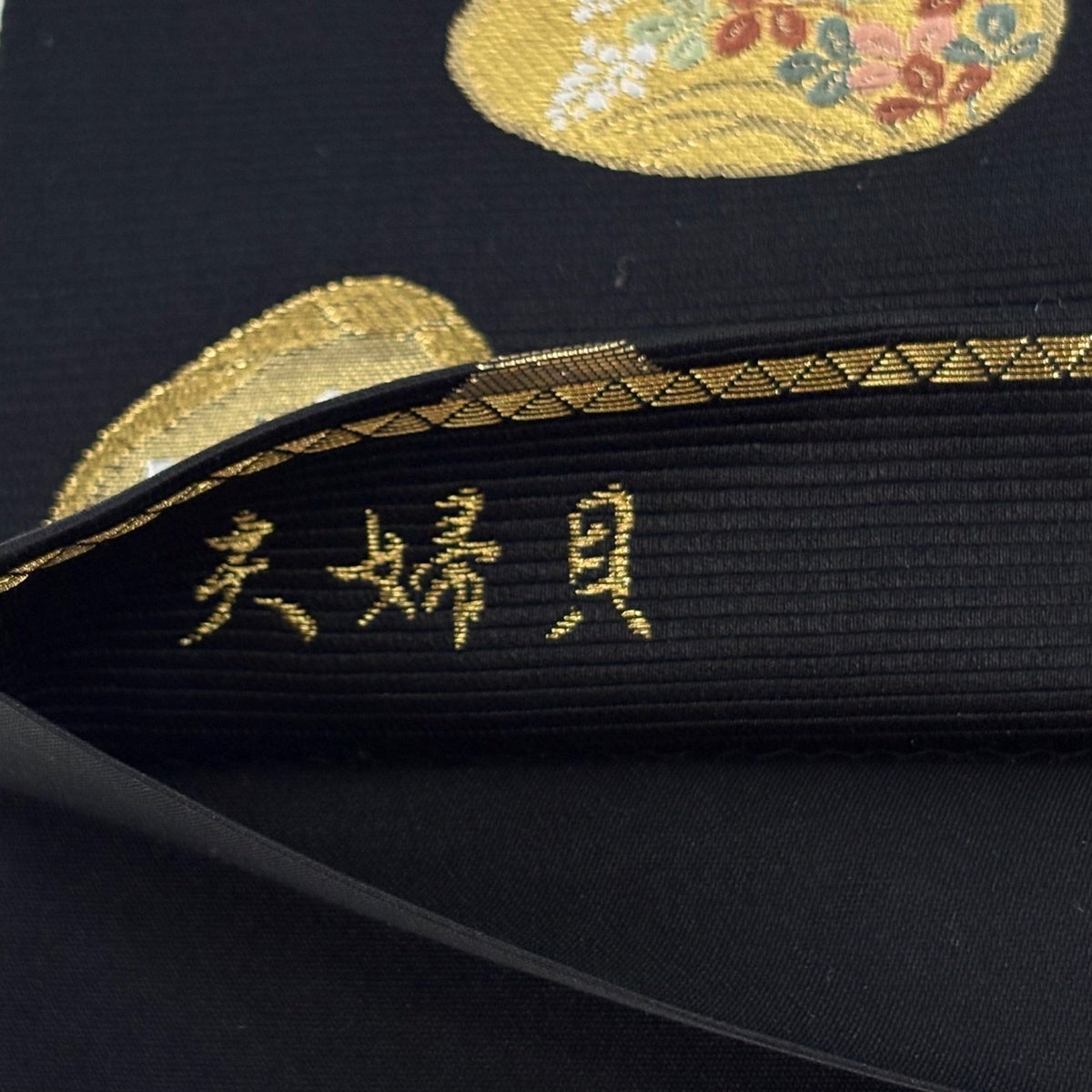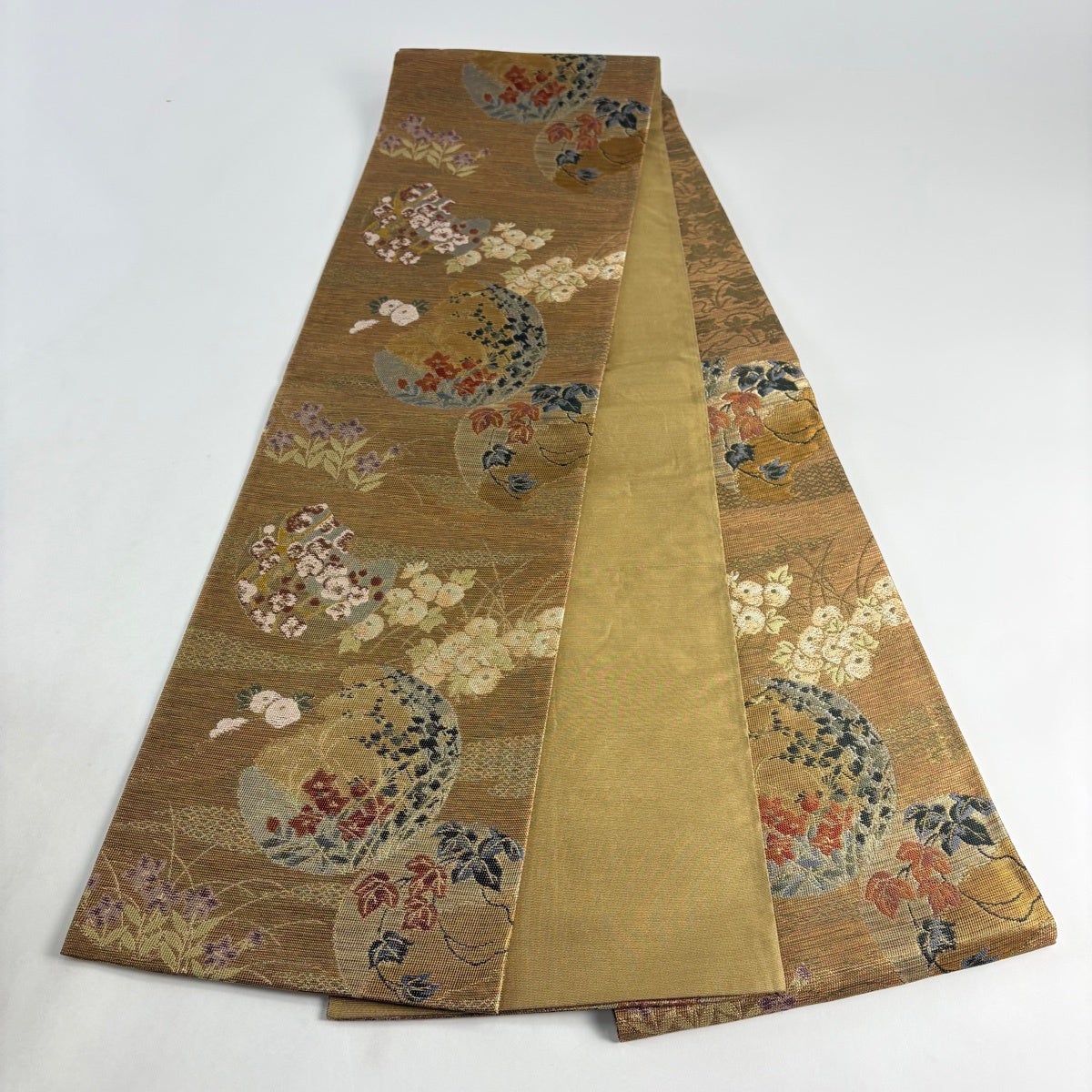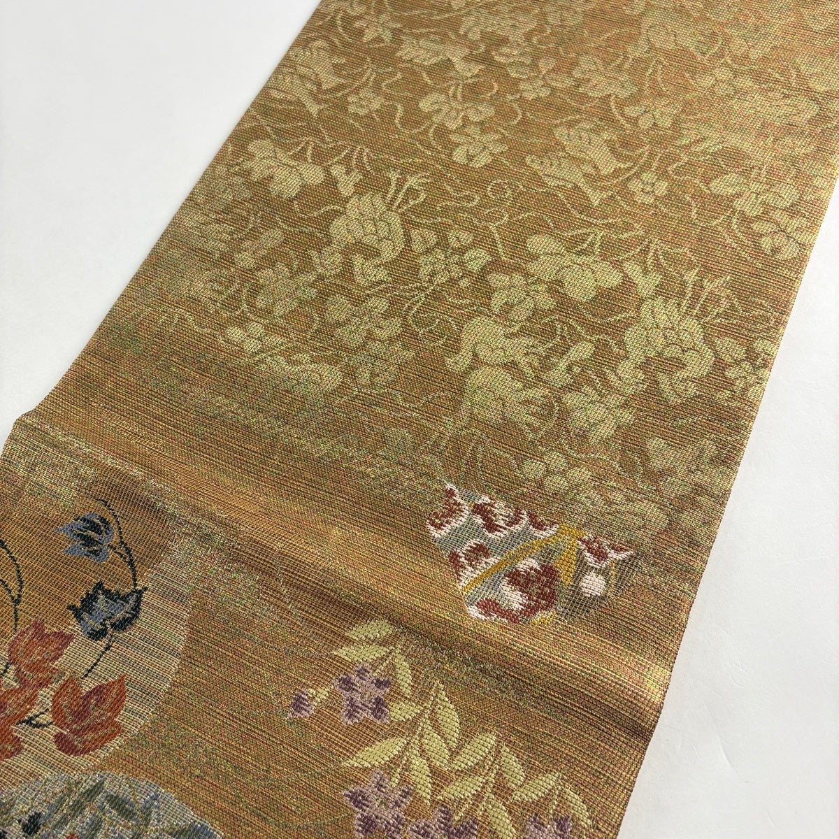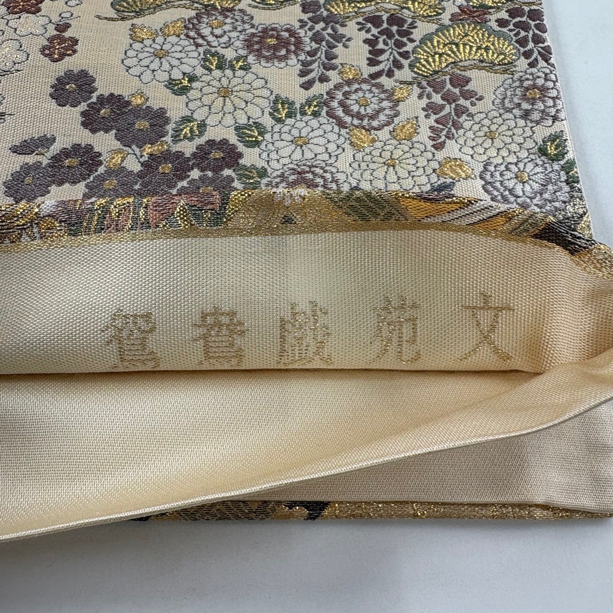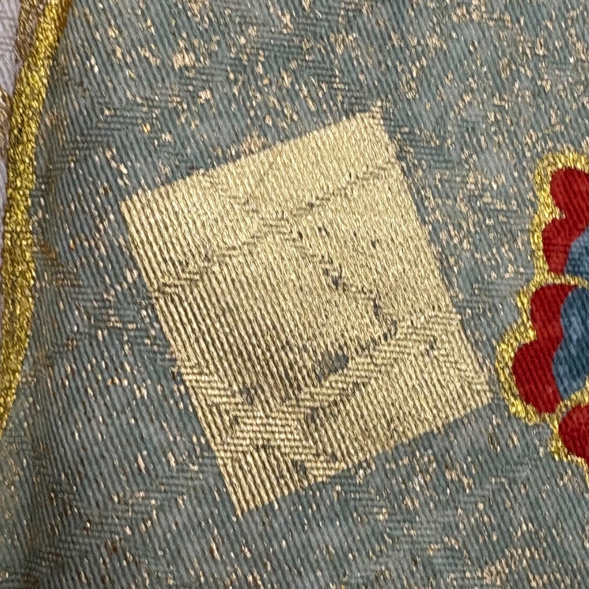 【美品】 袋帯 秀品 琳派三十六華扇 金糸 箔 青灰色 六通 正絹
