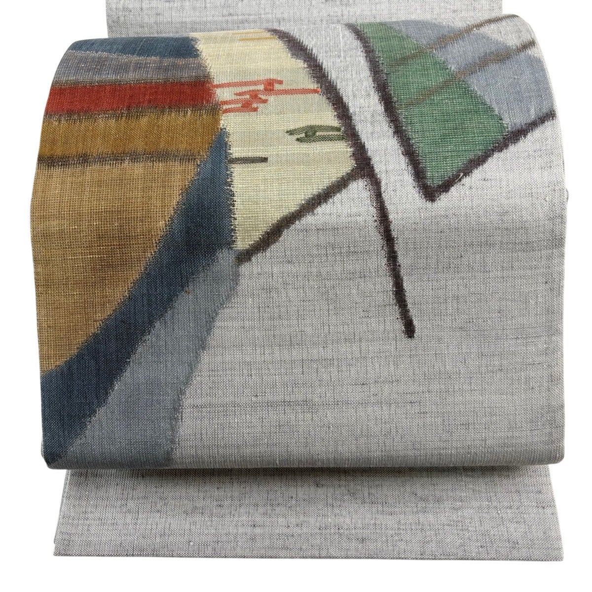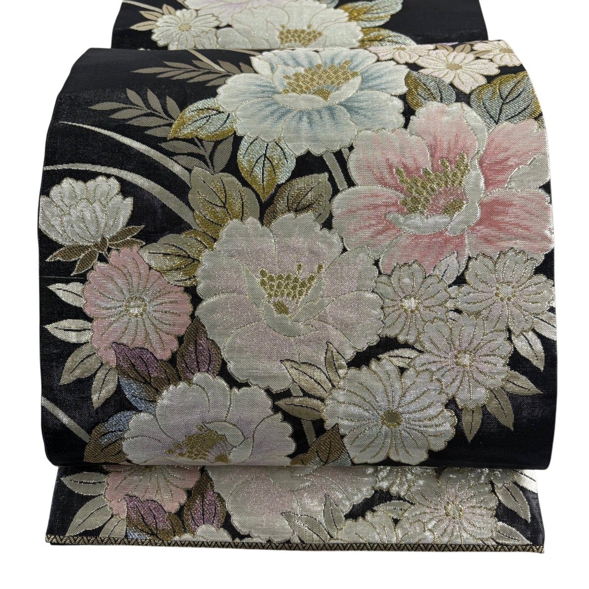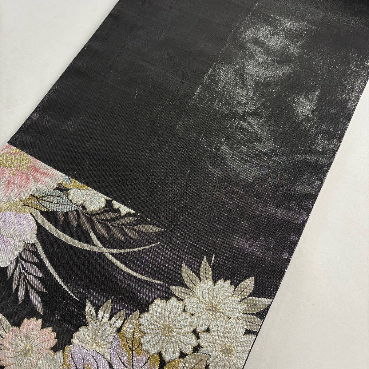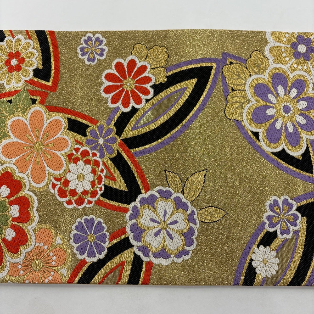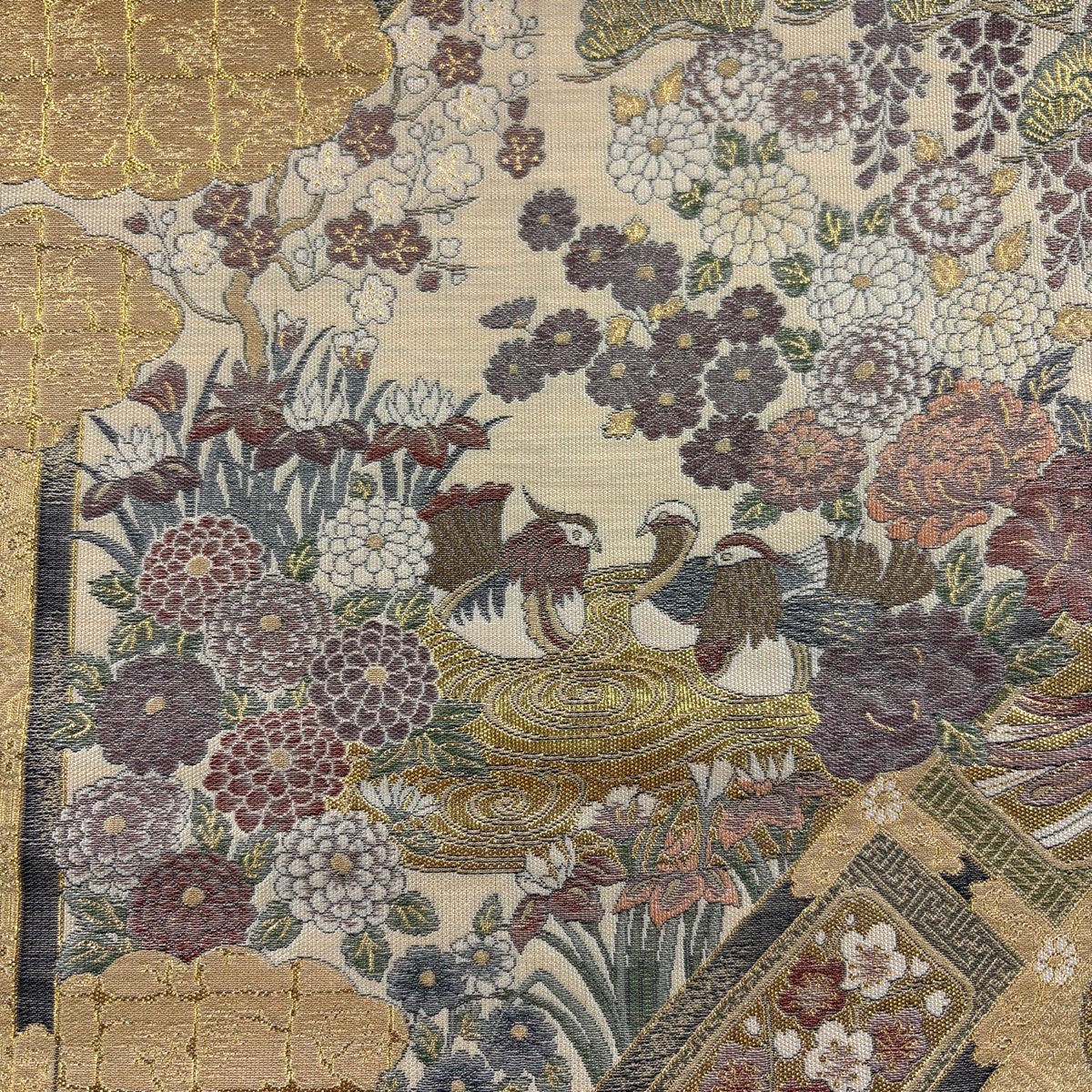 【美品】 袋帯 秀品 琳派三十六華扇 金糸 箔 青灰色 六通 正絹
