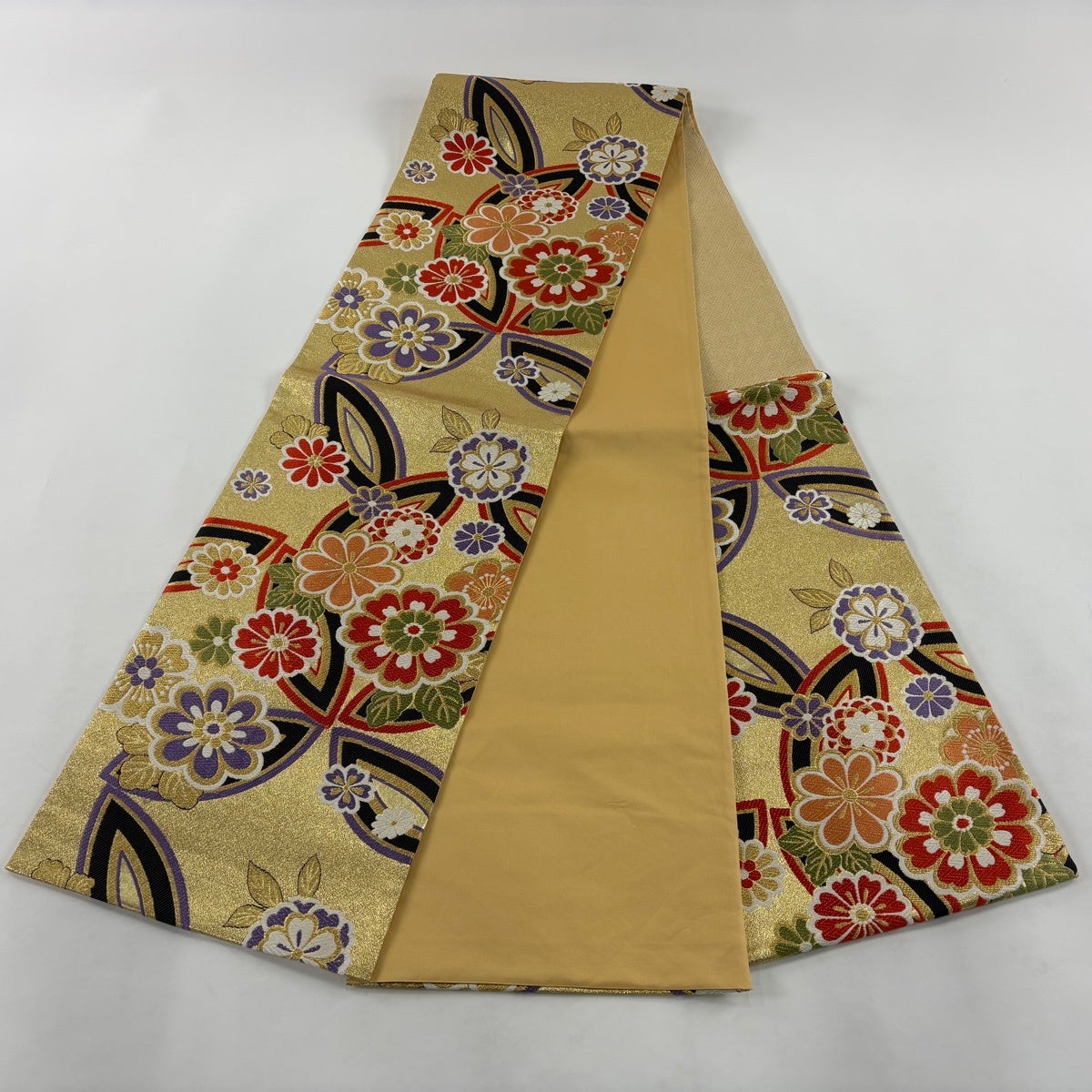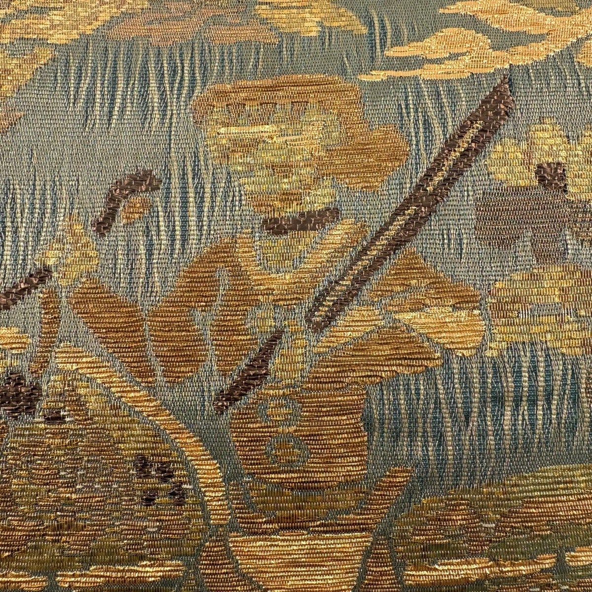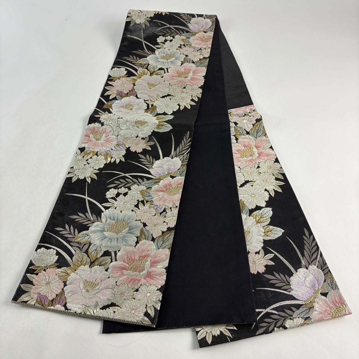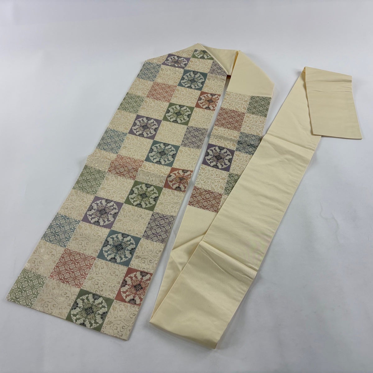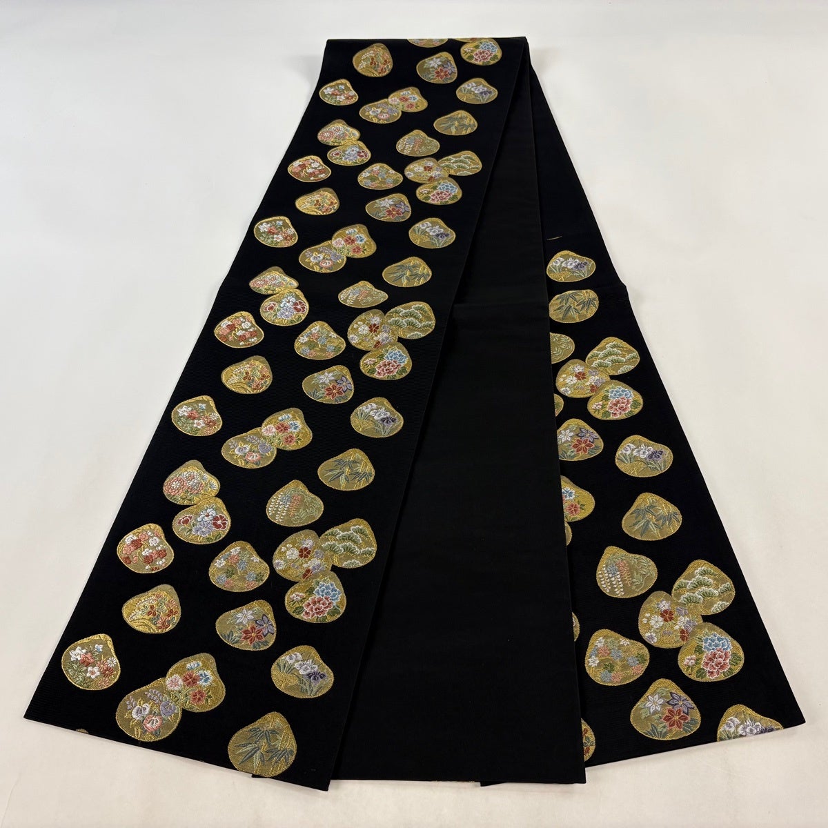 【美品】 袋帯 秀品 琳派三十六華扇 金糸 箔 青灰色 六通 正絹