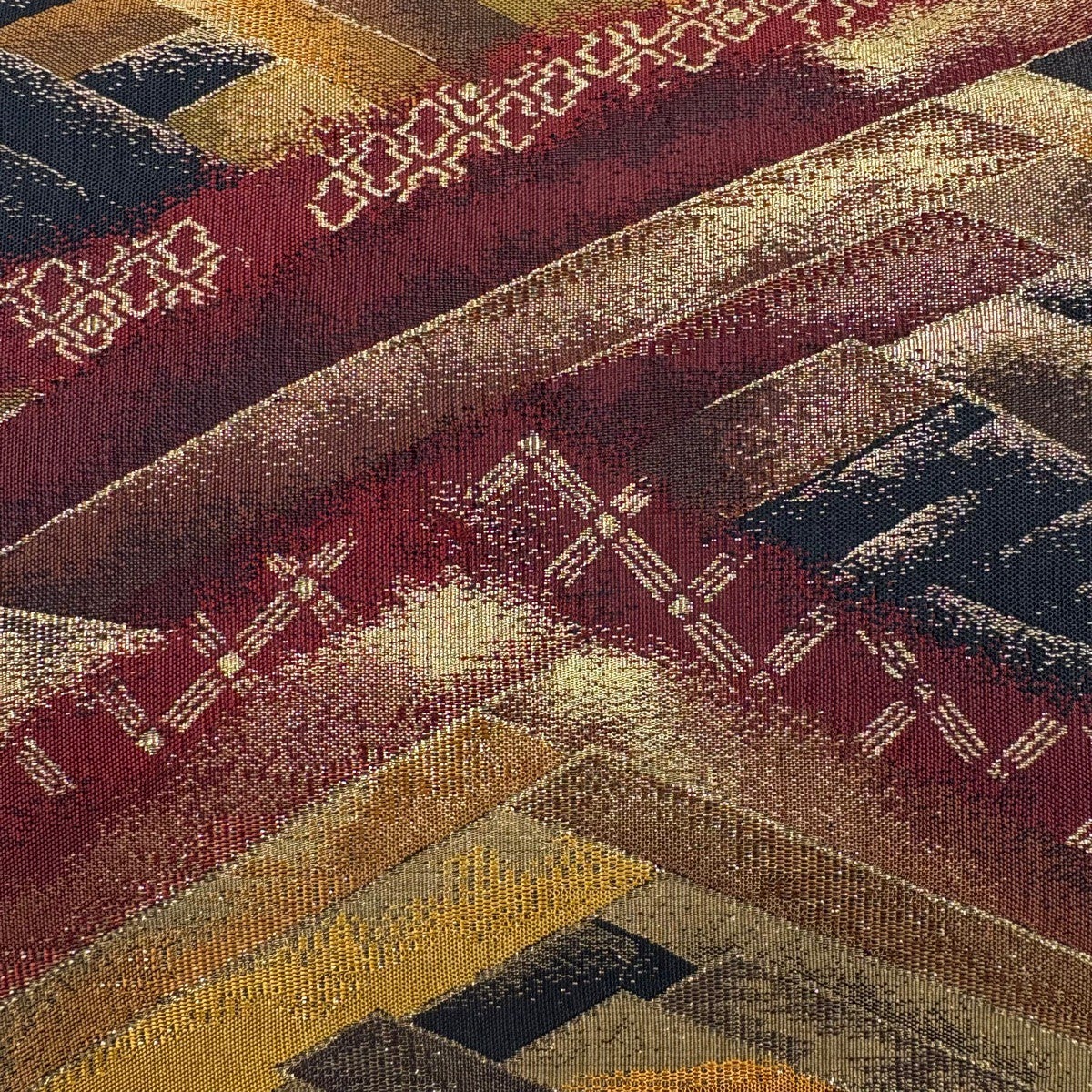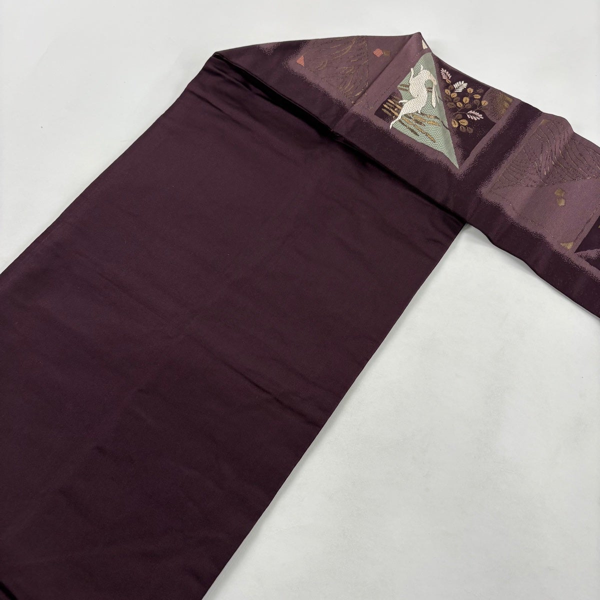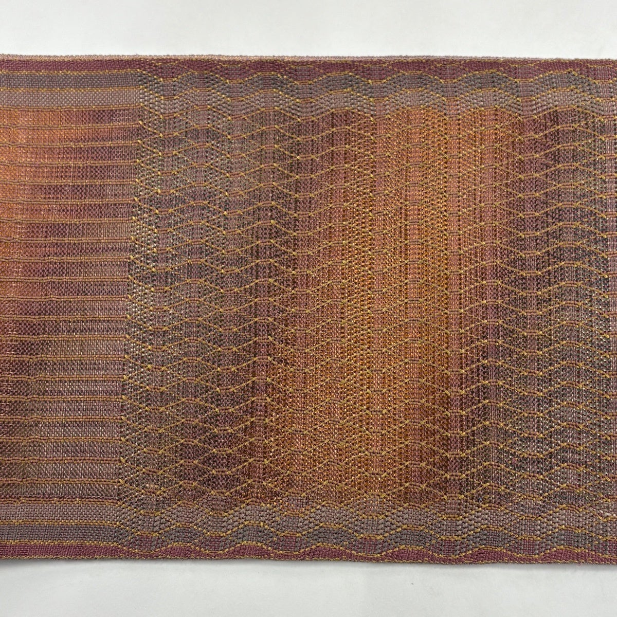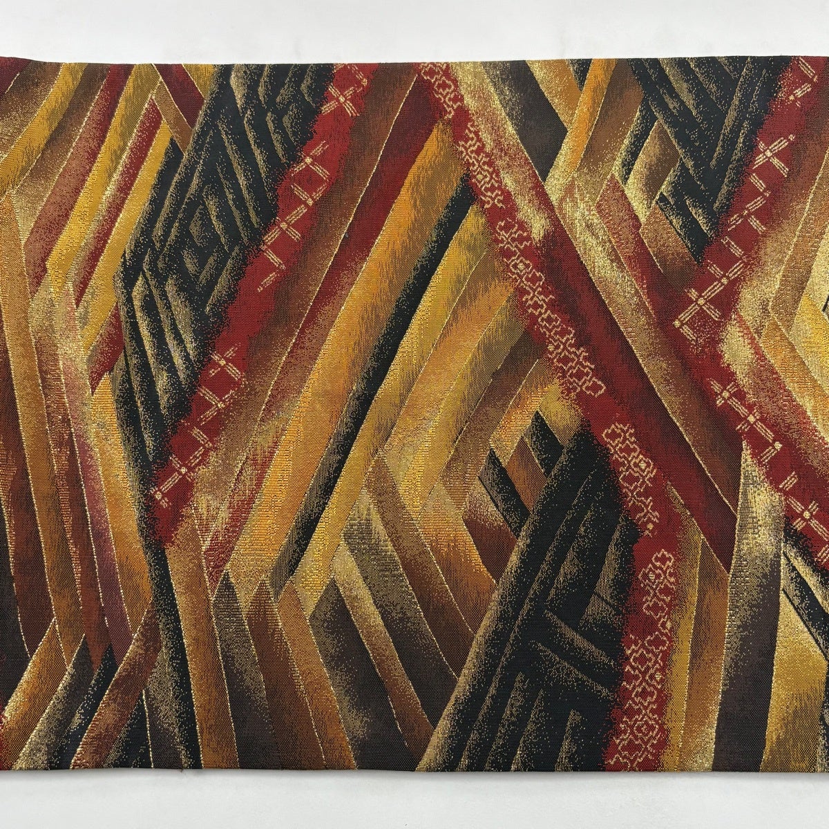 【美品】 袋帯 秀品 幾何学 縞 金糸 箔 赤紫 お太鼓柄 正絹