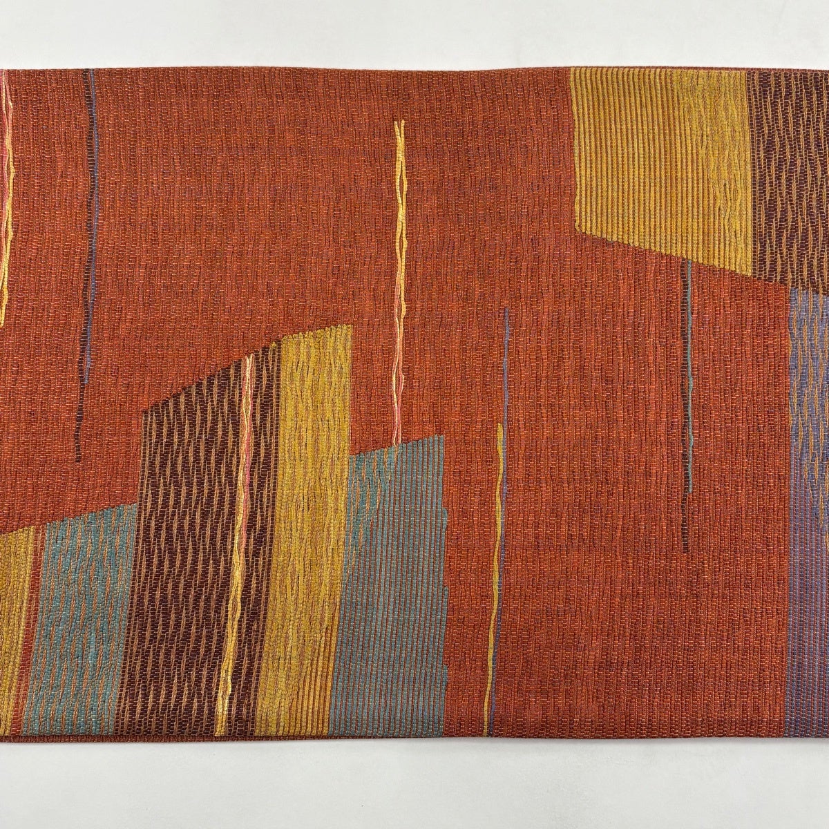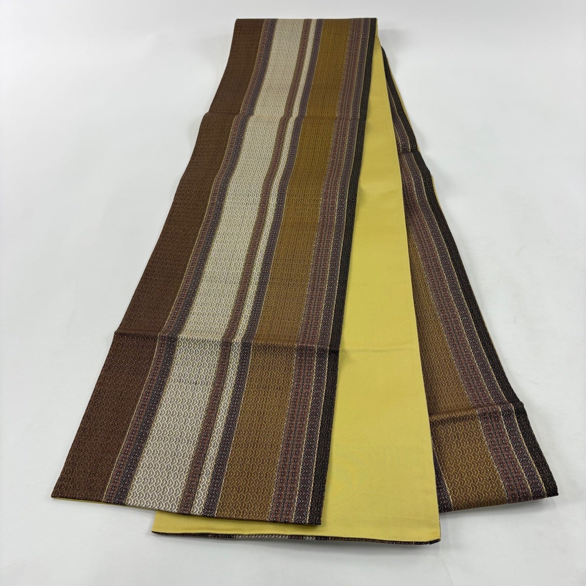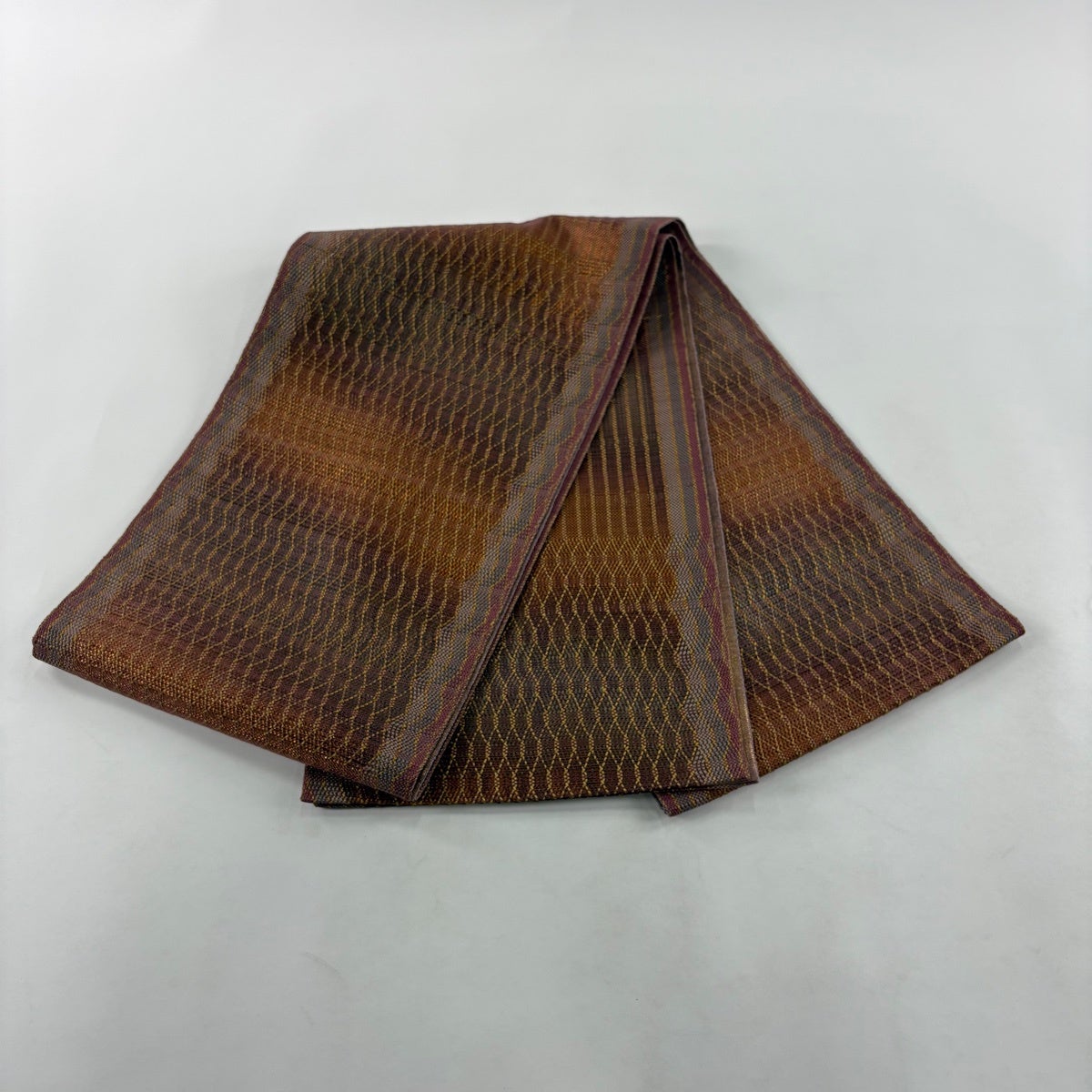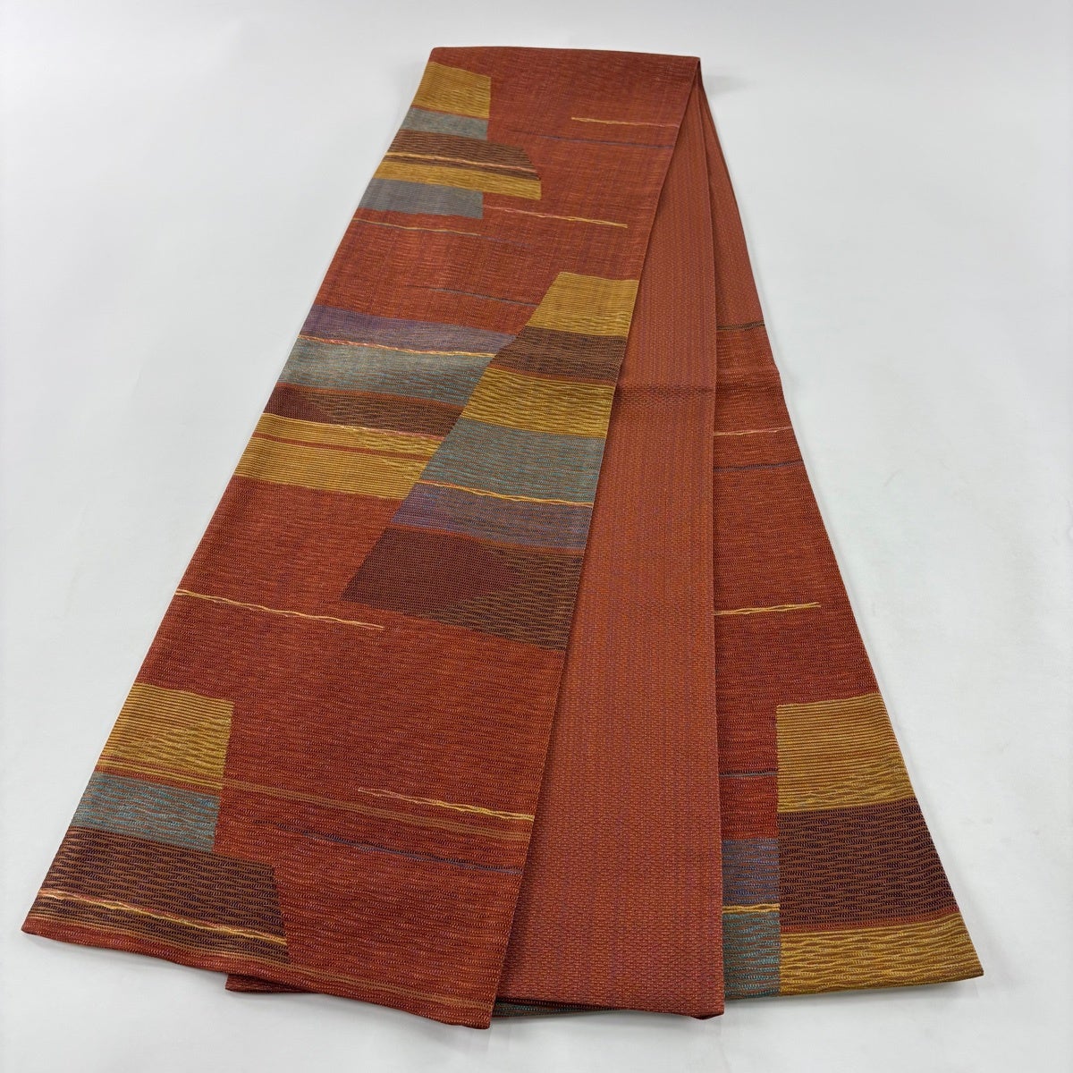 【美品】 袋帯 秀品 幾何学 縞 金糸 箔 赤紫 お太鼓柄 正絹
