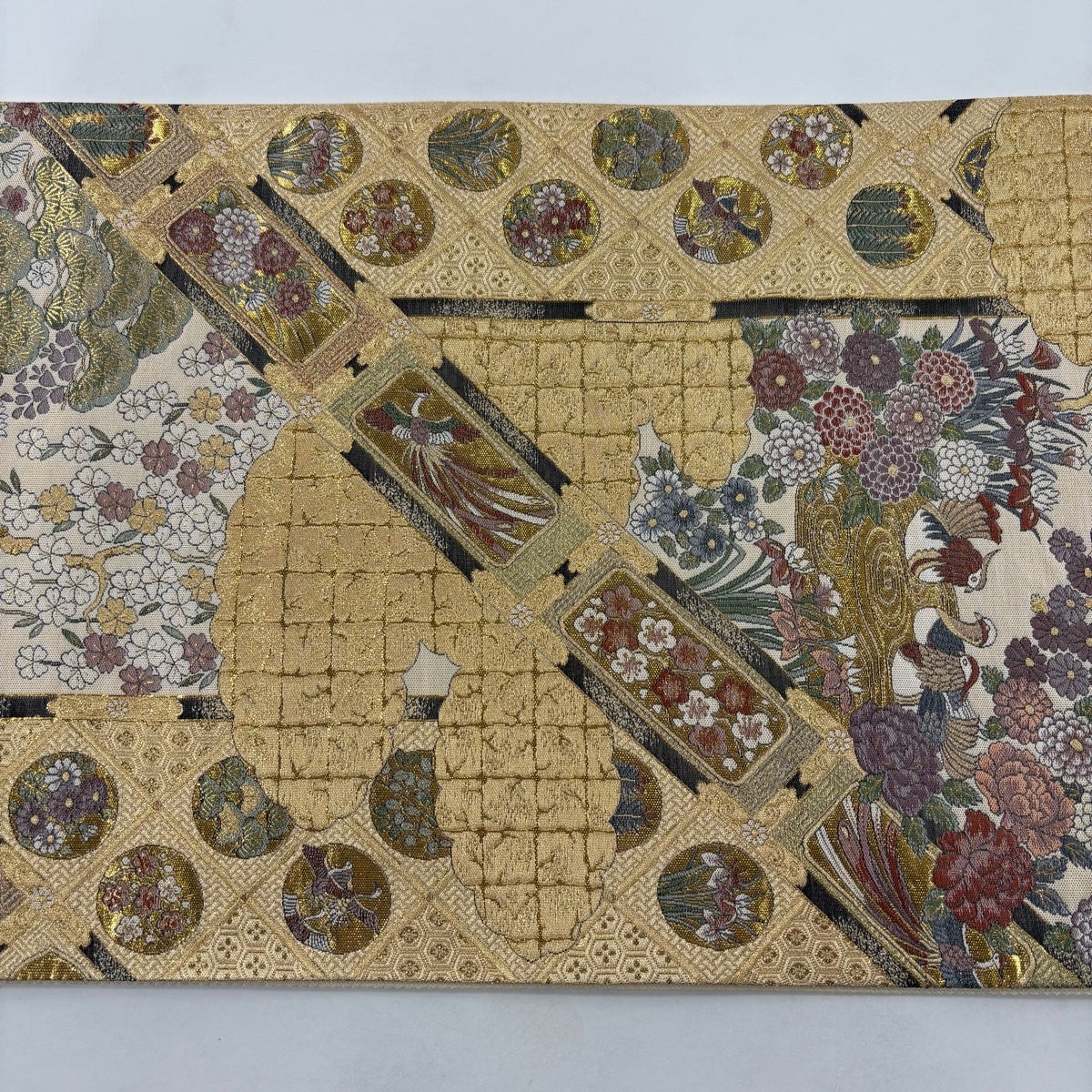振袖 身丈167cm 裄丈67cm M 袷 鳳凰 草花 金彩 ベージュ 正絹 秀品