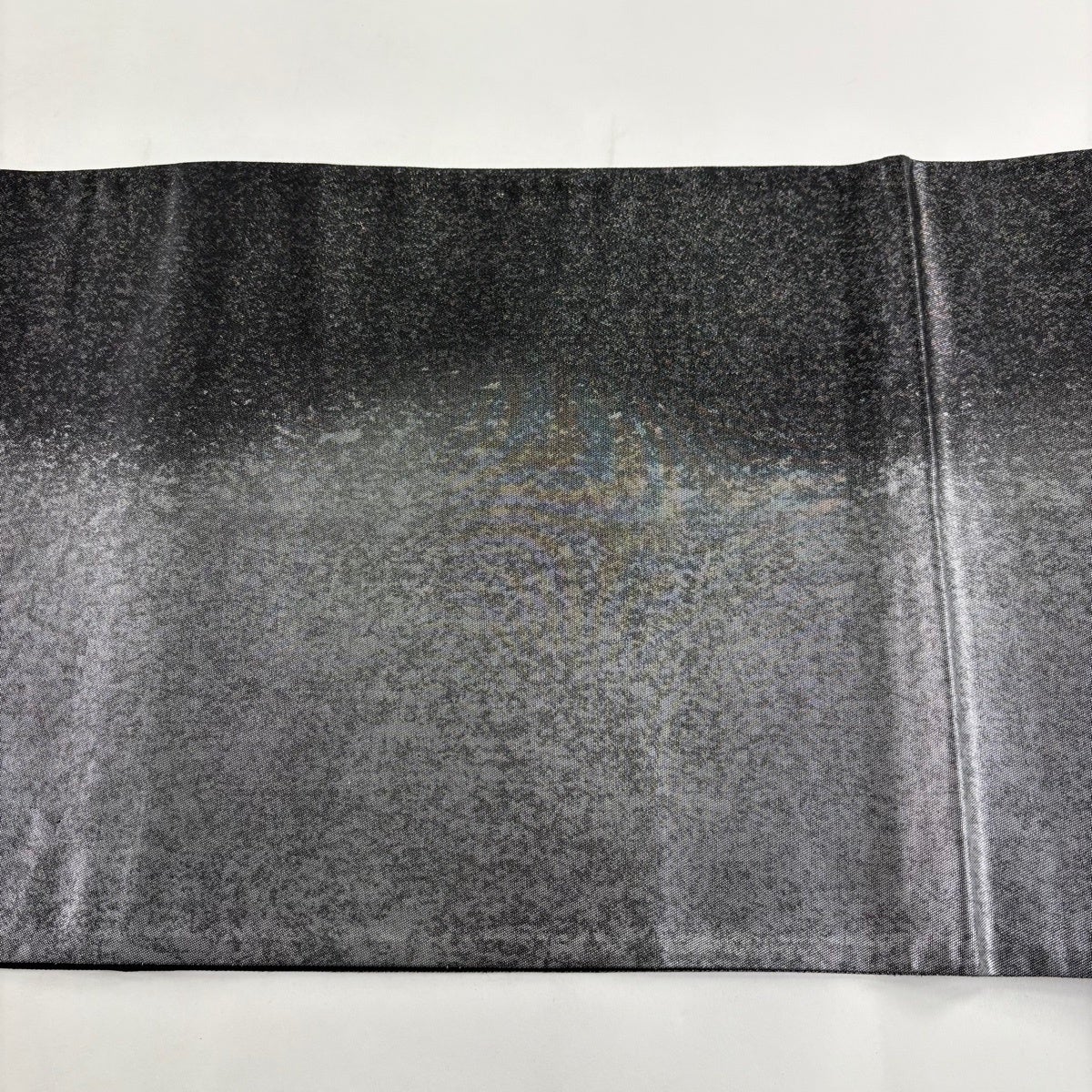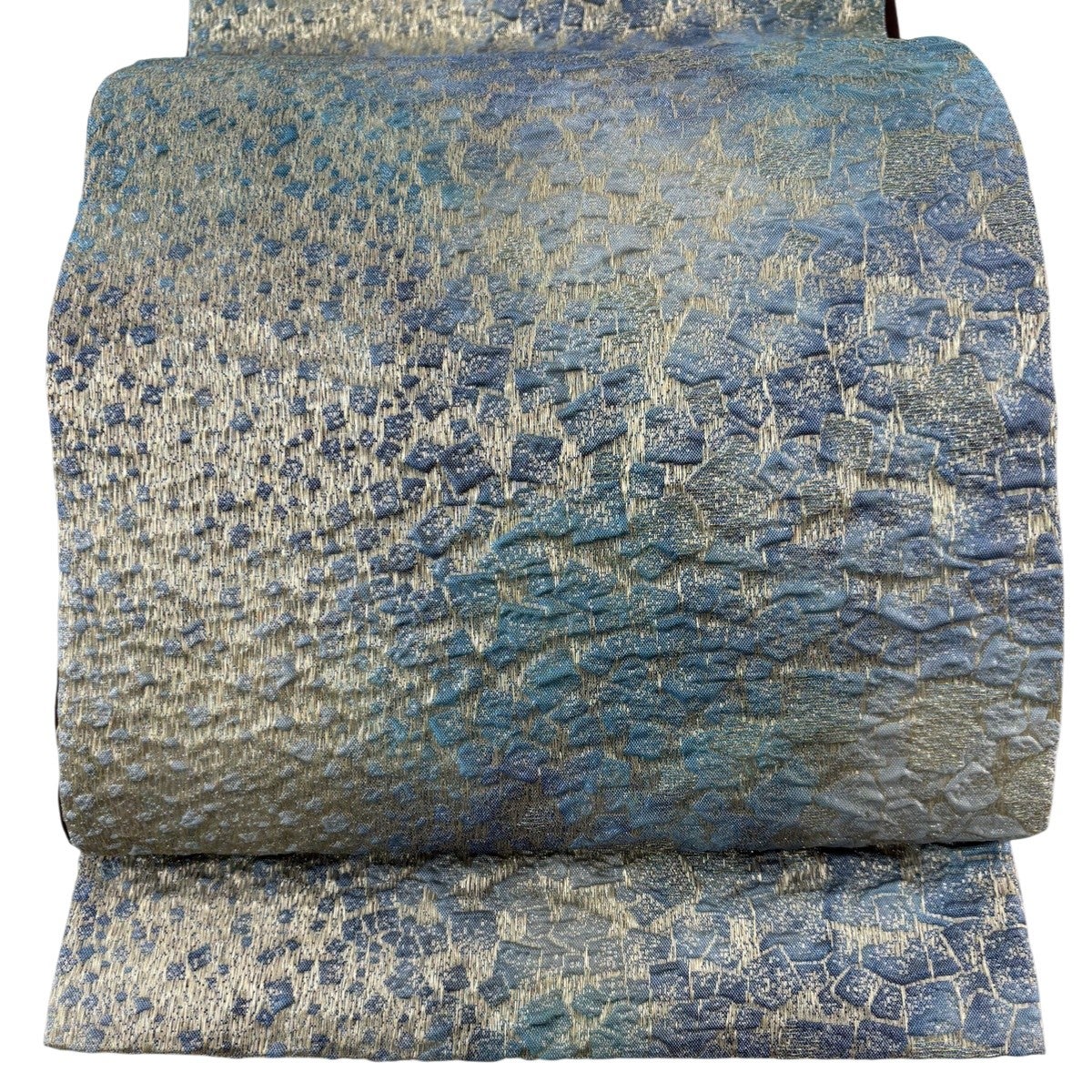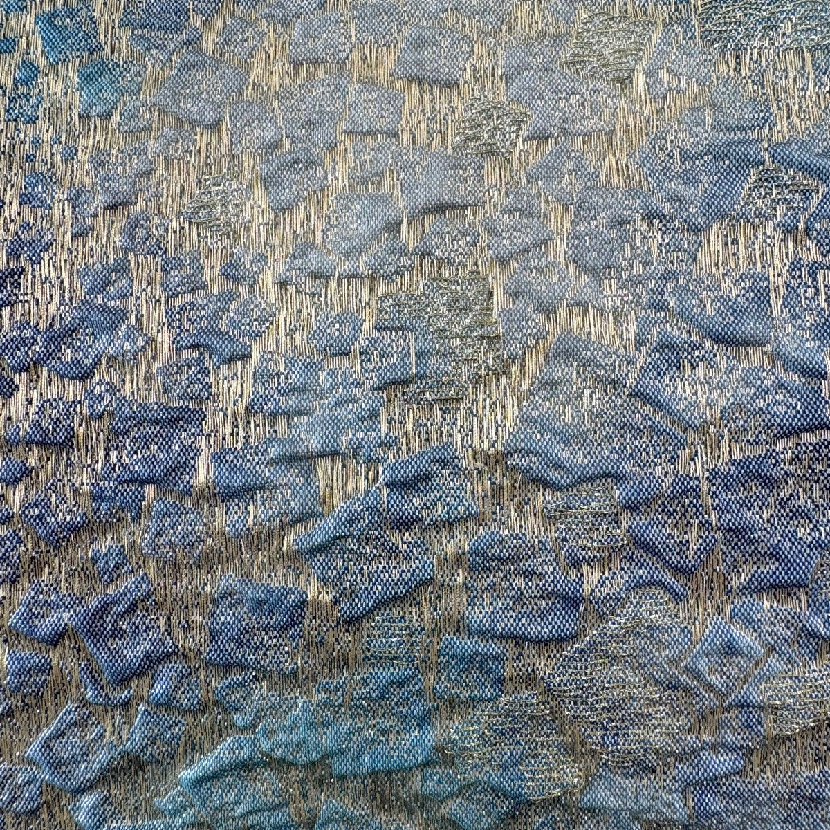 【美品】 袋帯 秀品 幾何学 銀糸 箔 青灰色 全通 正絹