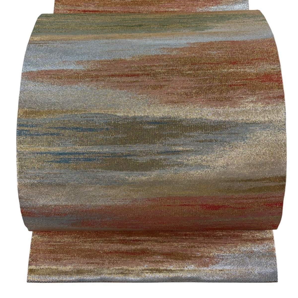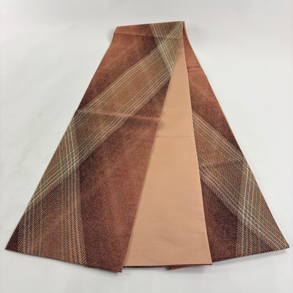 【美品】 袋帯 秀品 斜縞 金銀糸 金通し 赤茶 全通 正絹