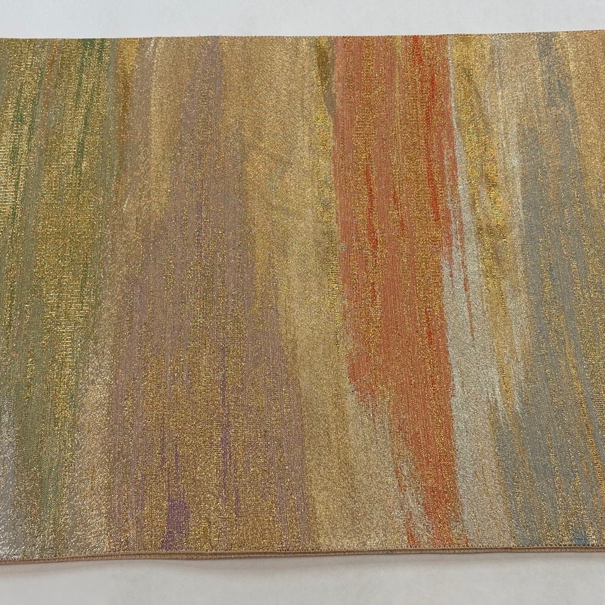 【美品】 袋帯 秀品 霞 金銀糸 箔 オレンジ 全通 正絹