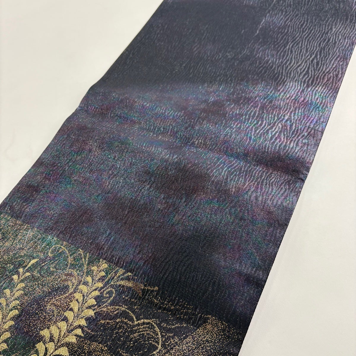 【美品】 袋帯 秀品 花唐草 波 金糸 箔 金色 六通 正絹
