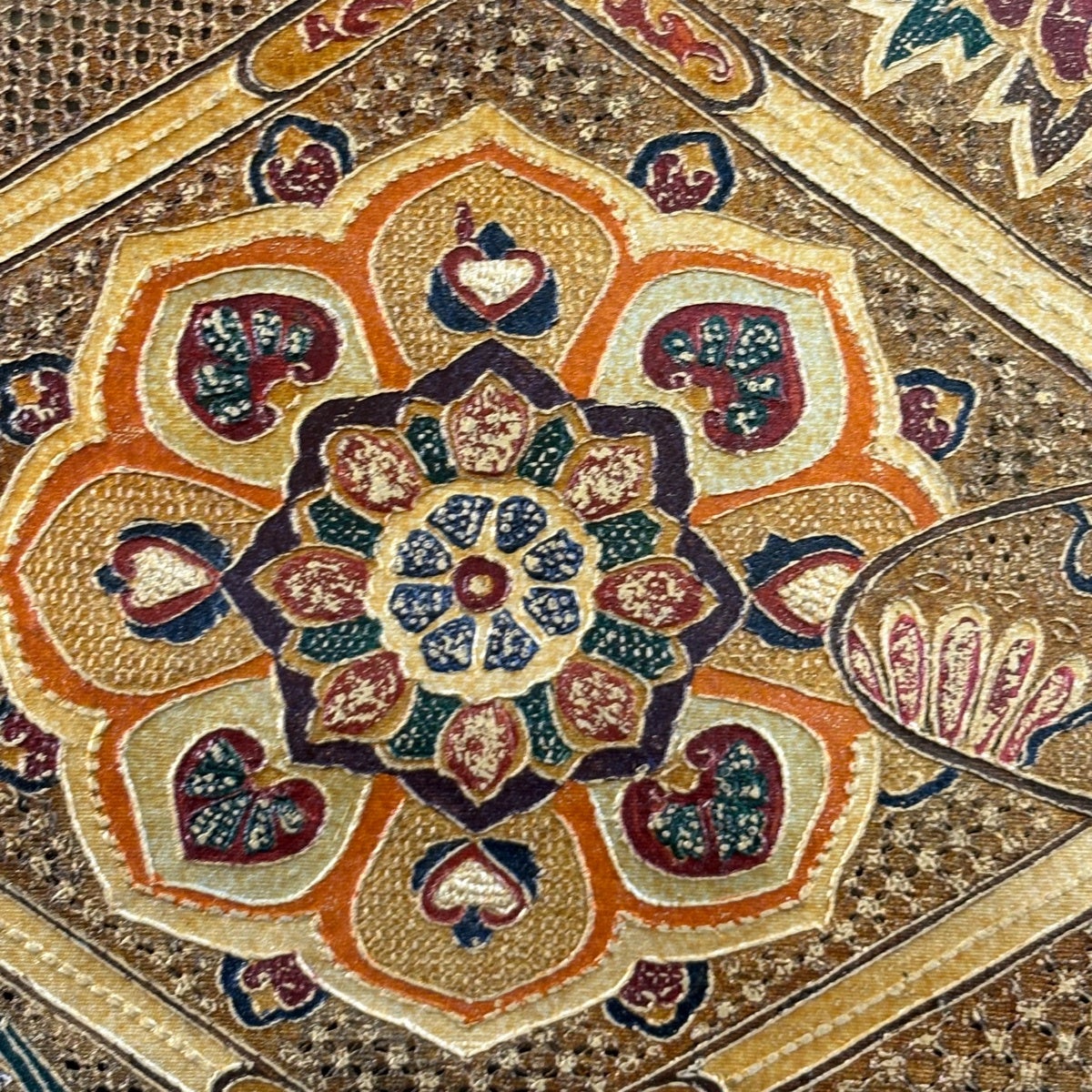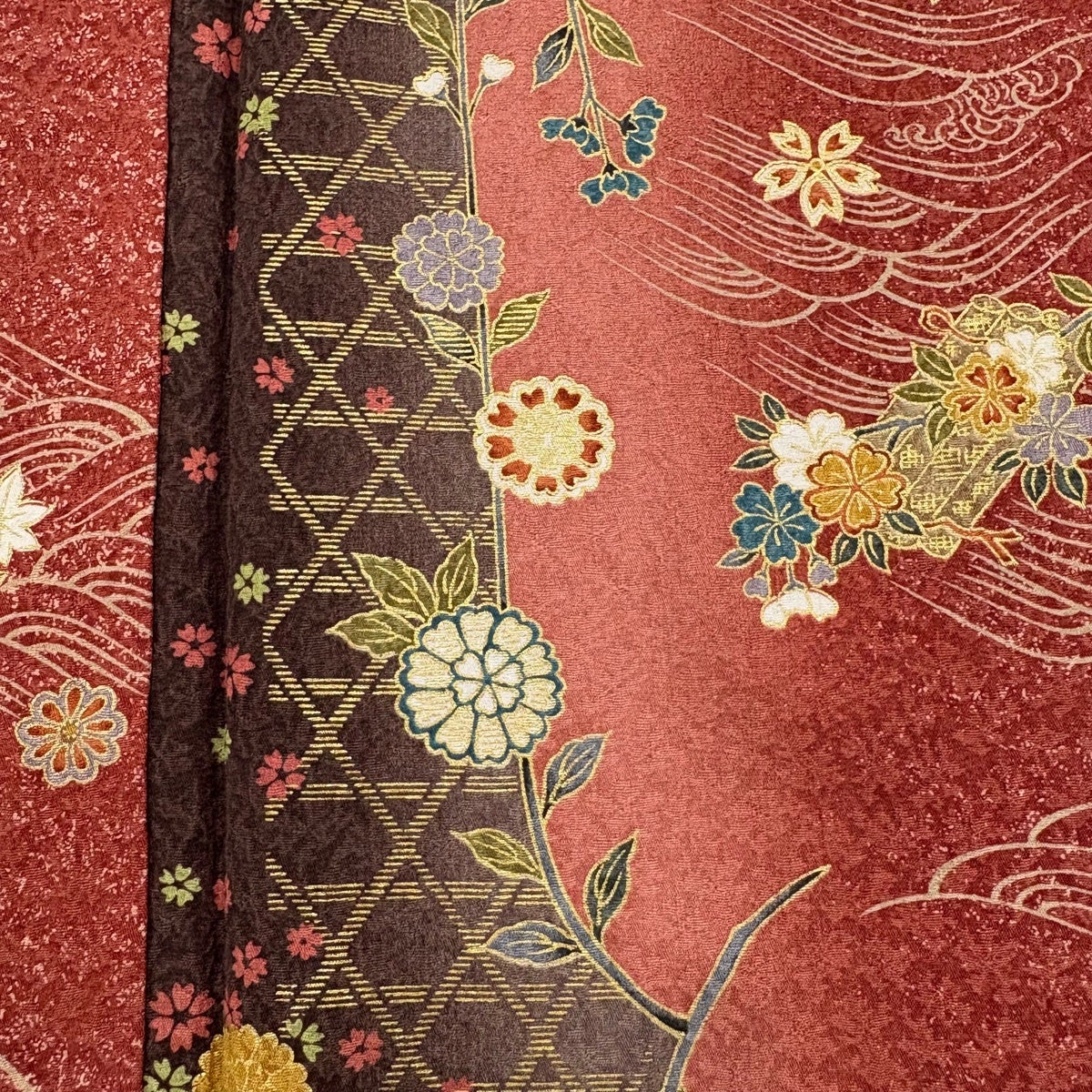 【美品】 袋帯 秀品 紬地 花柄 幾何学 金通し 赤茶 お太鼓柄 正絹