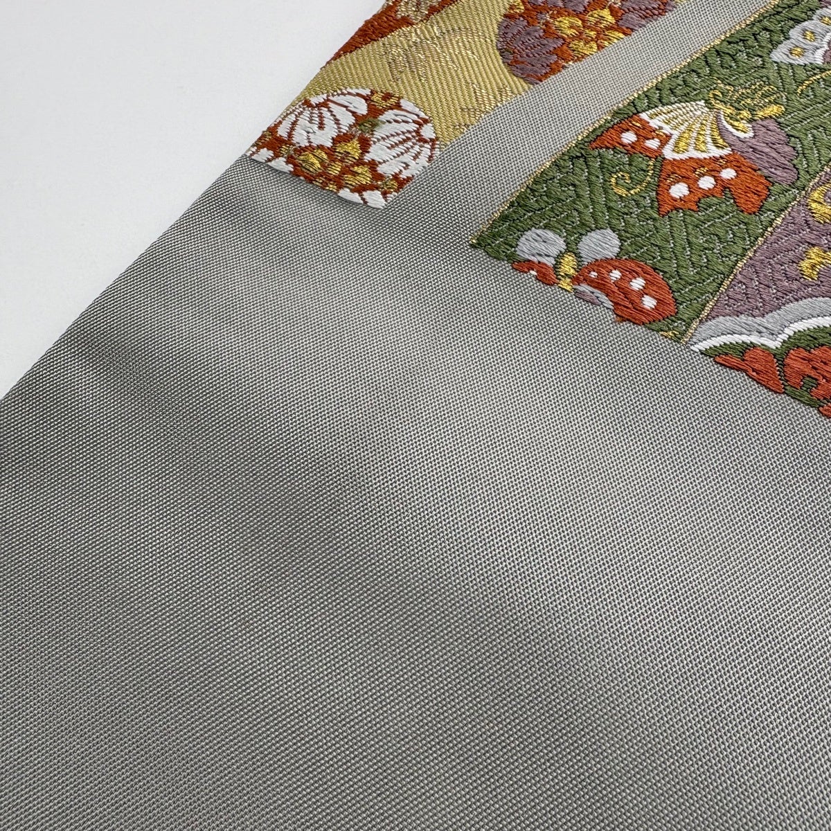 【美品】 袋帯 秀品 蔓帯 牡丹 唐織 箔 灰色 六通 正絹