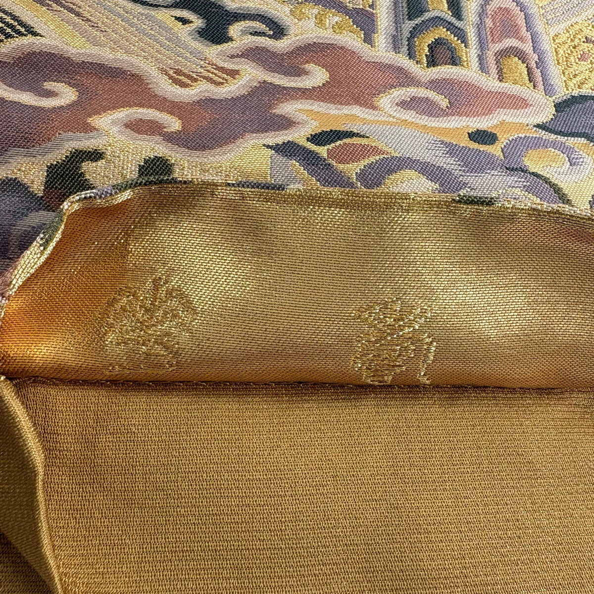 【美品】 袋帯 秀品 彩流錦 華文 花鳥 唐織 金銀糸 金色 六通 正絹