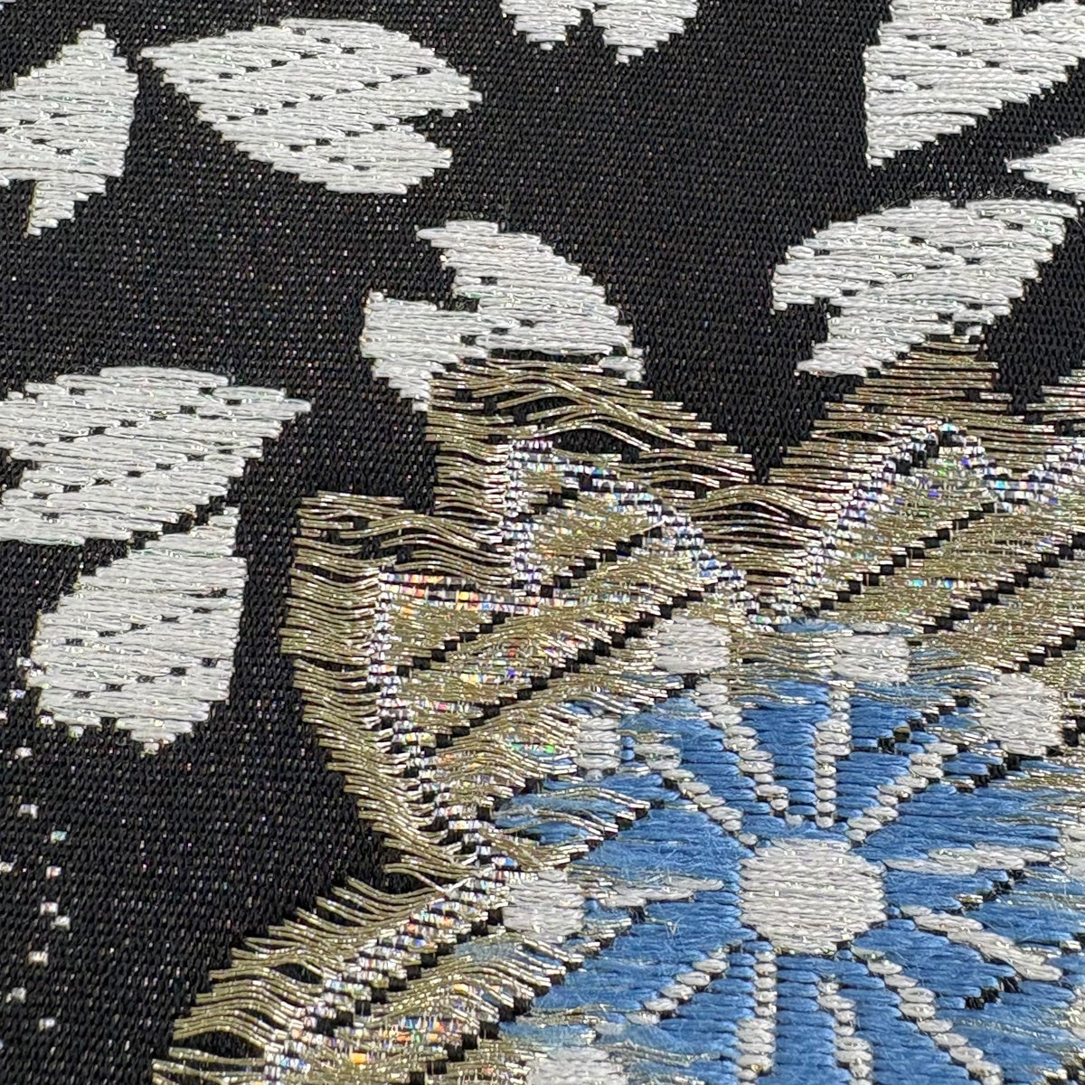 【美品】 袋帯 秀品 流水 幾何学 金糸 箔 黒 六通 正絹