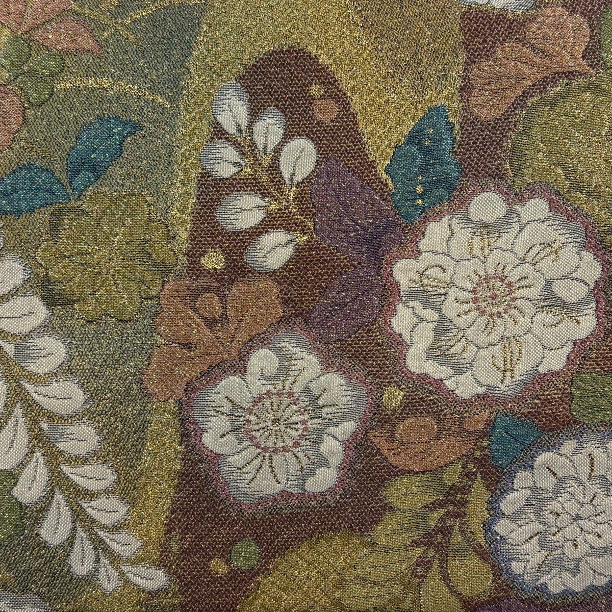 【美品】 袋帯 秀品 草花 華文 金糸 箔 金色 六通 正絹