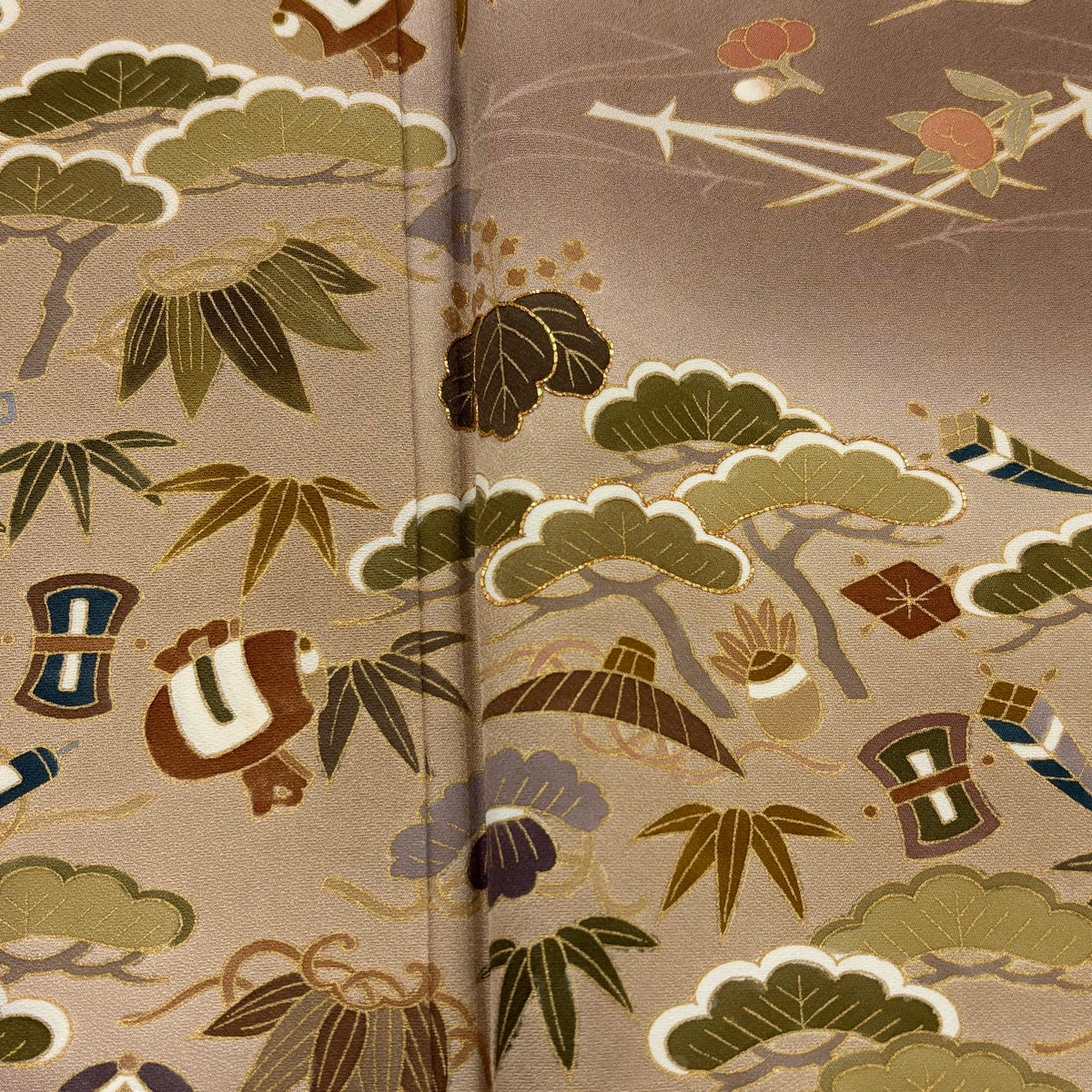 【美品】 袋帯 秀品 若松 草花 箔 灰色 六通 正絹