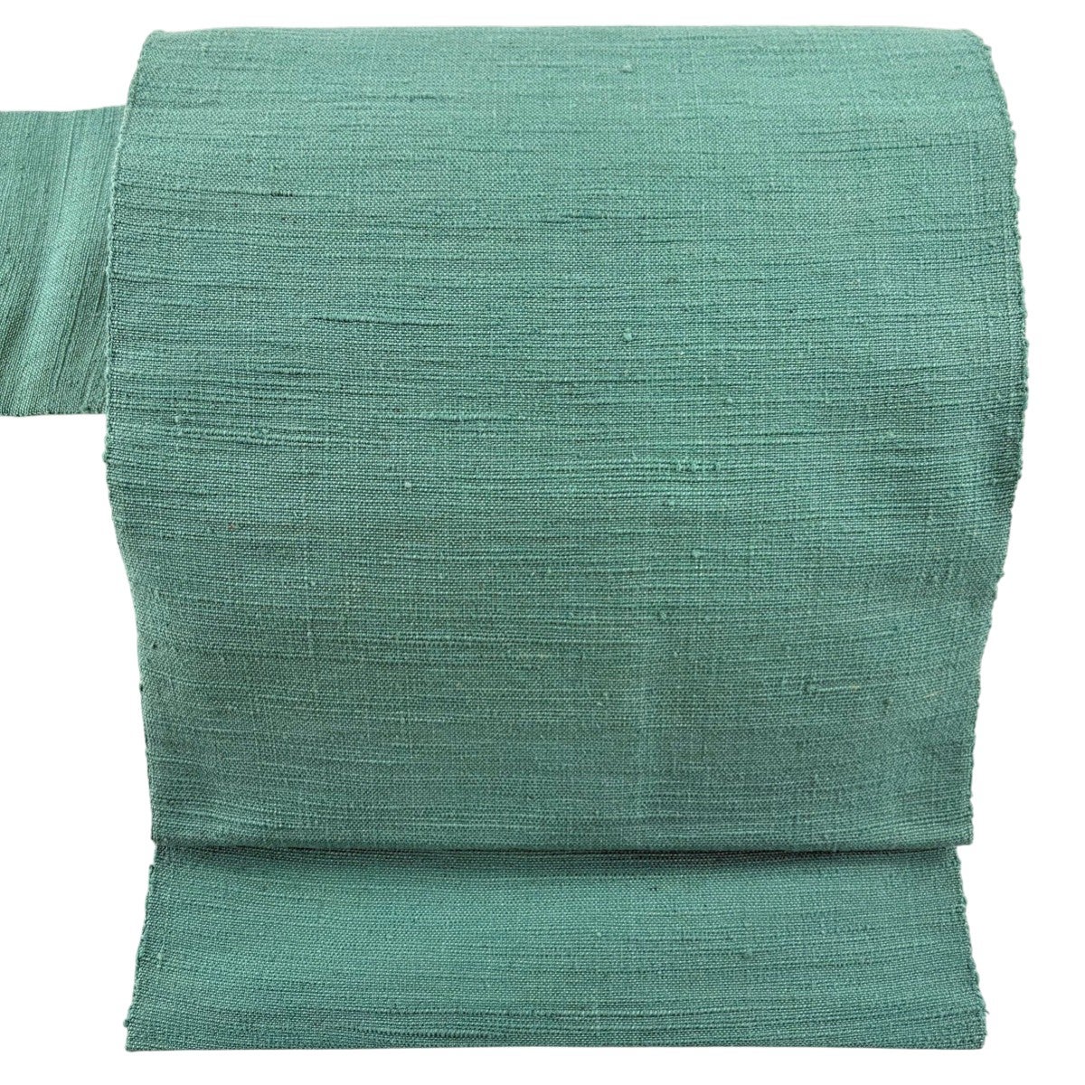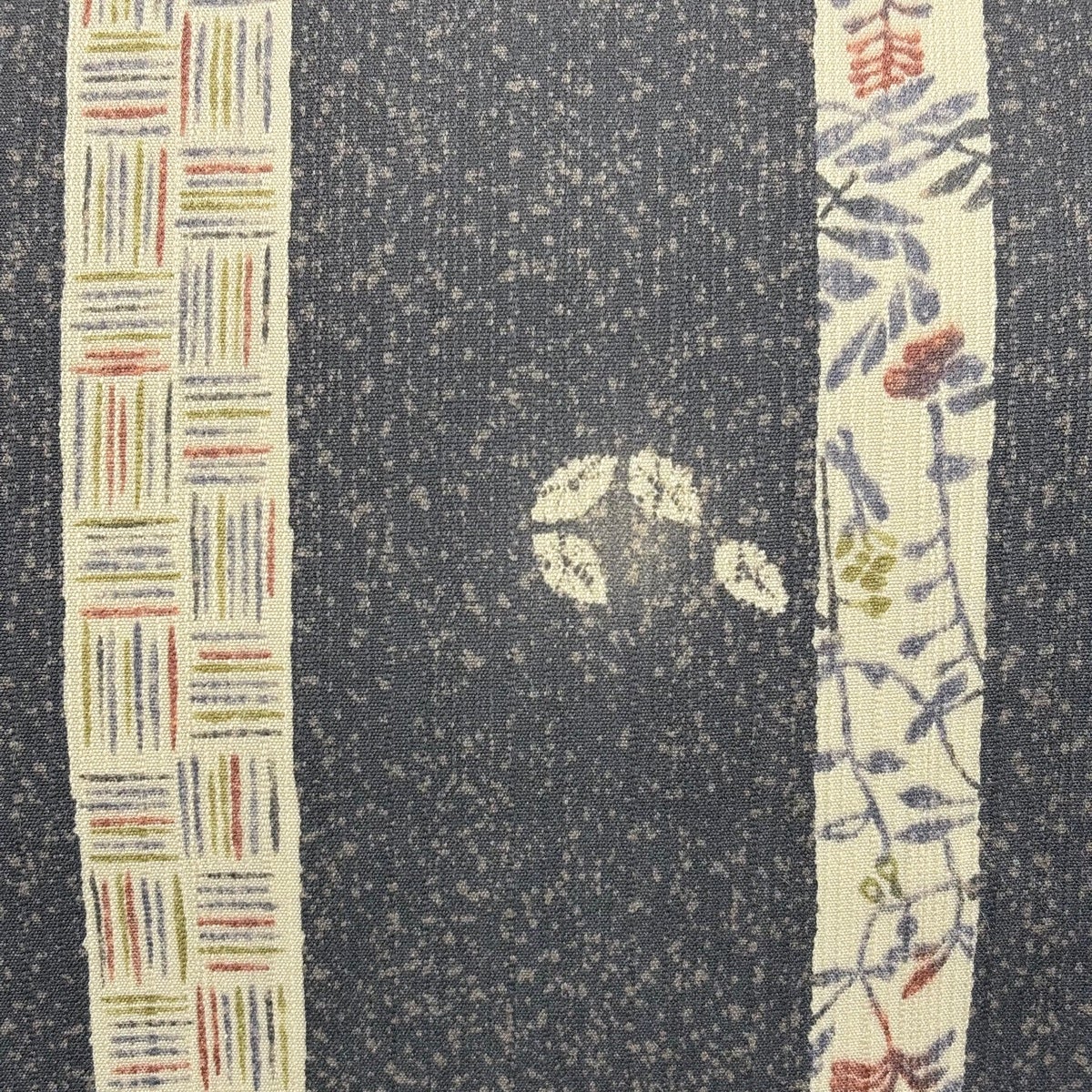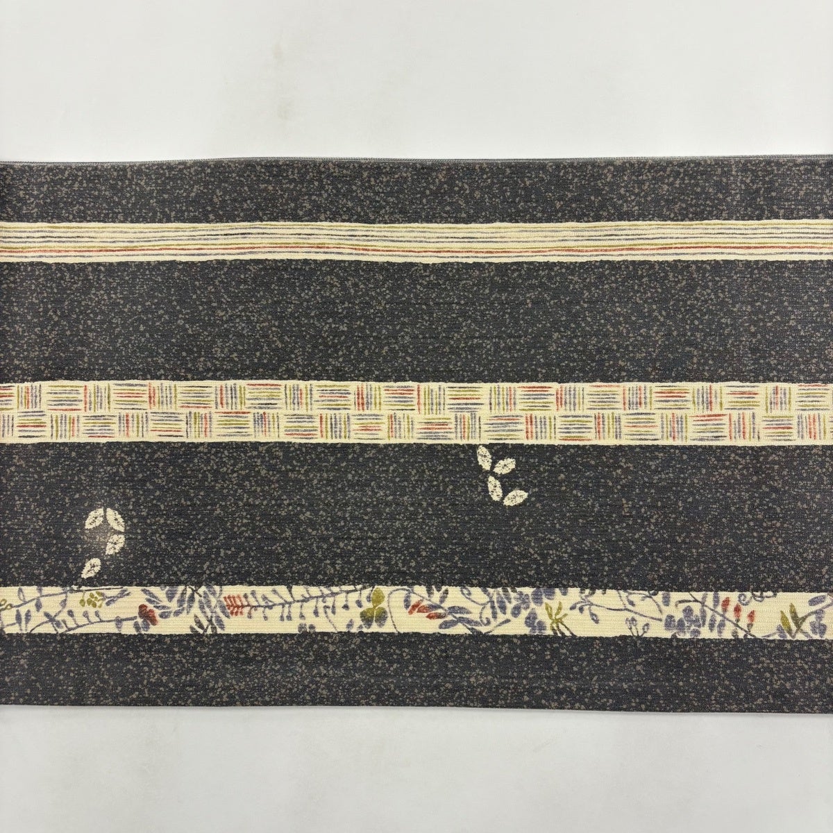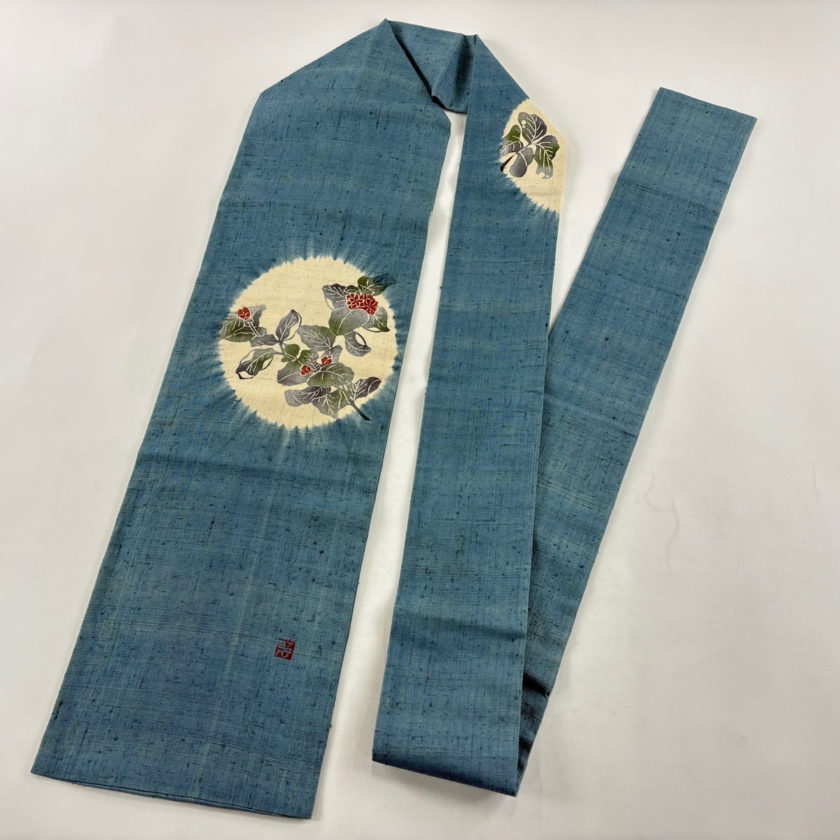 名古屋帯 秀品 落款あり 紬地 草花 青灰色 正絹
