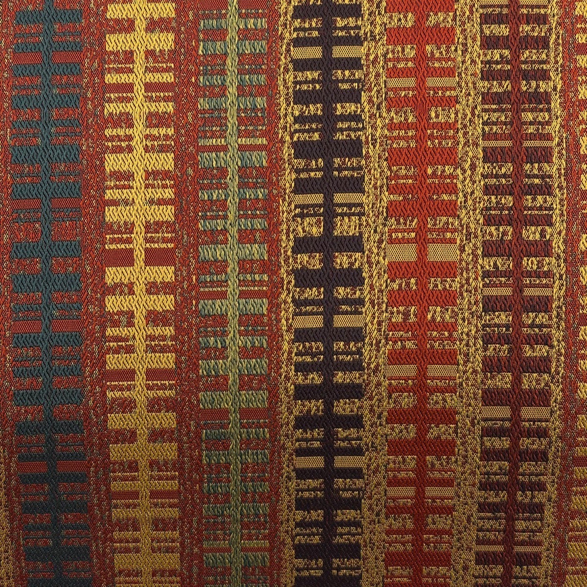 【美品】 袋帯 秀品 幾何学 赤茶 全通 正絹