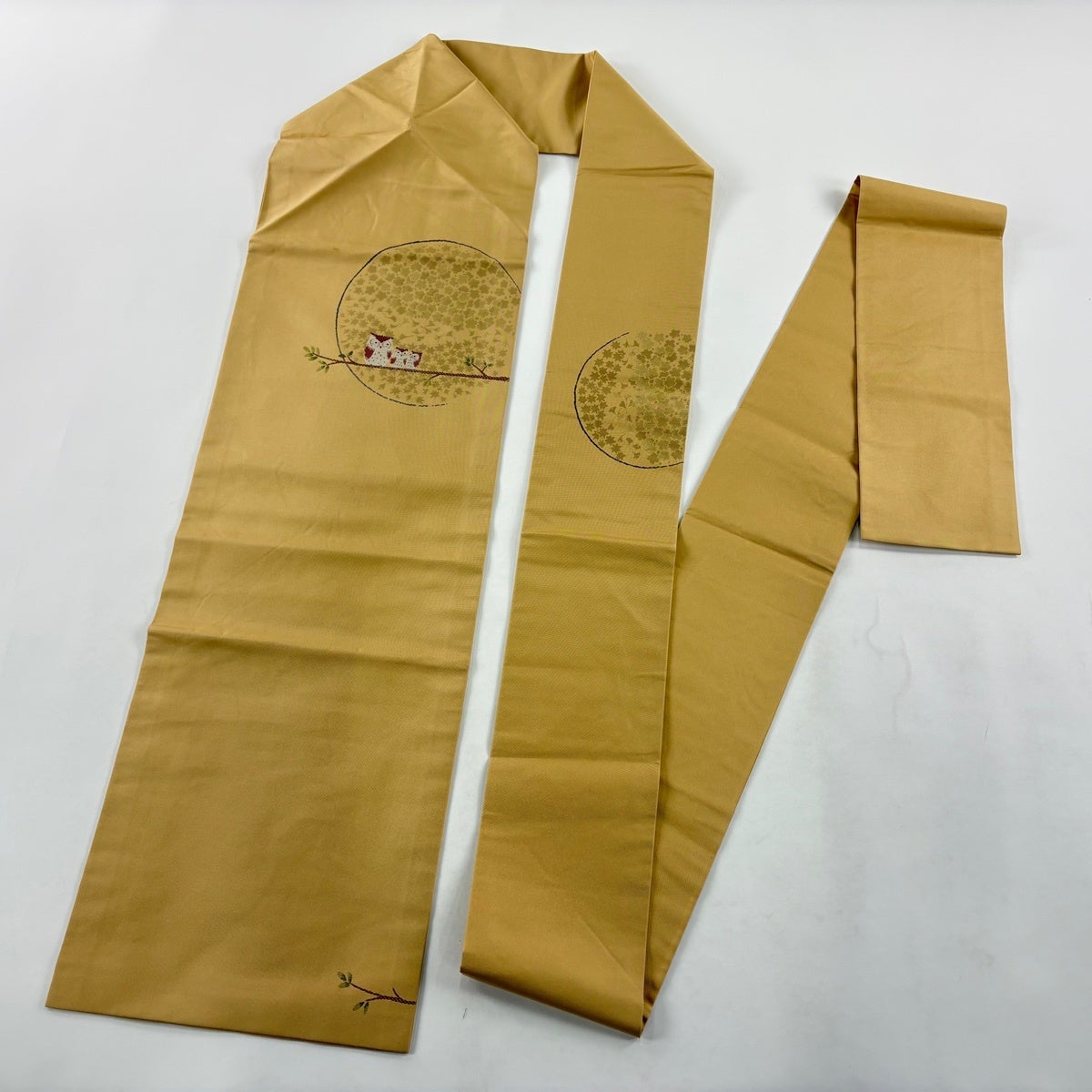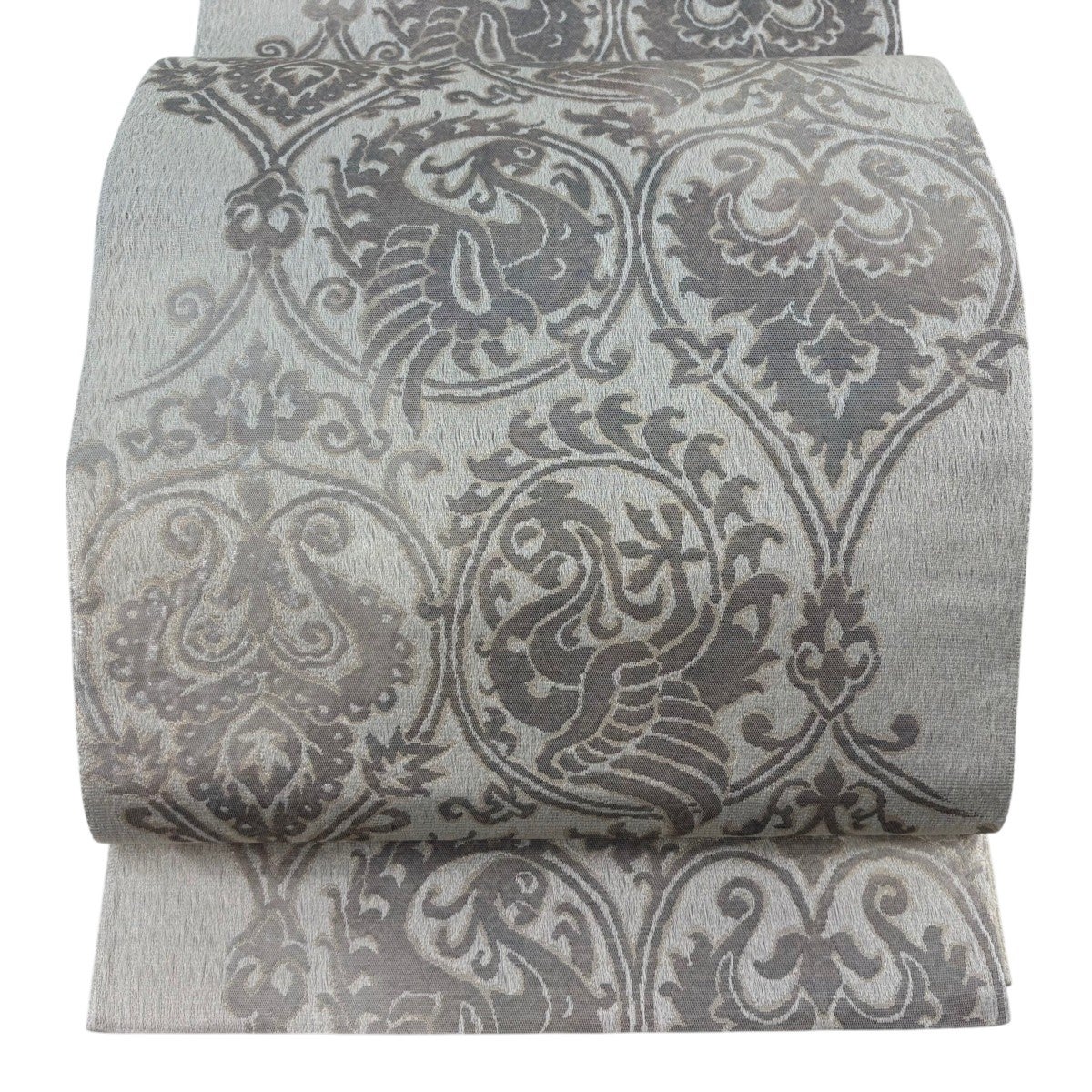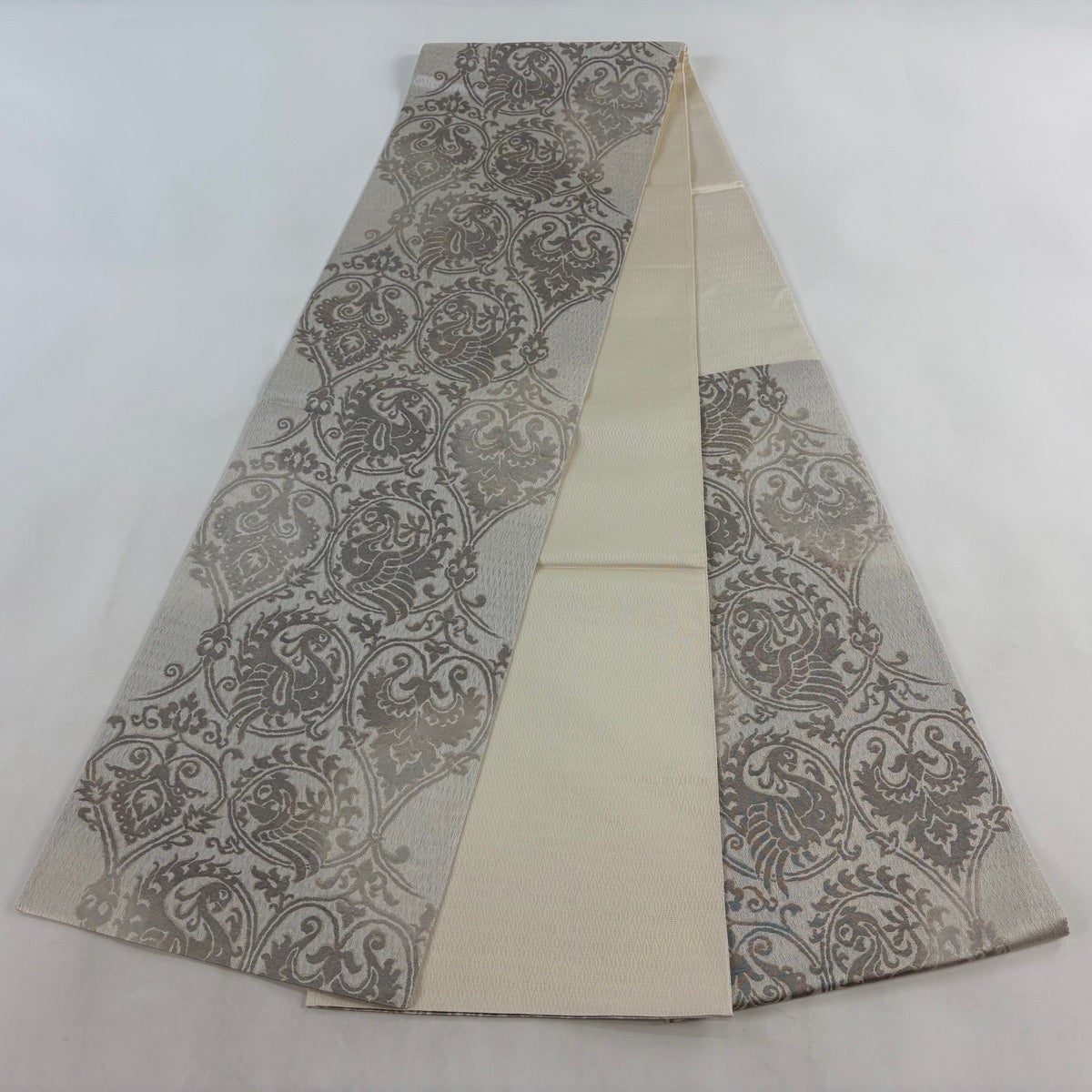 名古屋帯 秀品 ミミズク 枝葉 ベージュ 正絹