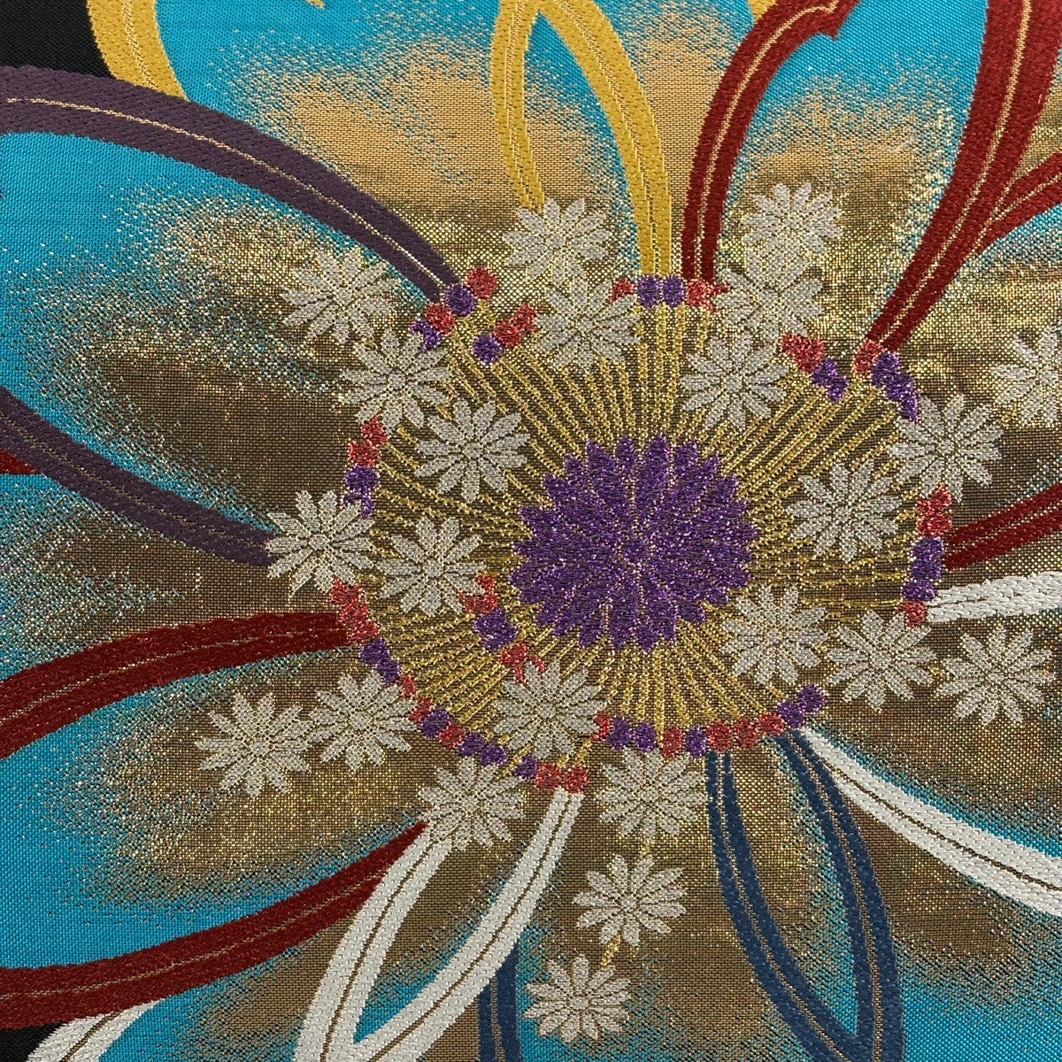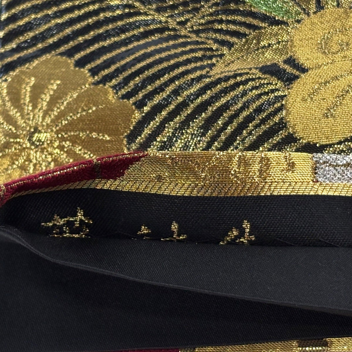 【美品】 袋帯 秀品 振袖向き 桜 菊 金糸 箔 黒 六通 正絹