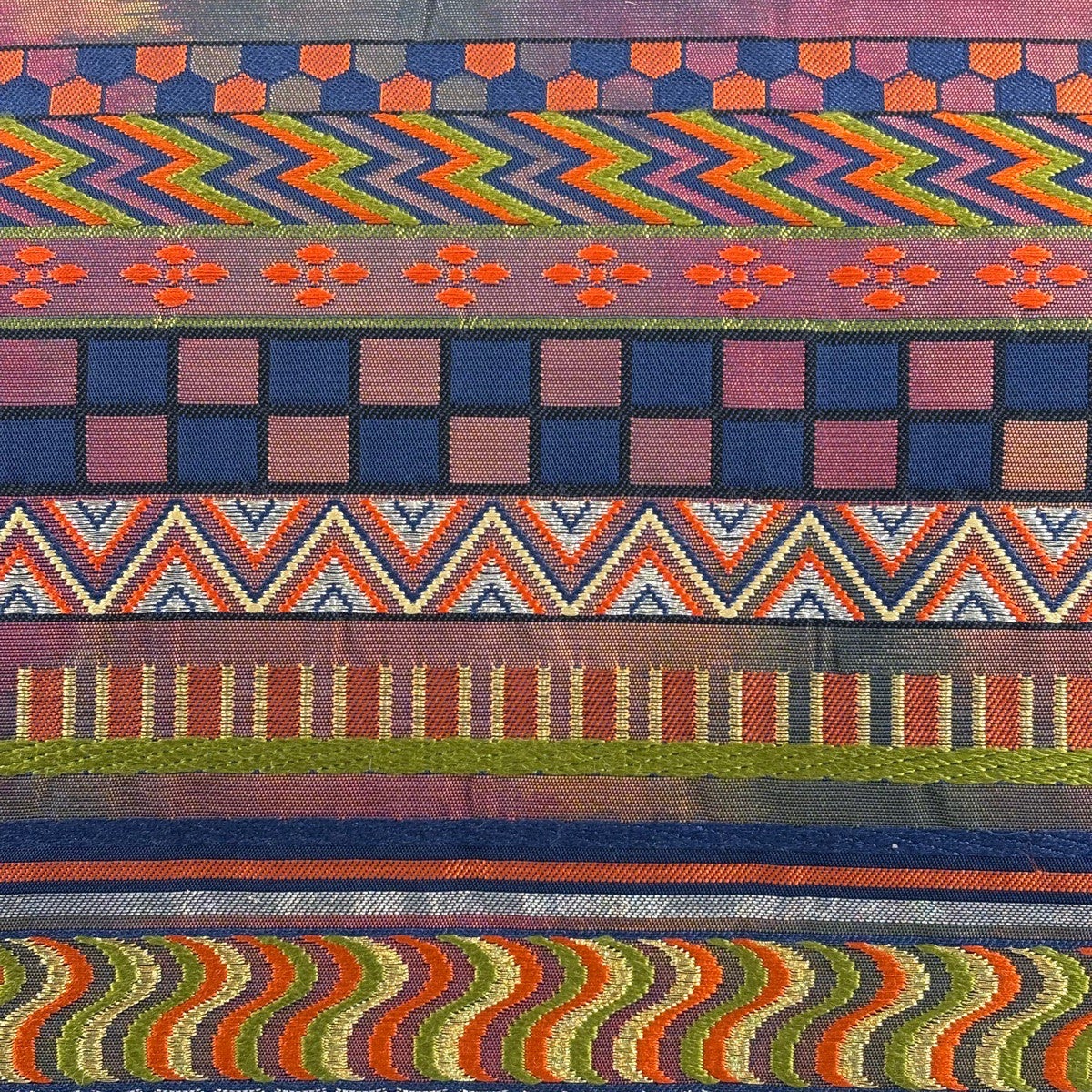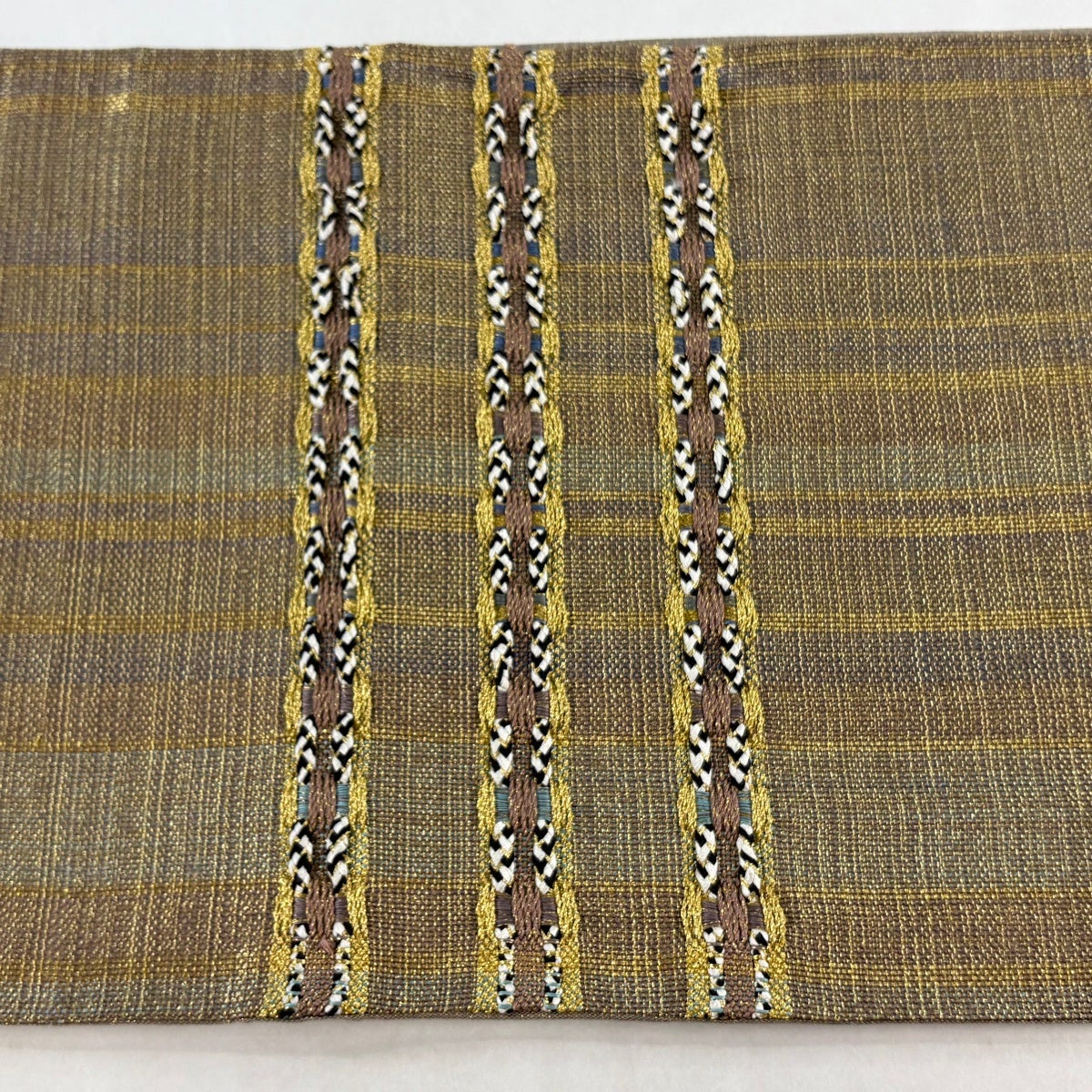 【美品】 袋帯 秀品 縞 幾何学模様 金糸 金色 お太鼓柄 正絹