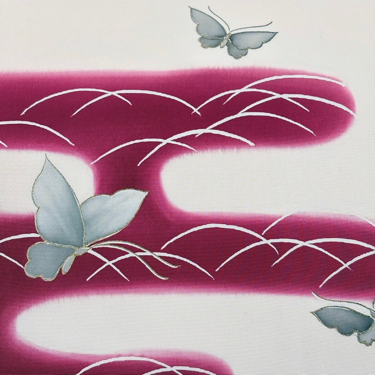 名古屋帯 秀品 蝶 ヱ霞 金彩 クリーム 正絹