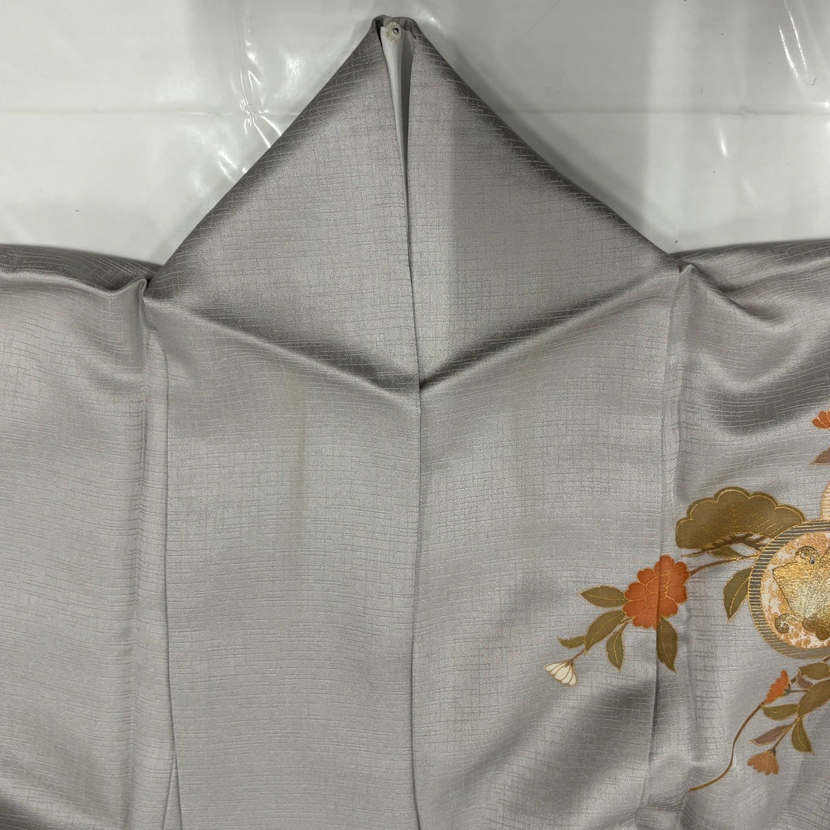 訪問着 身丈160.5cm 裄丈63.5cm S 袷 鎌倉文 秋草 金銀彩 ぼかし 灰色 正絹 秀品 一つ紋