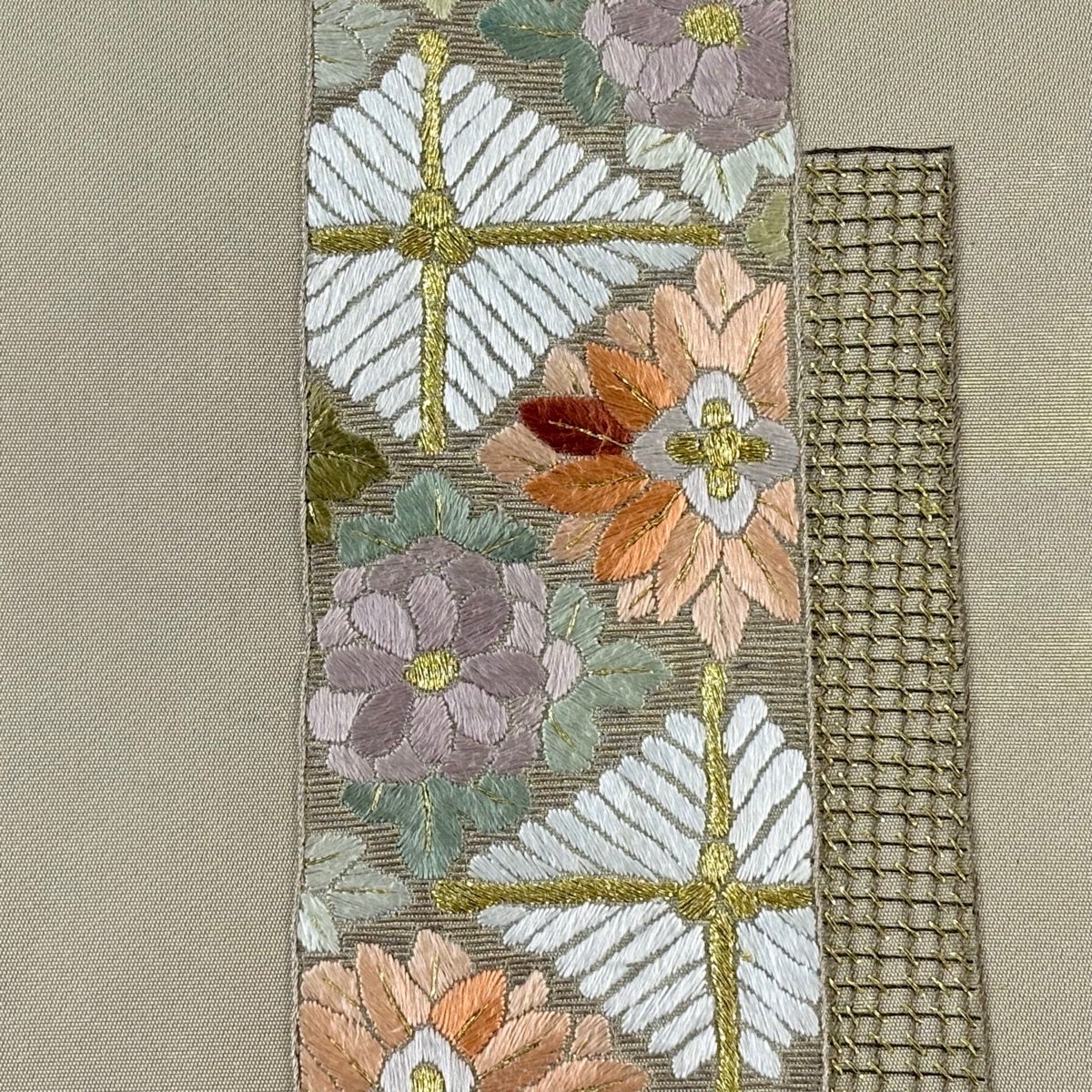 名古屋帯 秀品 短冊 草花 刺繍 箔 金色 正絹