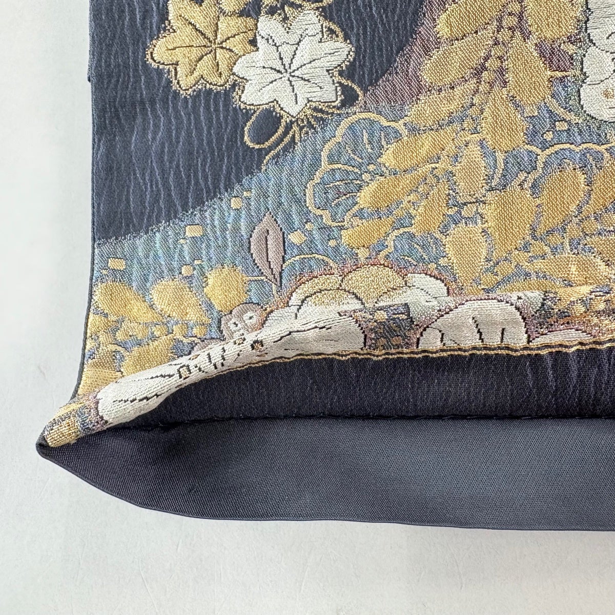 【美品】 袋帯 秀品 虹彩清遊文 紅葉 金糸 箔 灰緑 六通 正絹