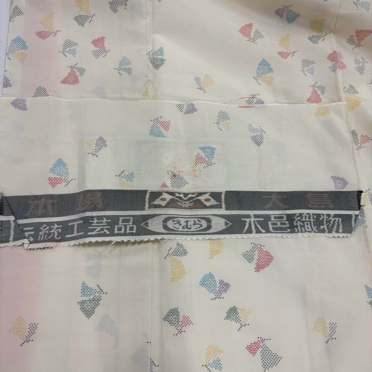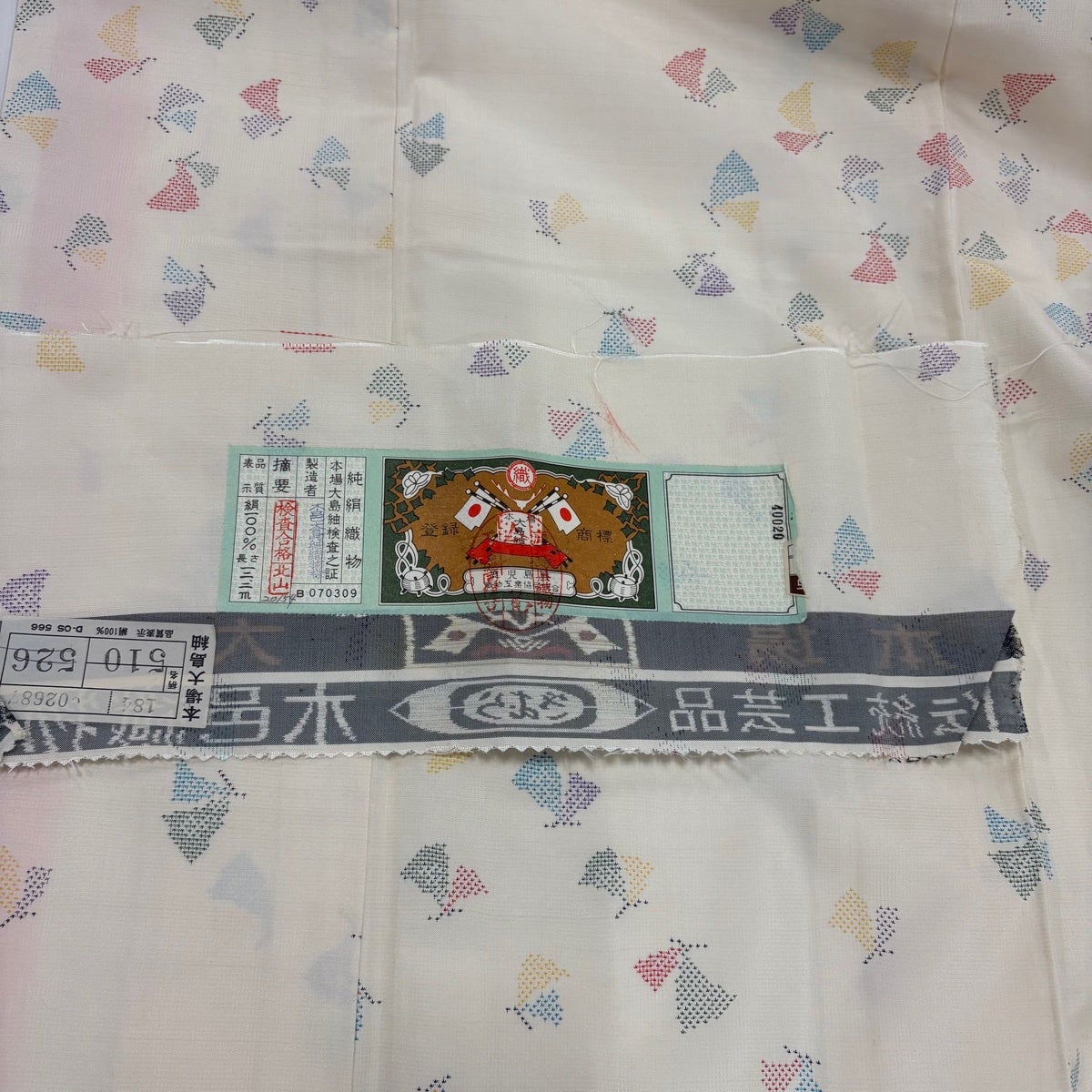 【美品】 大島紬 身丈154.5cm 裄丈62cm S 袷 バチ衿 証紙あり 蝶 クリーム 正絹 秀品