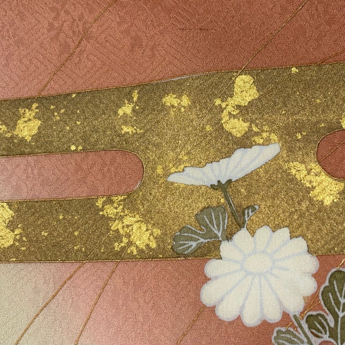 訪問着 身丈159.5cm 裄丈66cm M 袷 蝶 菊 金彩 染め分け 薄オレンジ 正絹 秀品