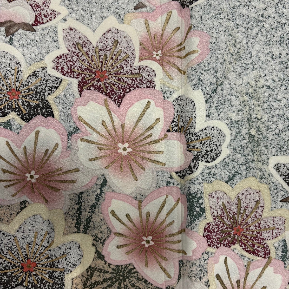 訪問着 身丈159cm 裄丈64.5cm M 袷 落款あり 桜 金彩 染め分け 緑 正絹 秀品
