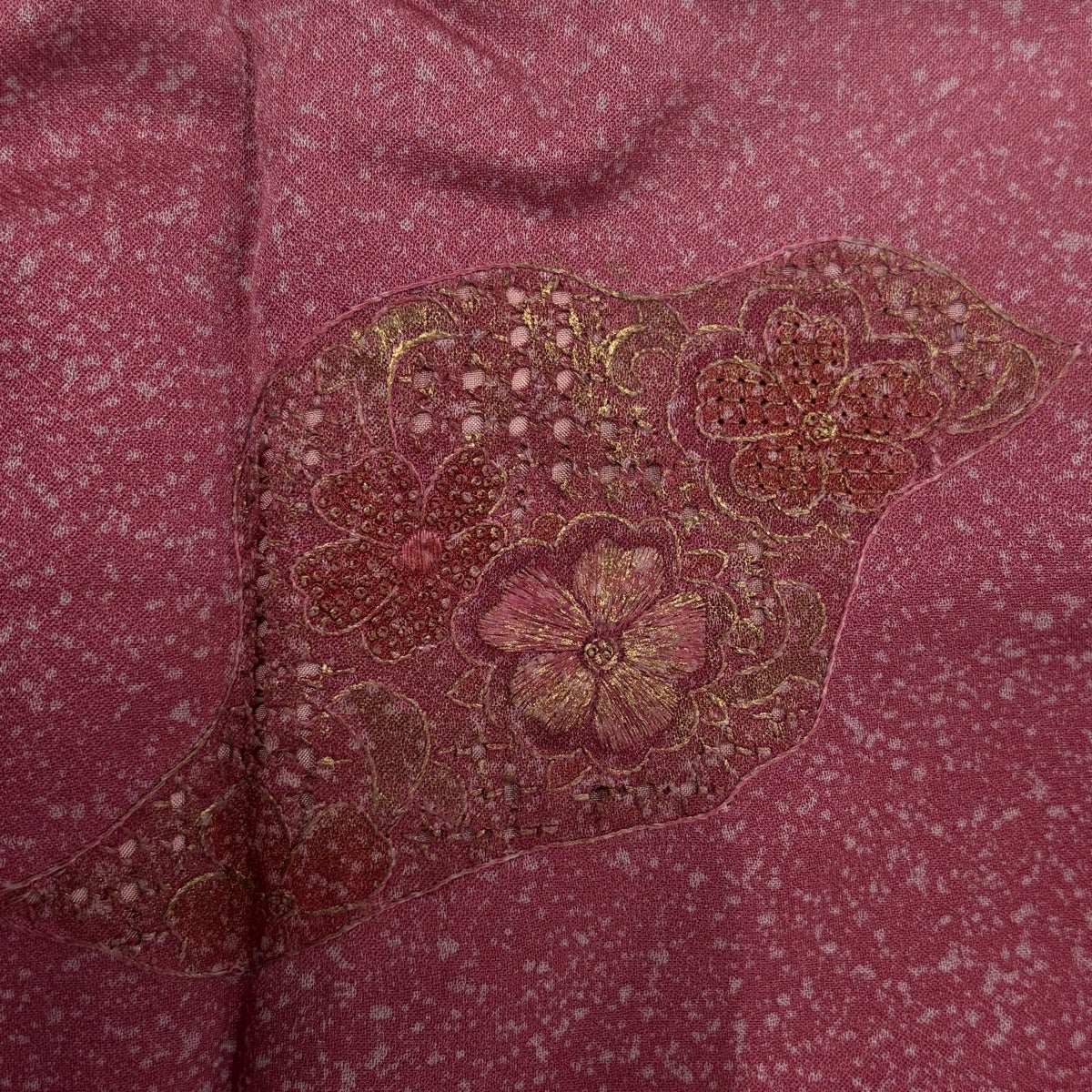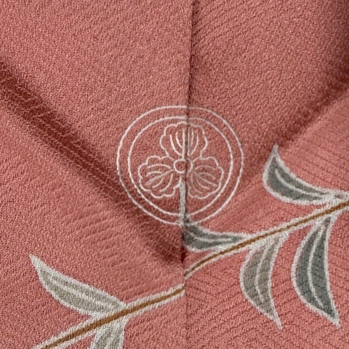【美品】 付下げ 身丈161cm 裄丈63cm S 袷 草花 霞 刺繍 サーモンピンク 正絹 秀品