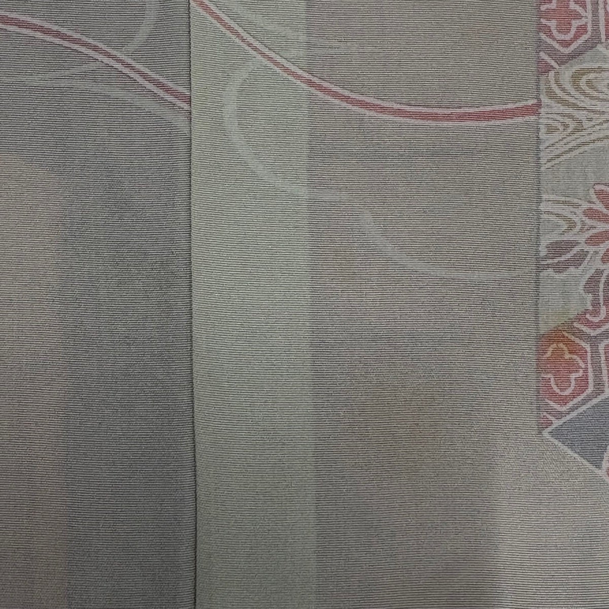 訪問着 身丈164cm 裄丈65cm M 袷 花籠 枝梅 金糸 金彩 灰色 正絹 秀品