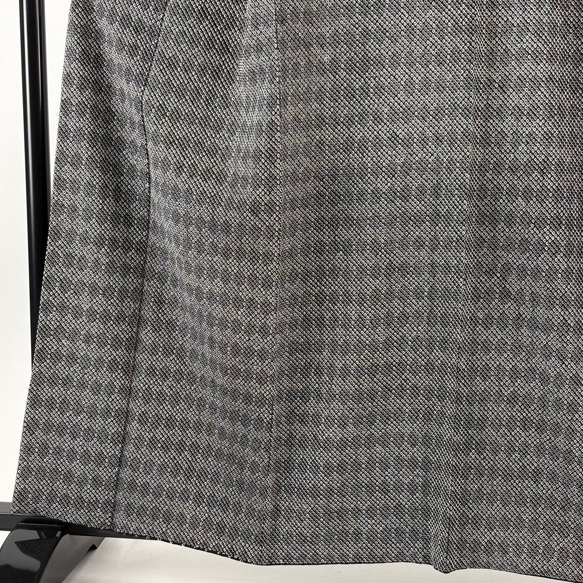 【美品】 小紋 身丈156.5cm 裄丈63cm S 袷 陶彩染 霞 幾何学模様 灰茶 正絹 秀品