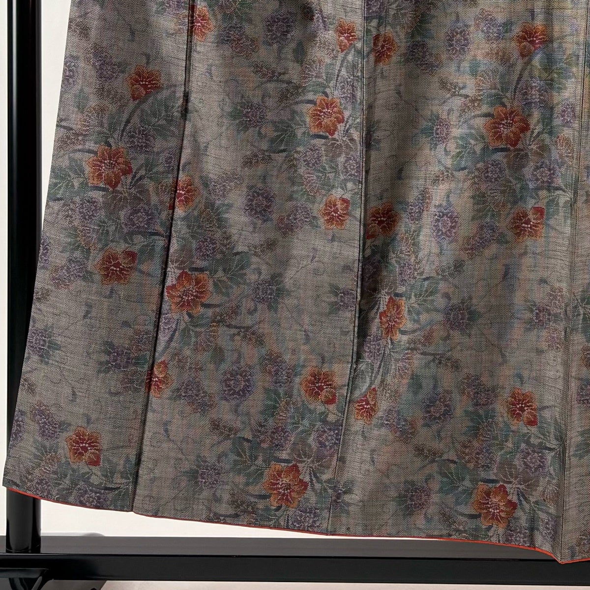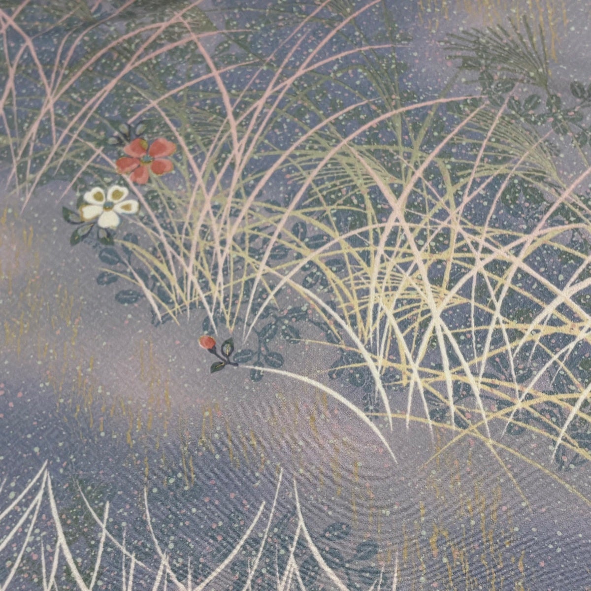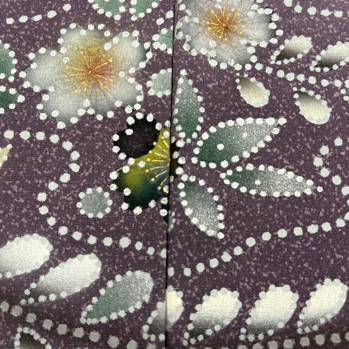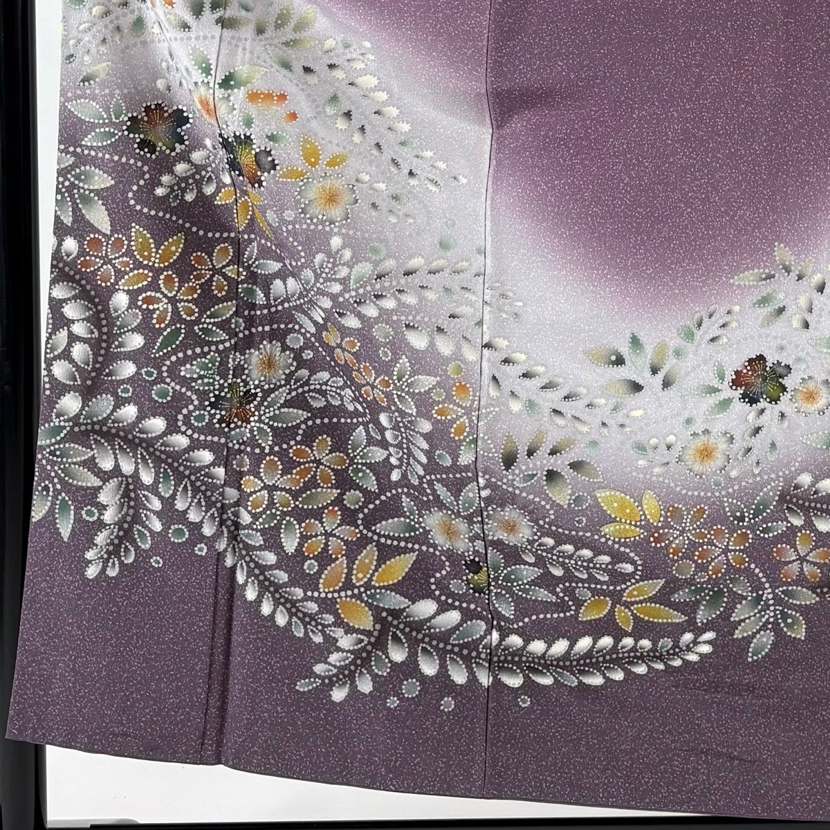 反物 秀品 小紋 草花 金彩 ぼかし 灰紫 正絹