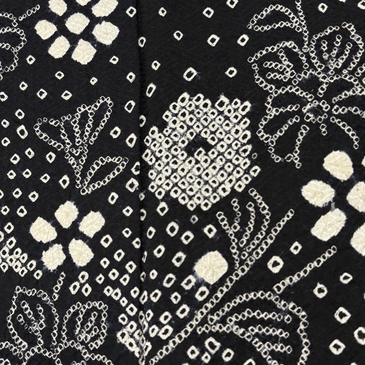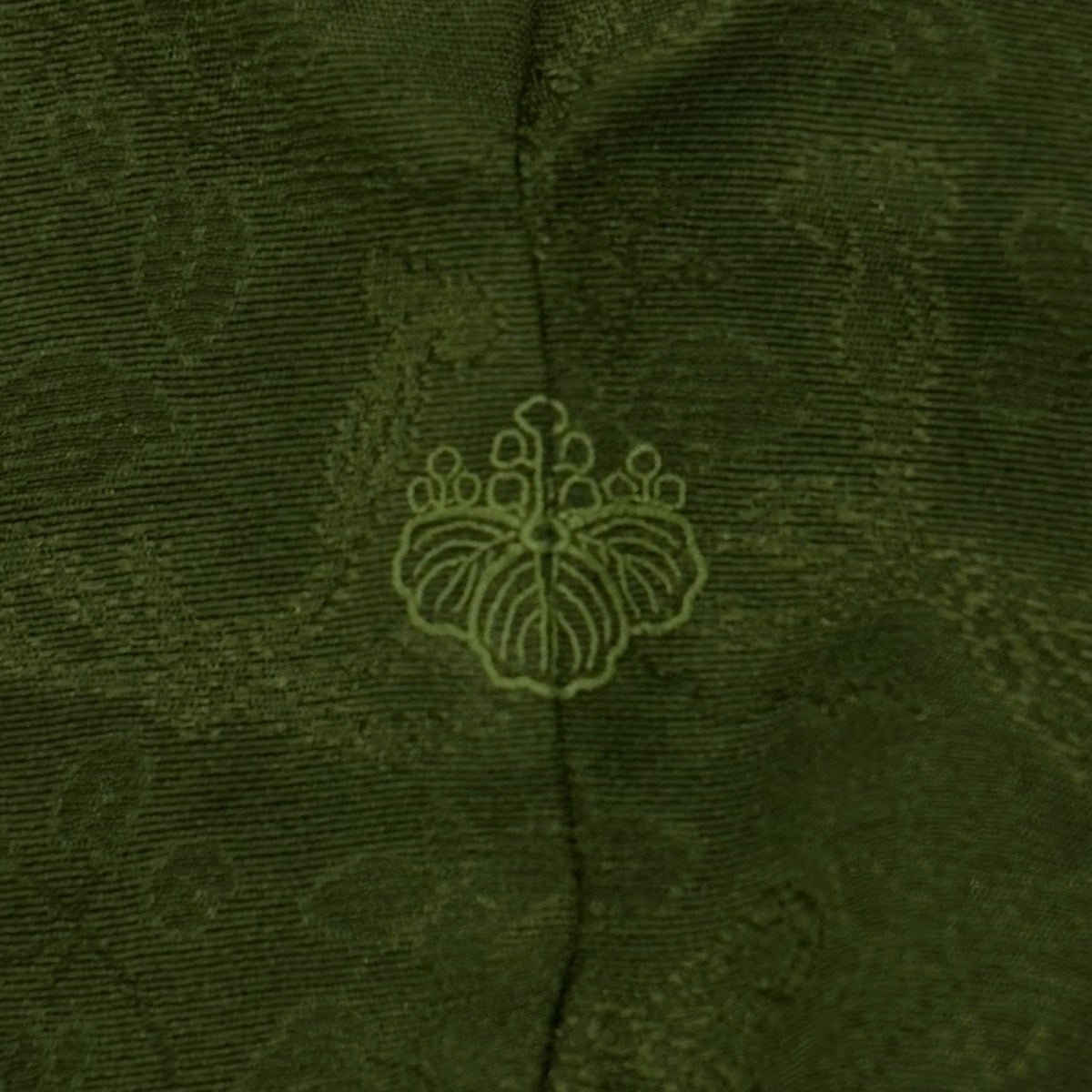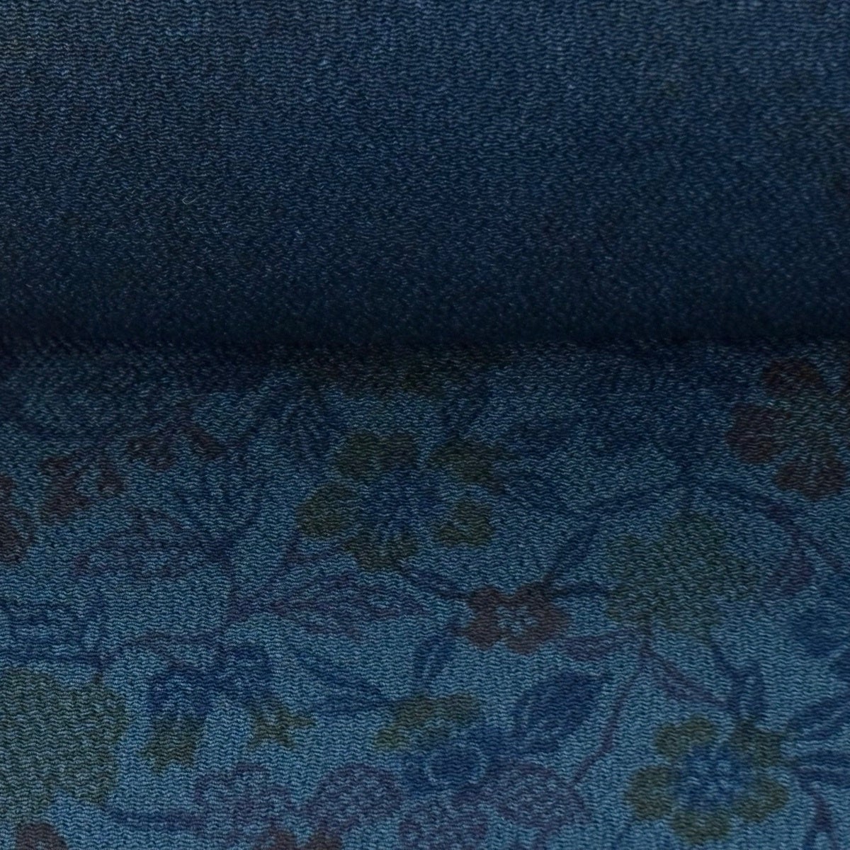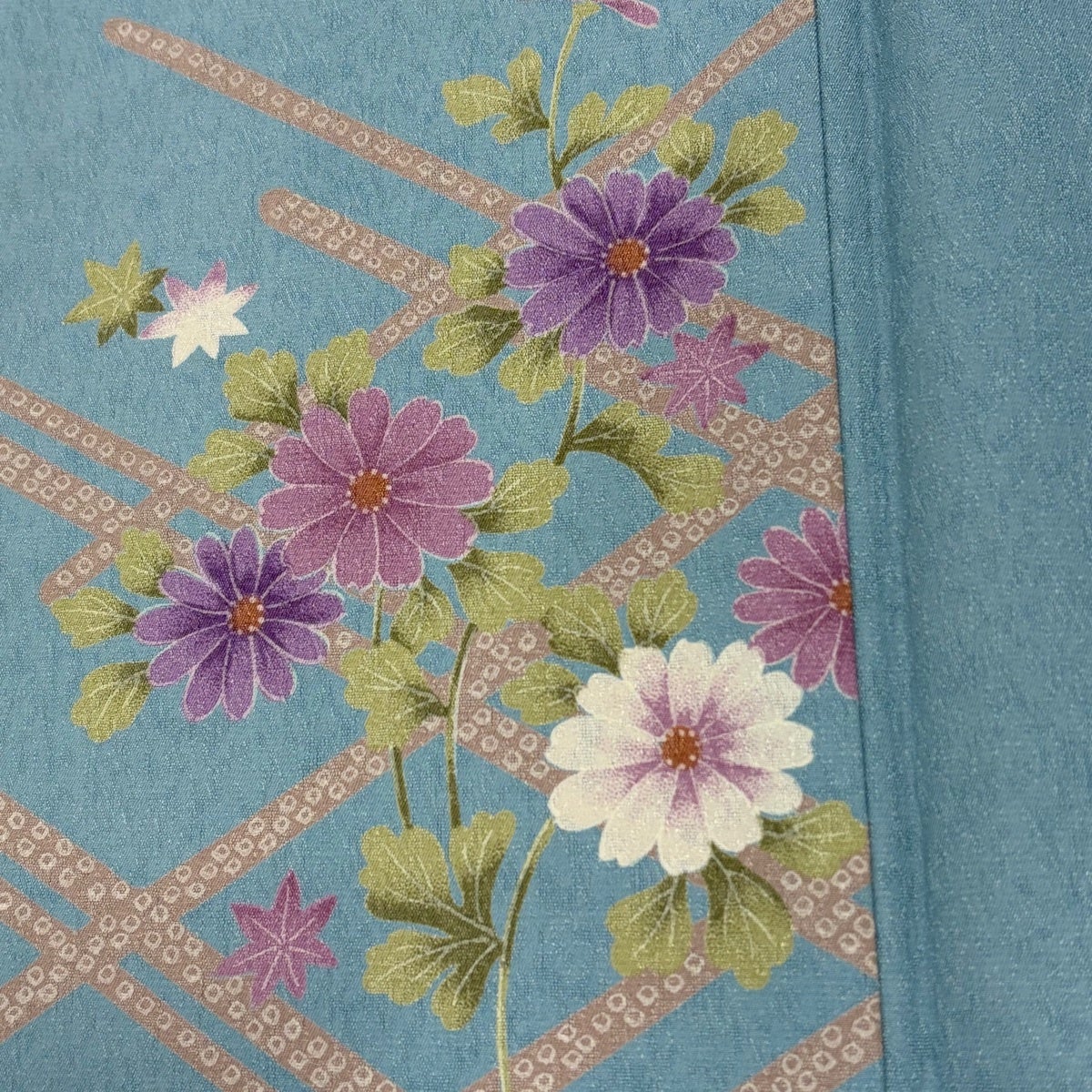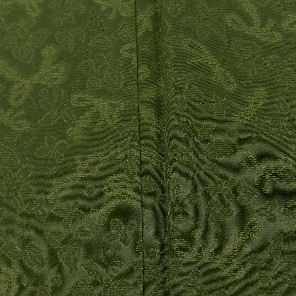 反物 秀品 小紋 草花 縮緬 青緑 正絹