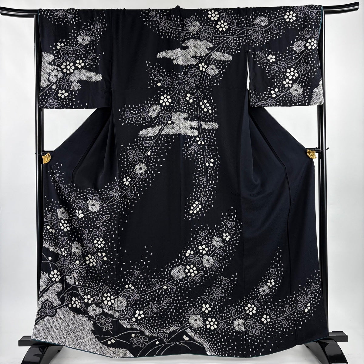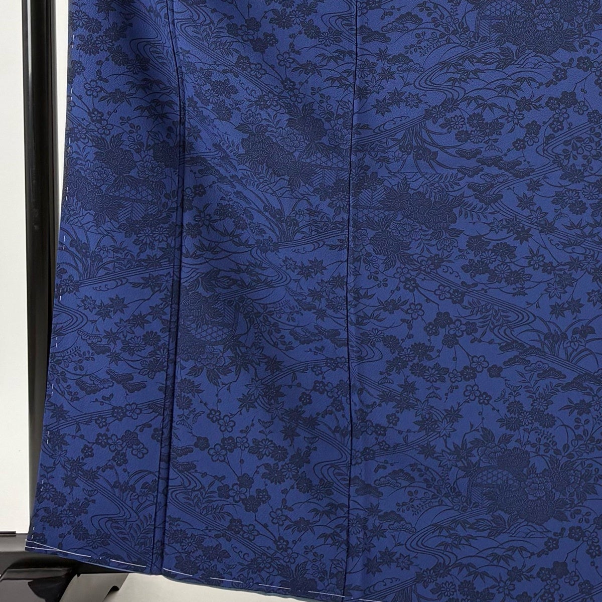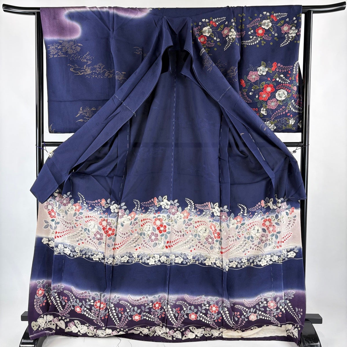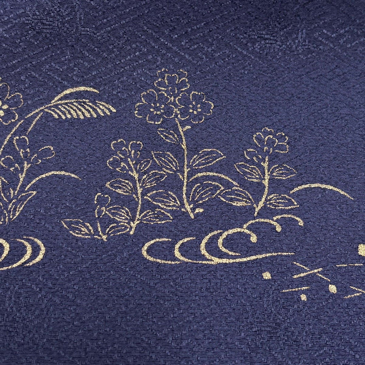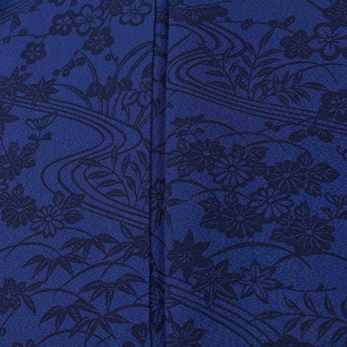 訪問着 身丈174cm 裄丈66.5cm M 未仕立て 仮絵羽 草花 流水 金彩 ぼかし 紺色 正絹 秀品