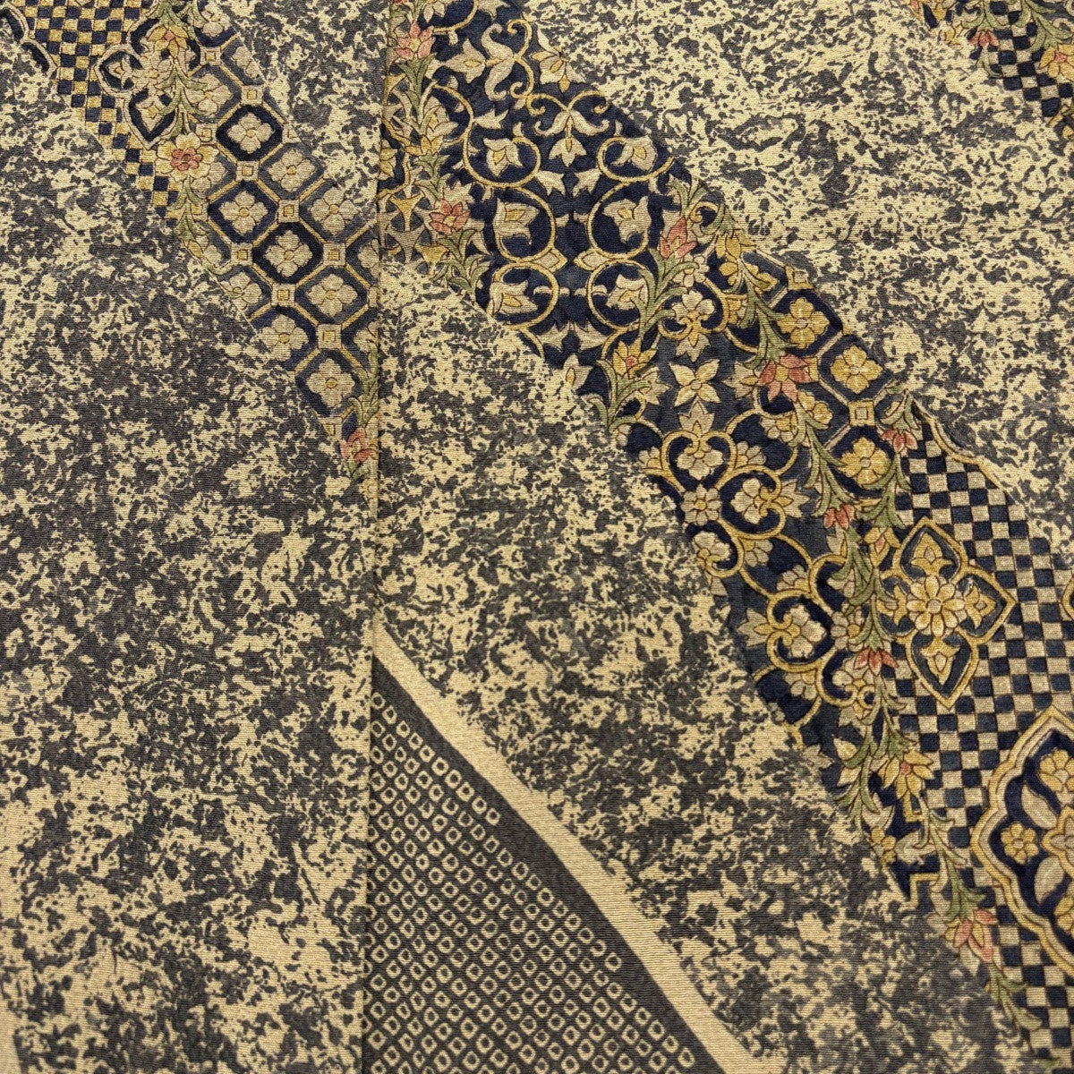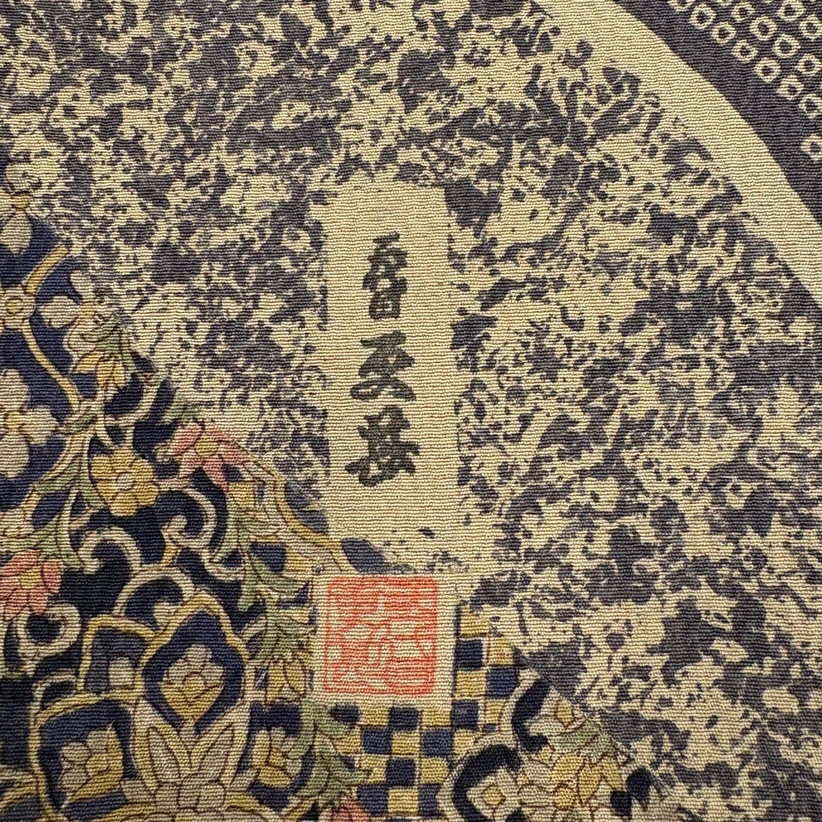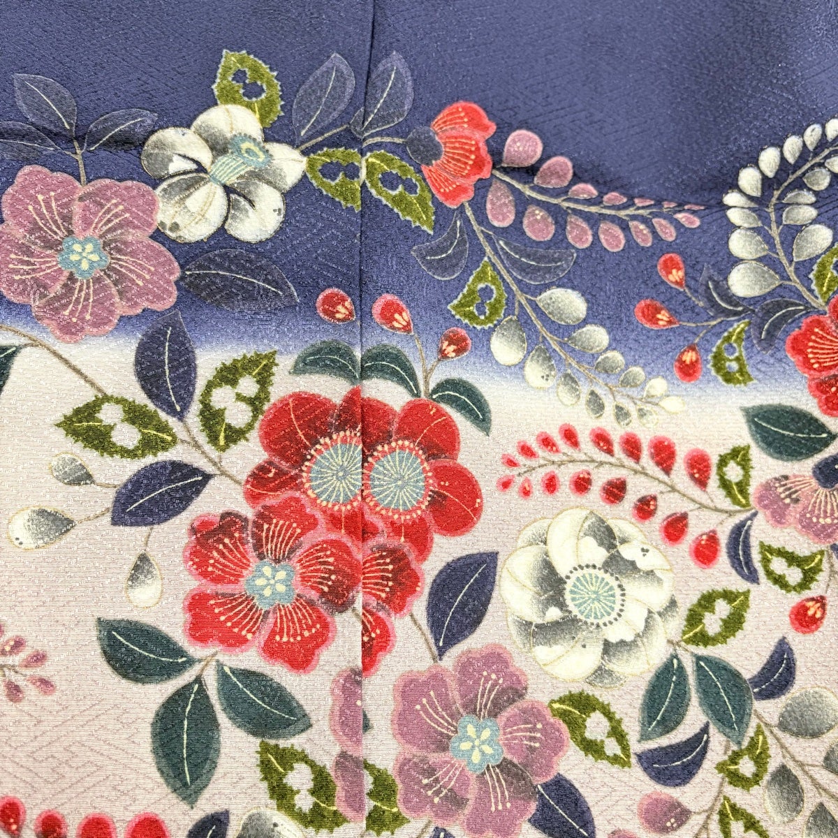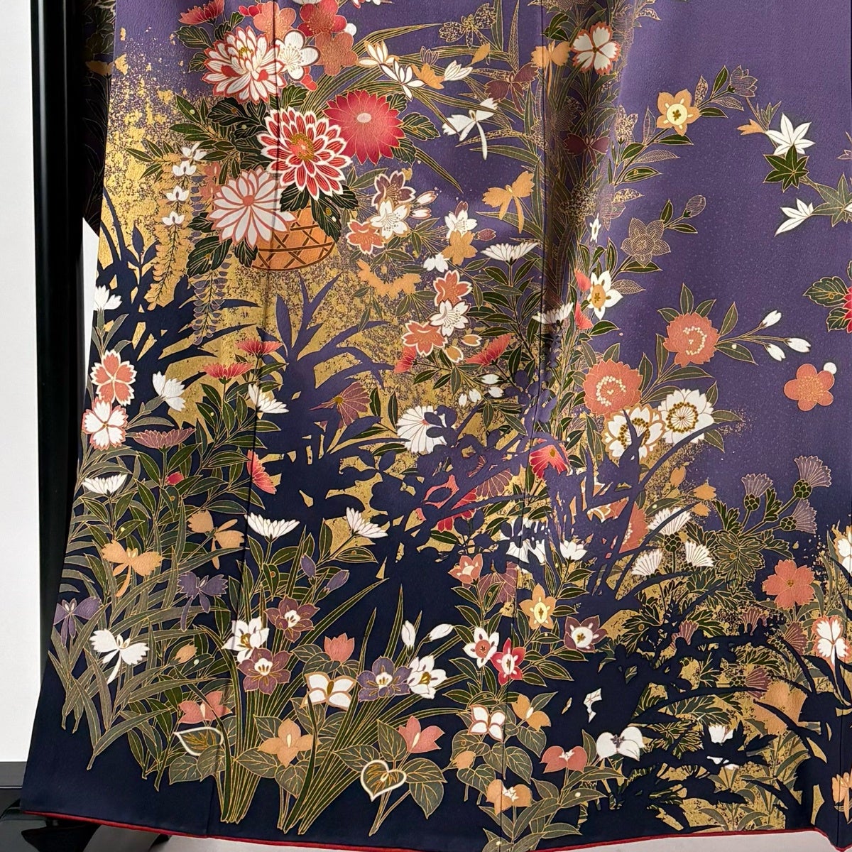 訪問着 身丈174cm 裄丈66.5cm M 未仕立て 仮絵羽 草花 流水 金彩 ぼかし 紺色 正絹 秀品