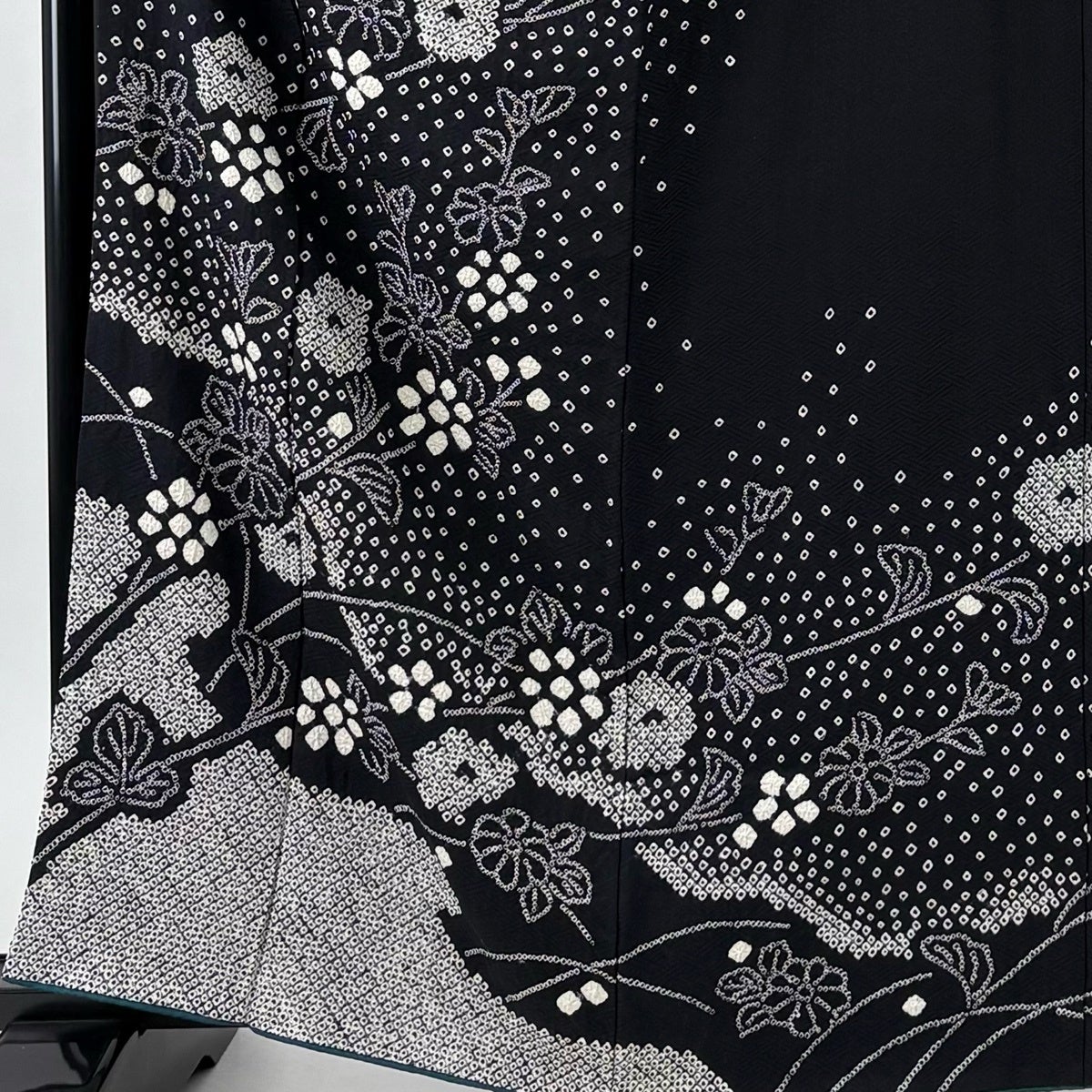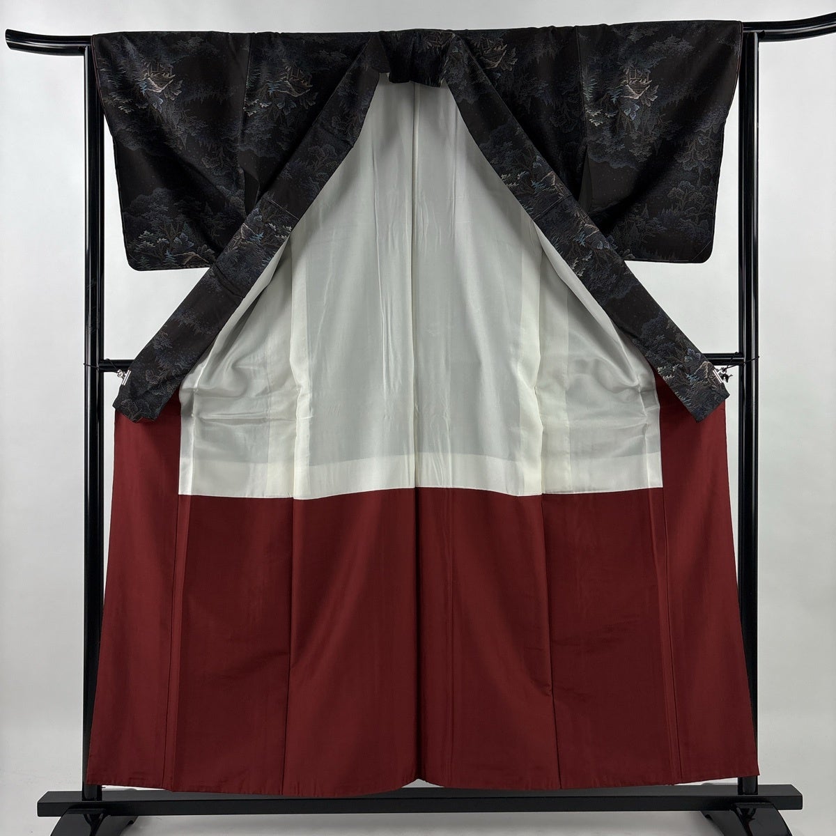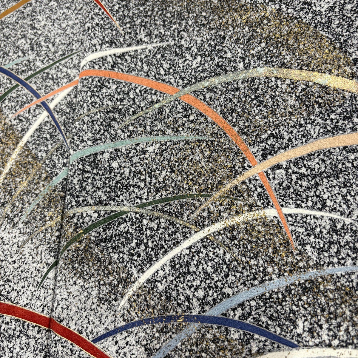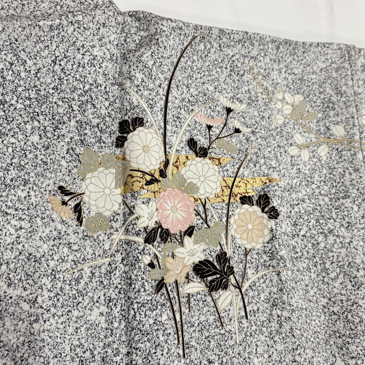 訪問着 身丈153cm 裄丈65.5cm M 袷 秋草 霞 金彩 ぼかし 黒灰 正絹 秀品